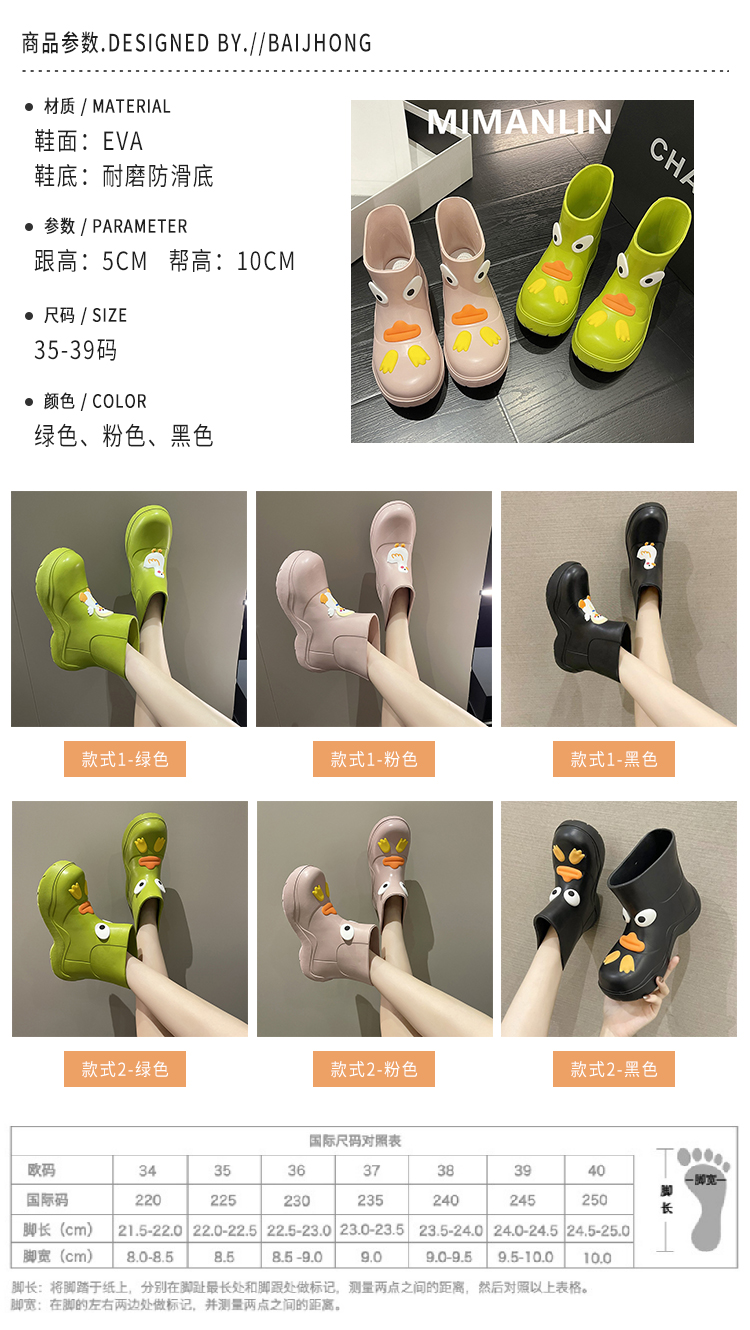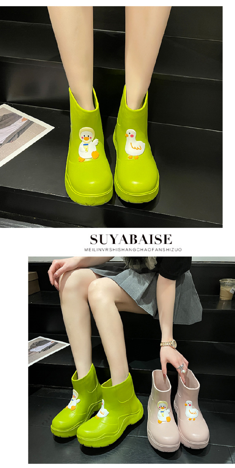 【卡通厚底中筒雨鞋】抖音同款网红鸭子防水防滑雨鞋 外穿可爱雨靴中筒轻便短筒水靴