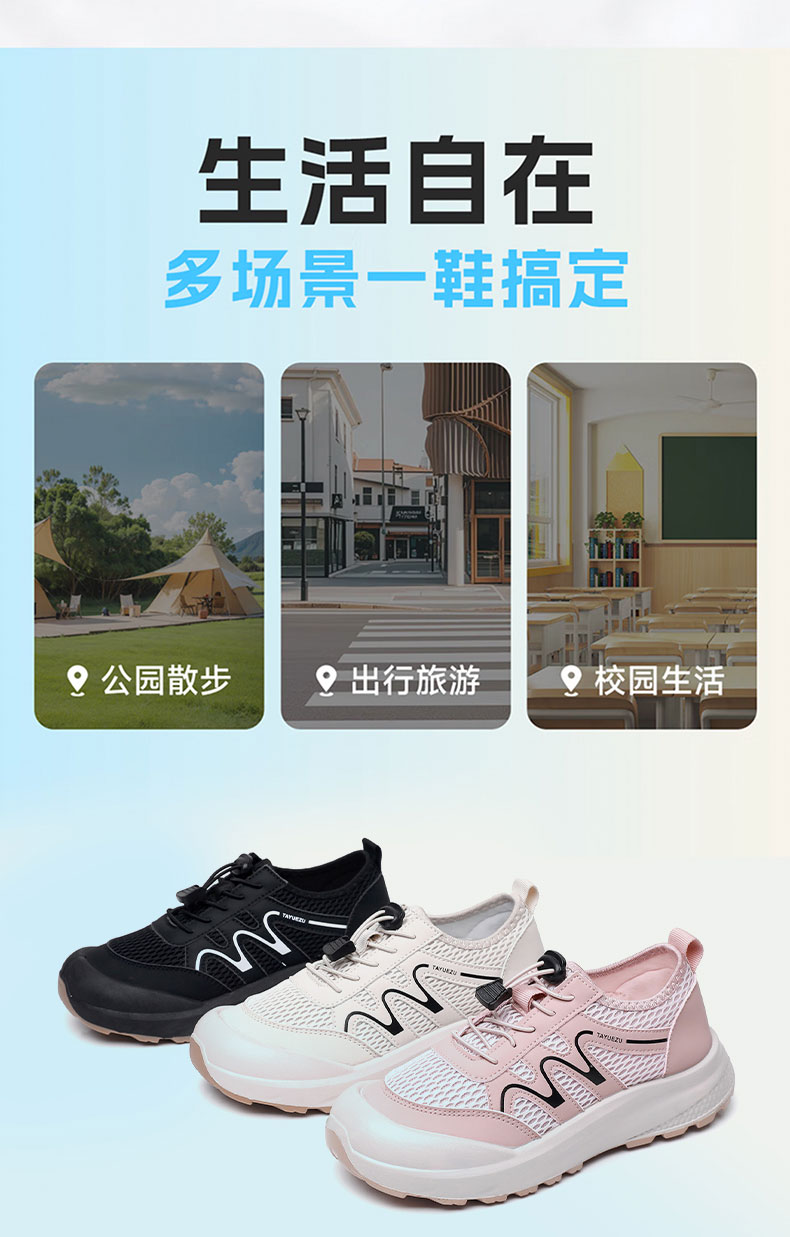 夏季休闲鞋yyds!【踏月族--缓云软弹轻盈镂空鞋】软糯舒适超百搭、透气网面拼接设计、柔软不闷不磨脚不累脚、舒适百搭防滑增高、轻盈耐磨颜值高!