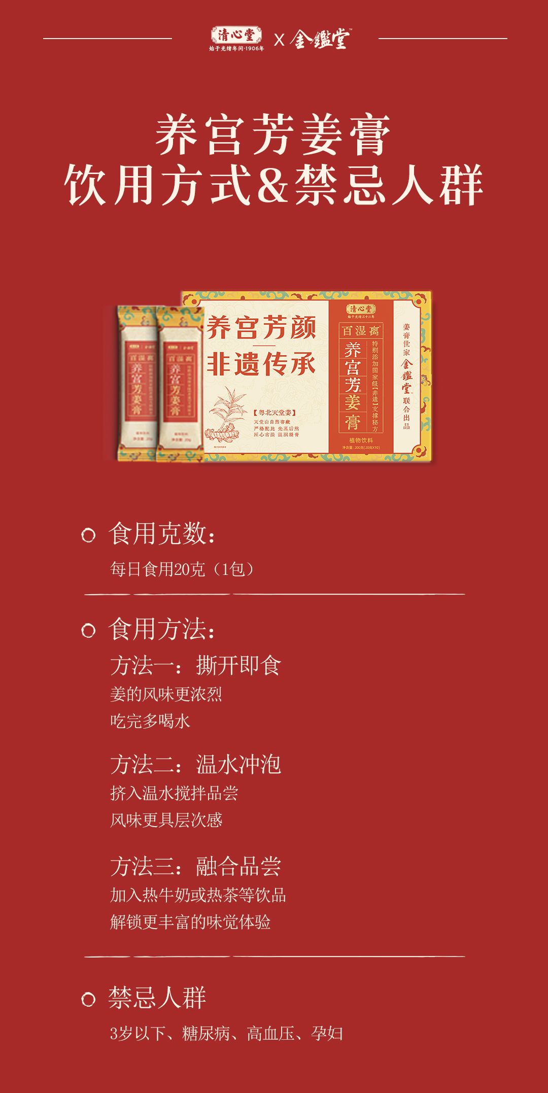 养宫芳姜膏 非遗53号秘方加持 自然窖藏365天祛姜燥更温和 受寒久坐产后中老人手脚冰凉姨妈期 百湿离姜膏20克*10/盒