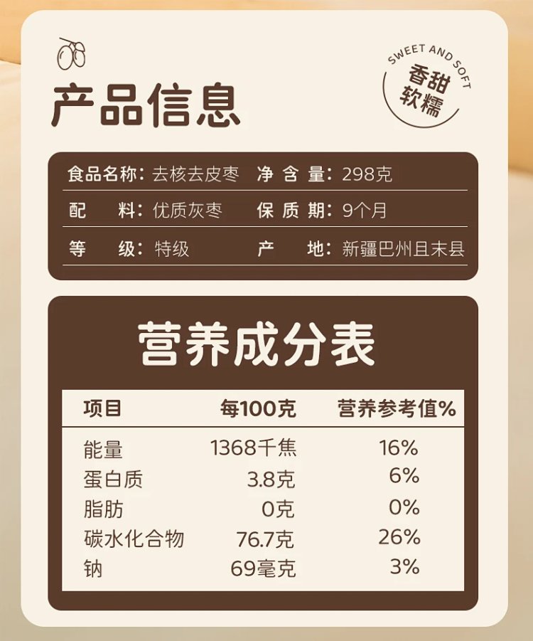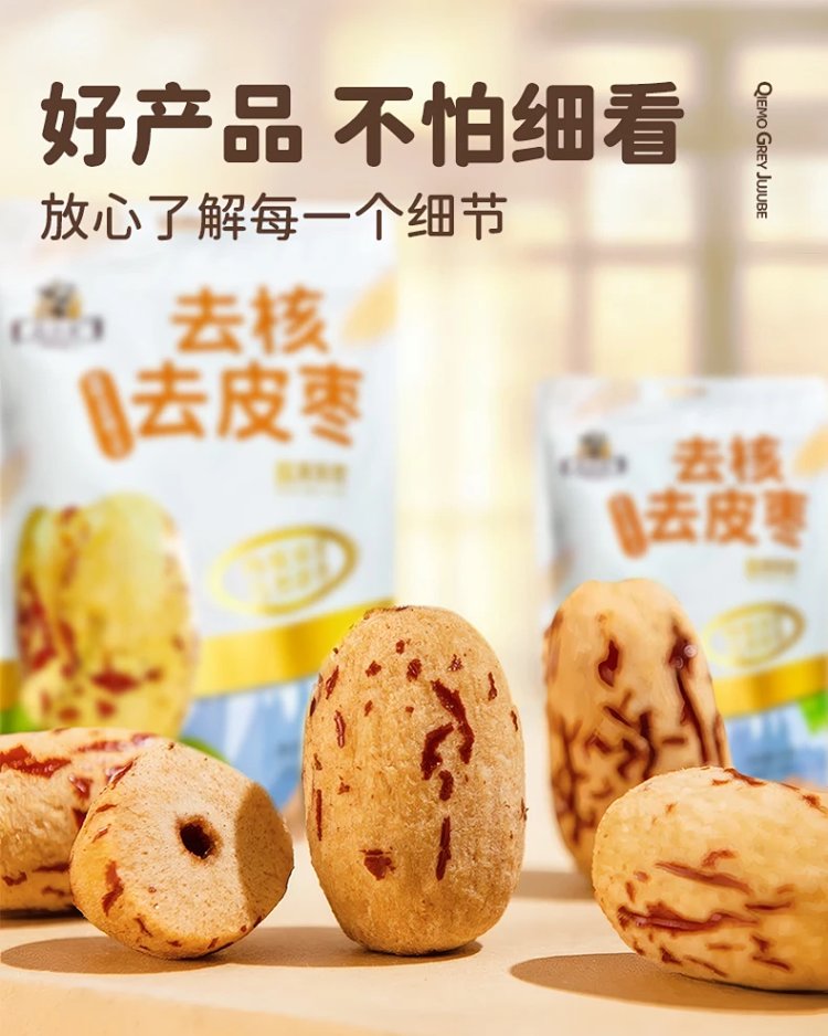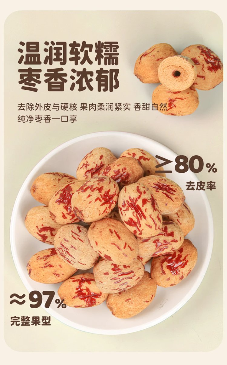 【且小末去核去皮枣】 且末灰枣 去除外皮与硬核 果肉柔润紧实 香甜自然纯净枣香一口享