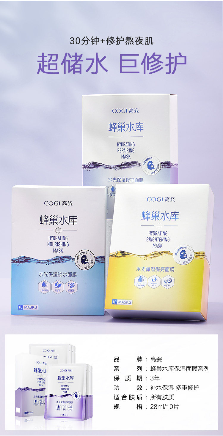 高姿面膜丰巢水库女补水保湿美白暗沉熬夜修护10片/盒