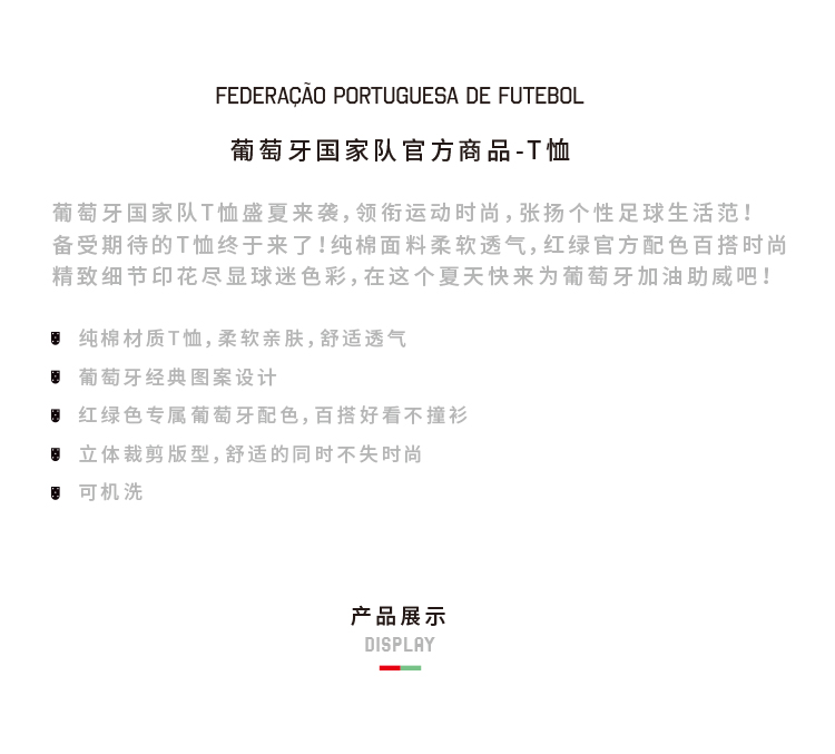葡萄牙国家队官方产品丨 白色纯棉经典标语T恤
