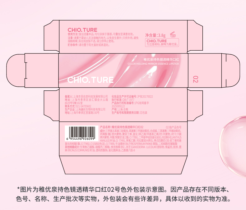 稚优泉(CHIOTURE)持色镜透精华口红淡化唇纹不易沾杯正品