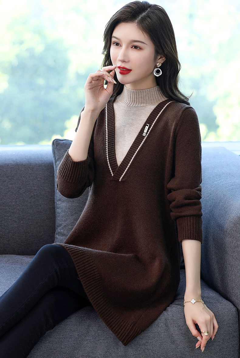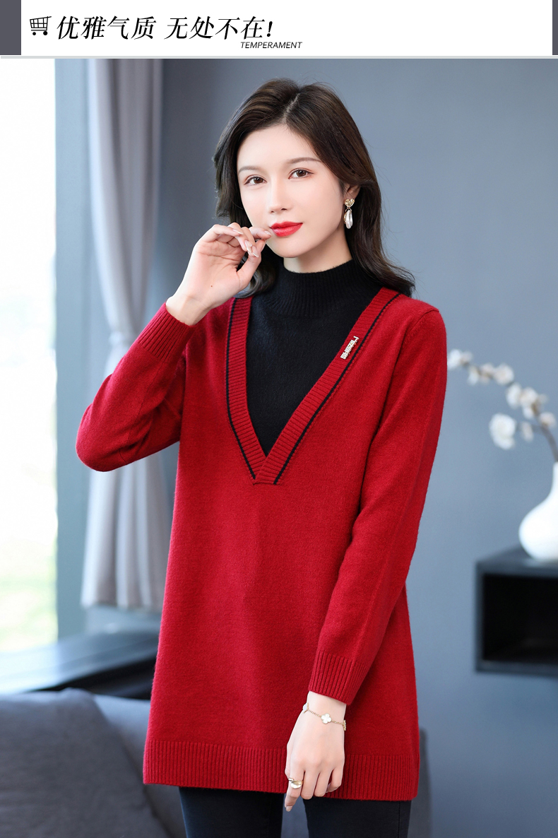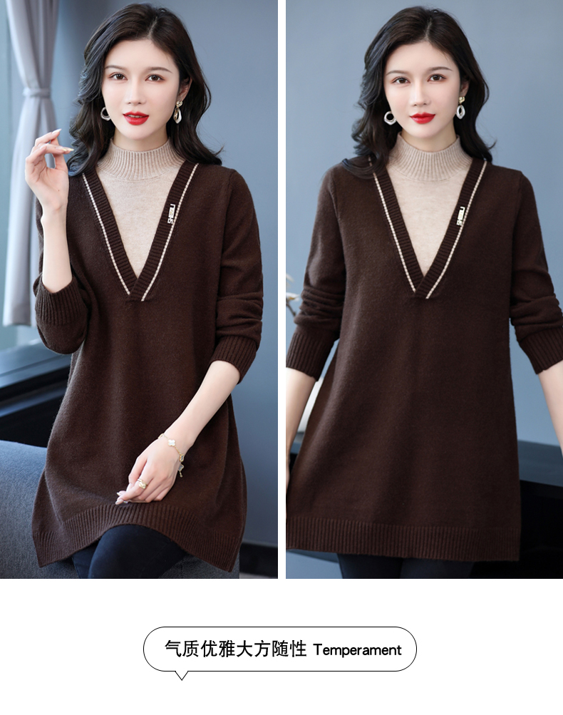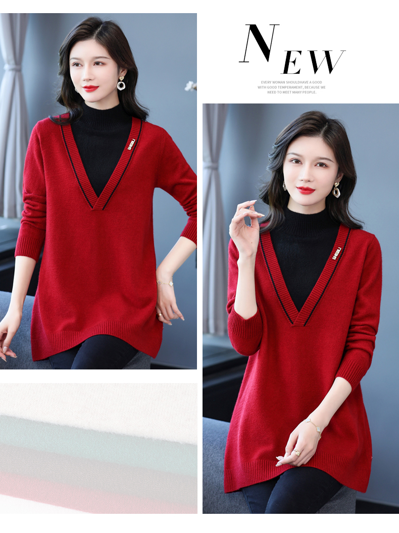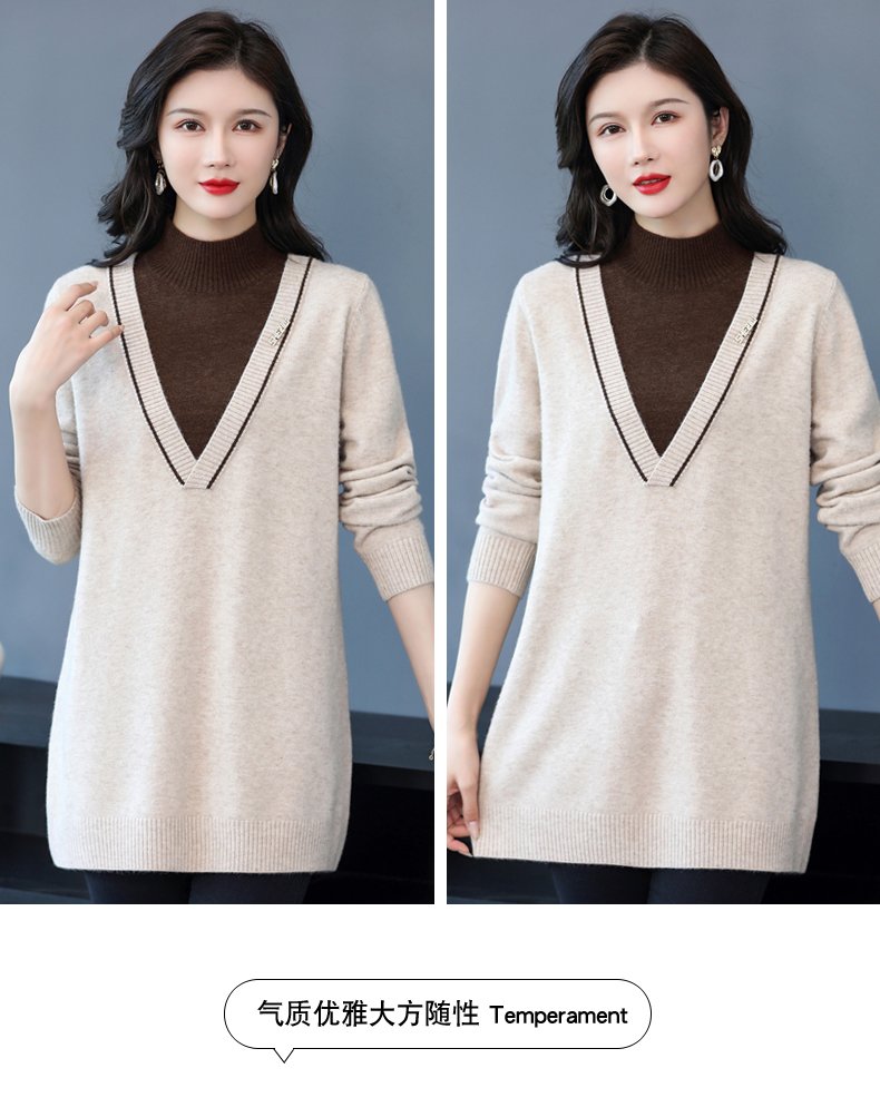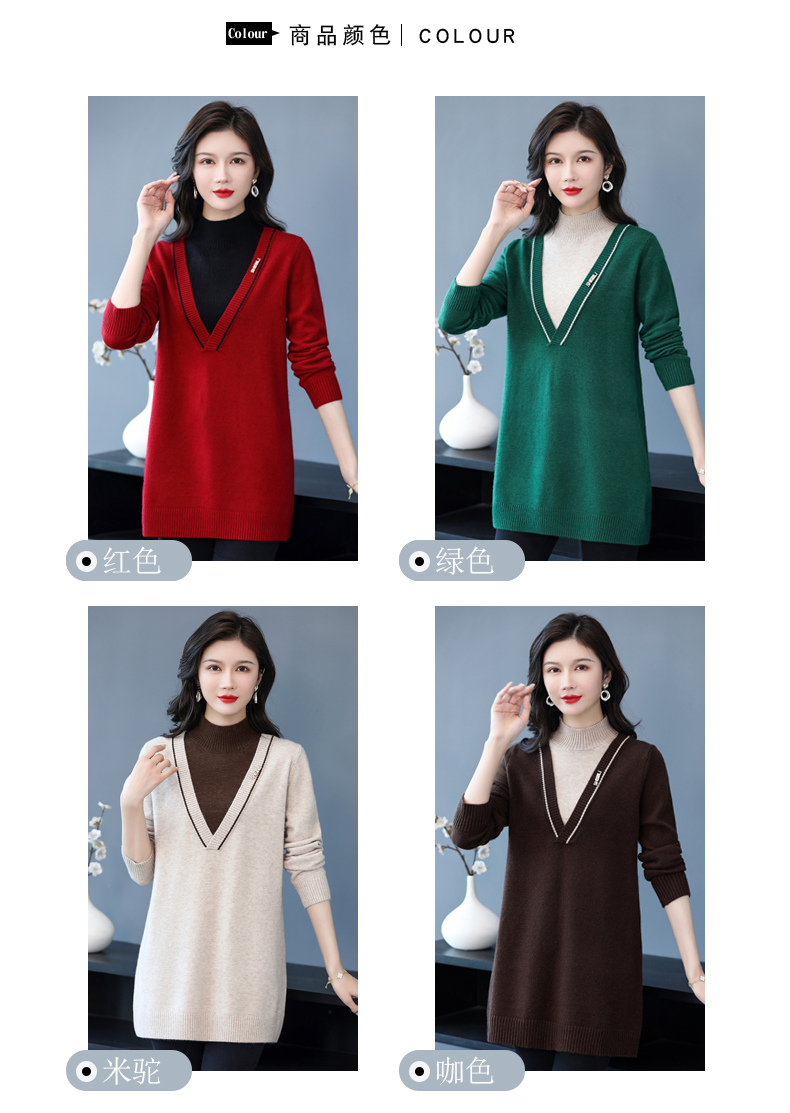 配大衣内搭假两件半高领针织打底衫CC-17-12630