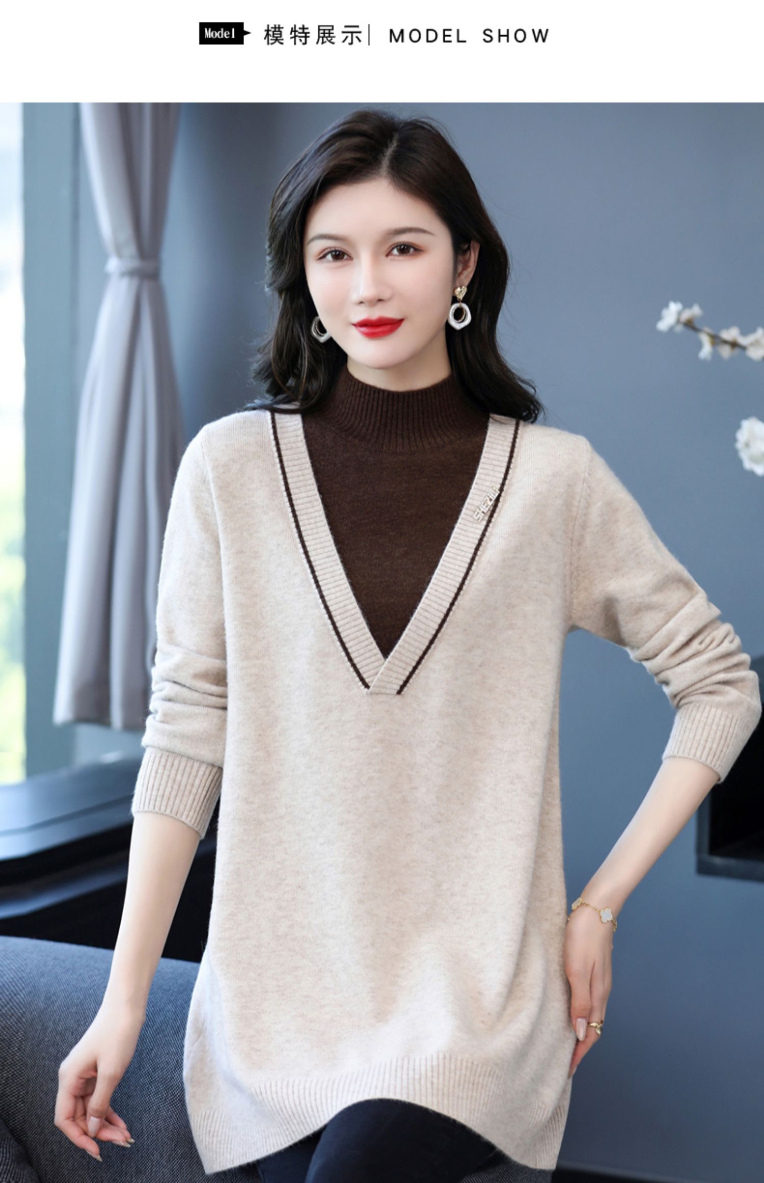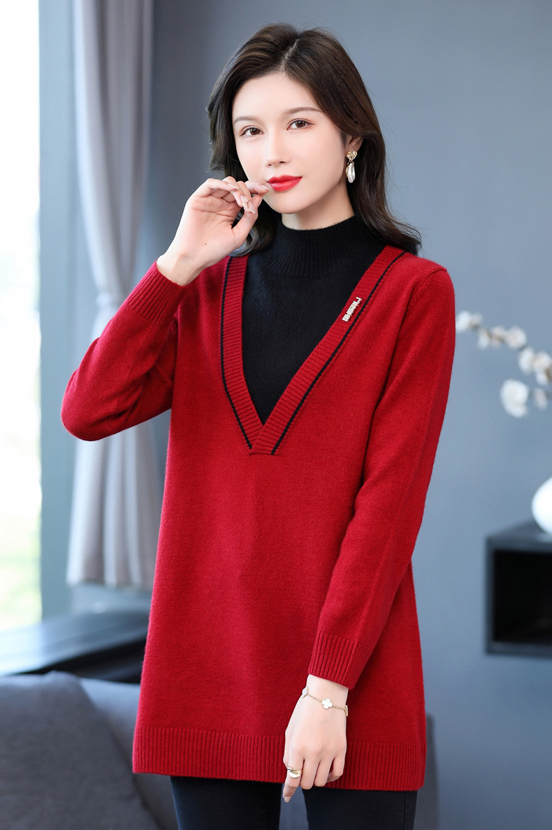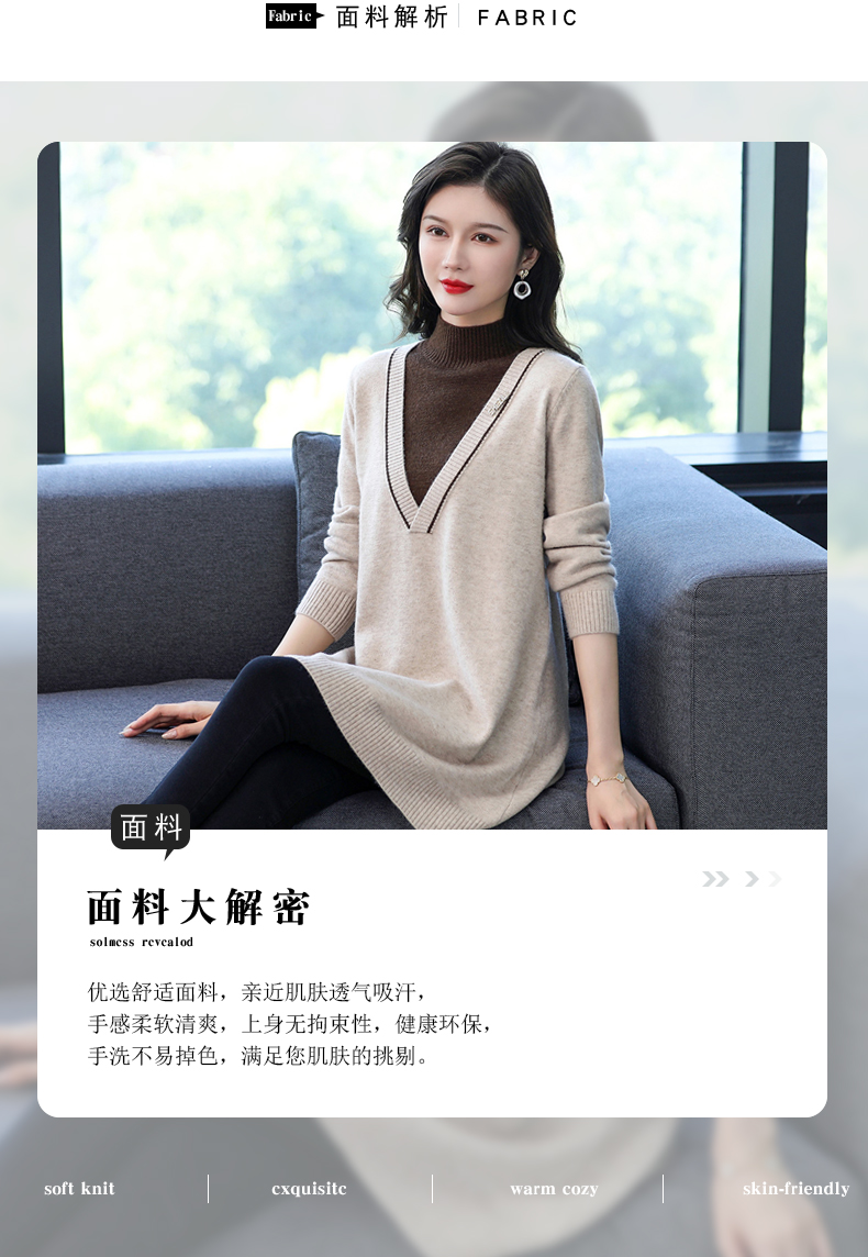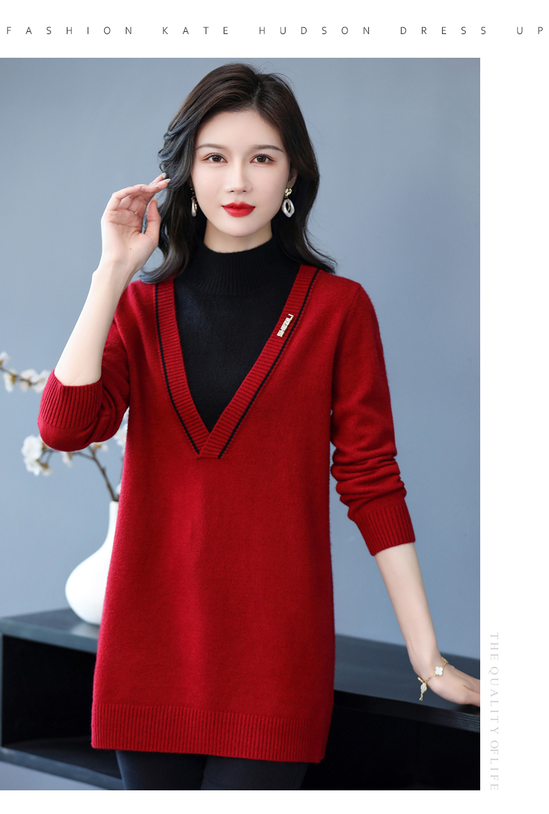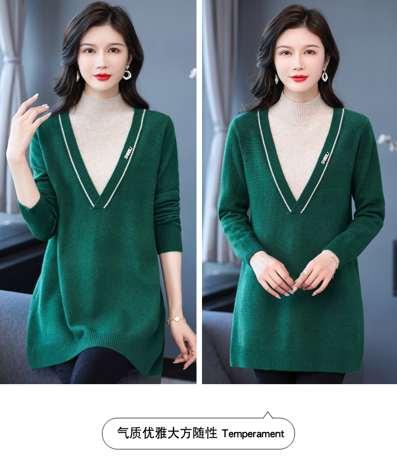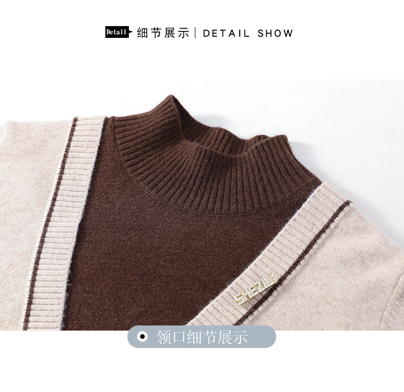 配大衣内搭假两件半高领针织打底衫CC-17-12630