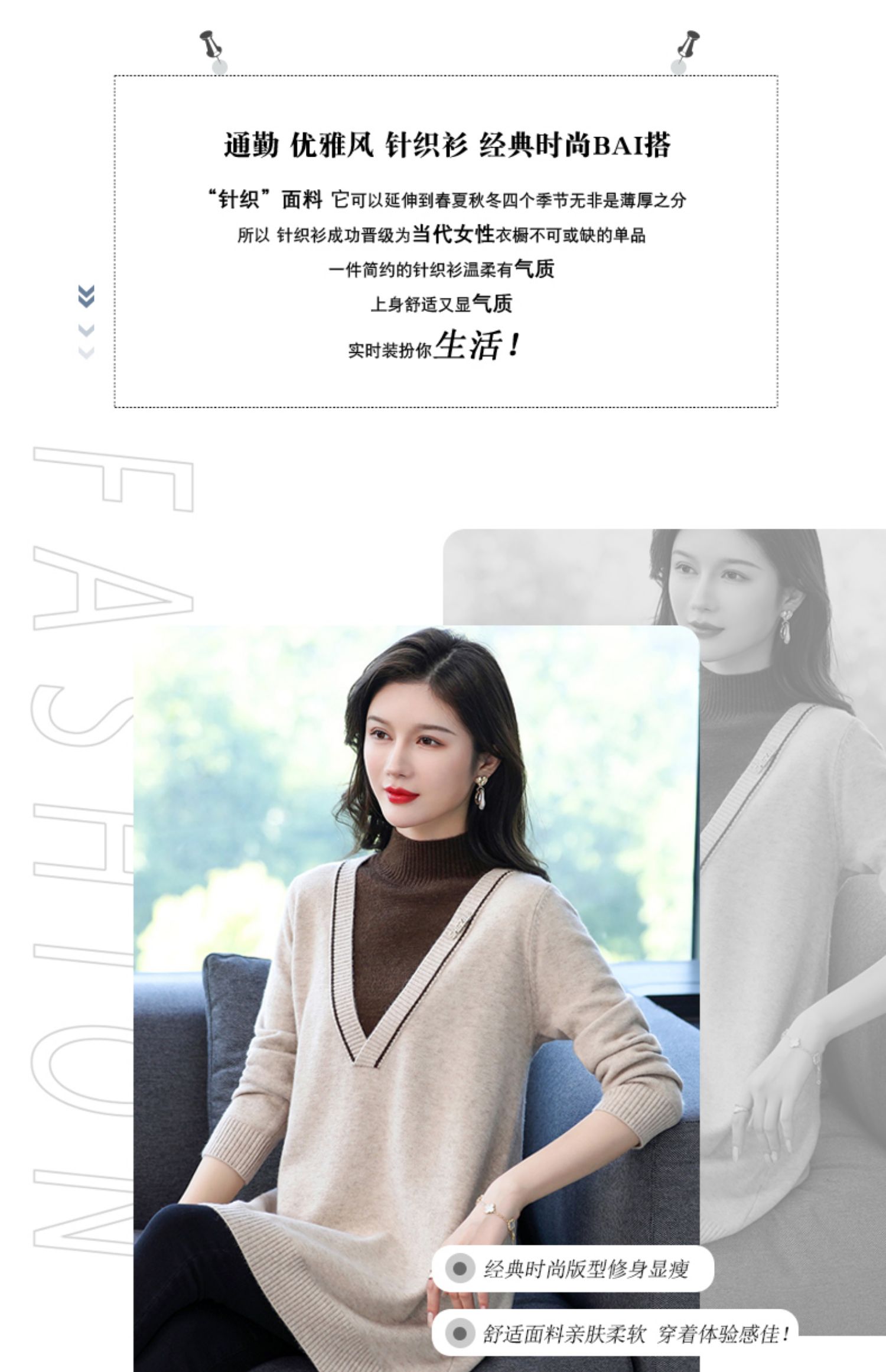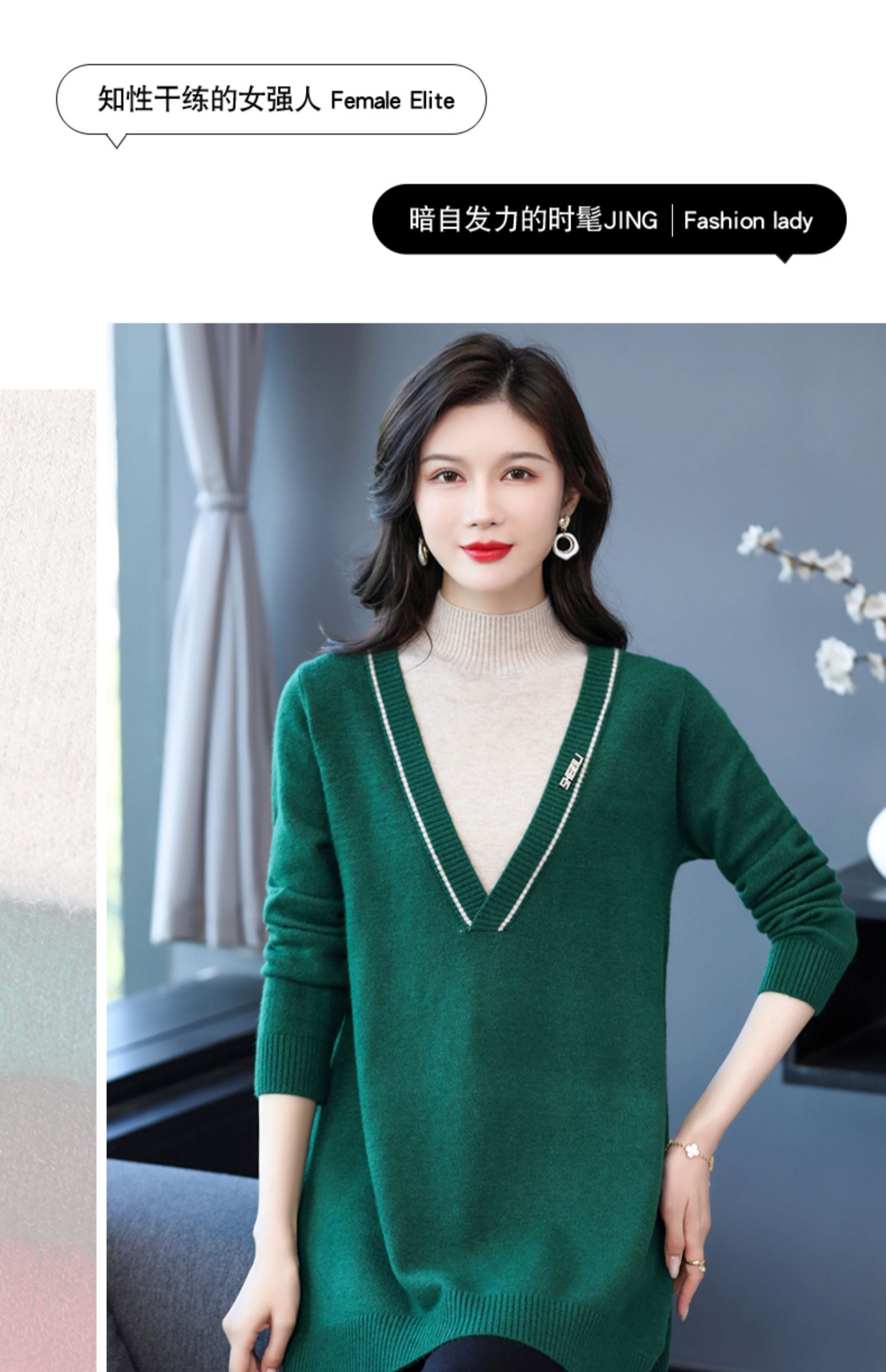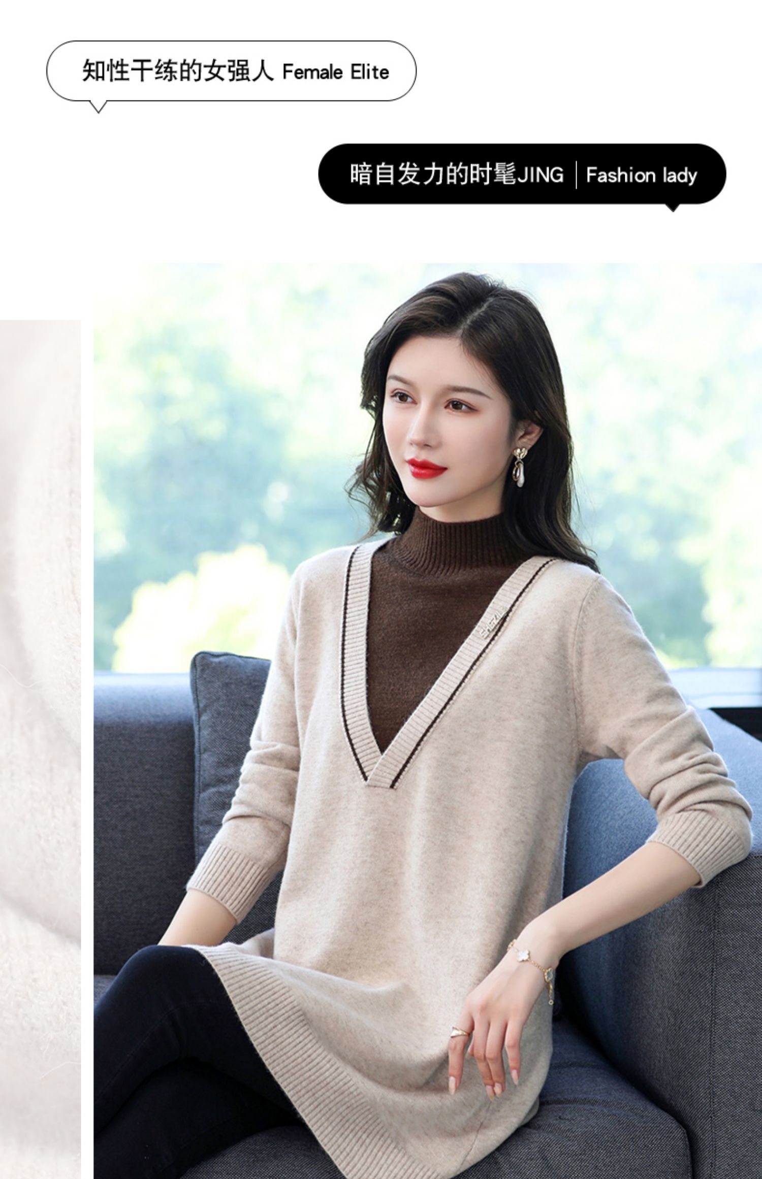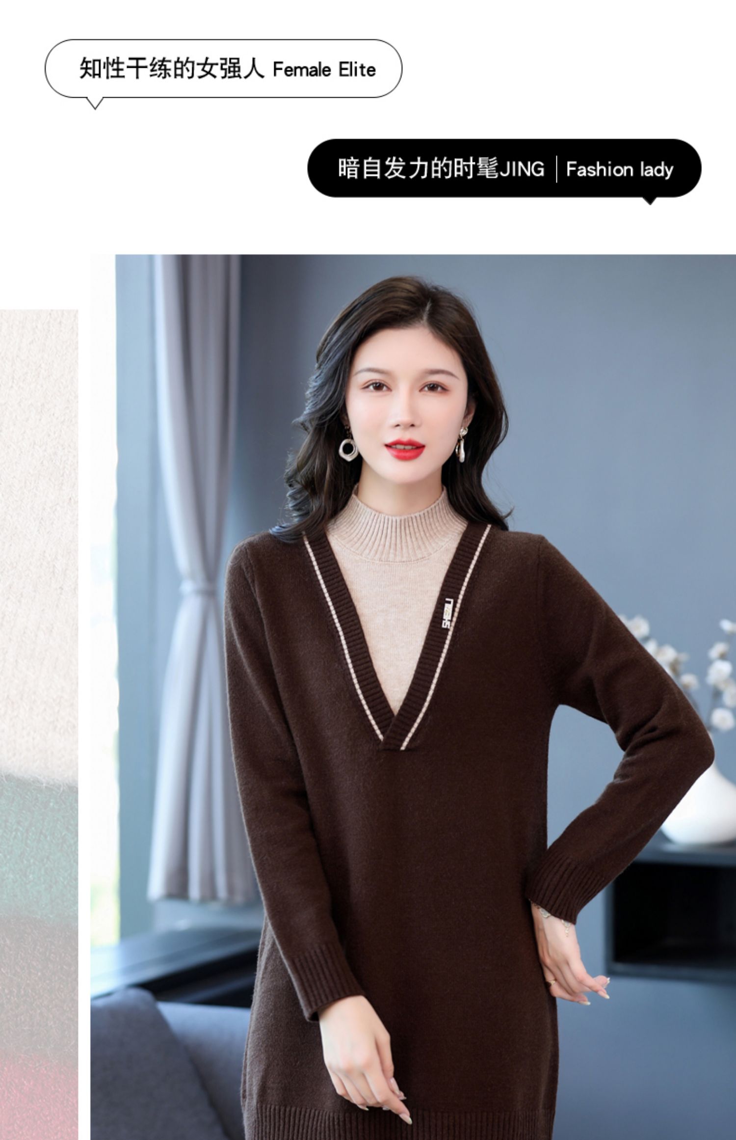 配大衣内搭假两件半高领针织打底衫CC-17-12630