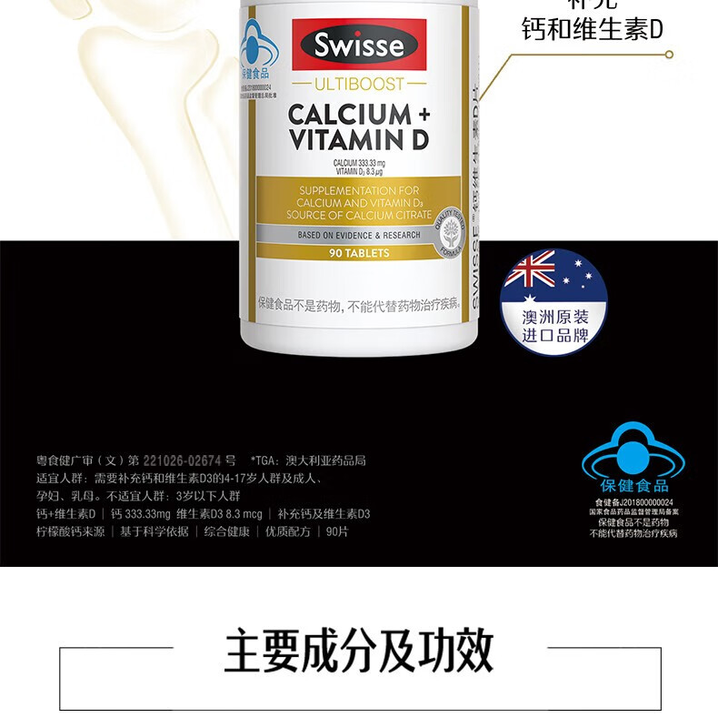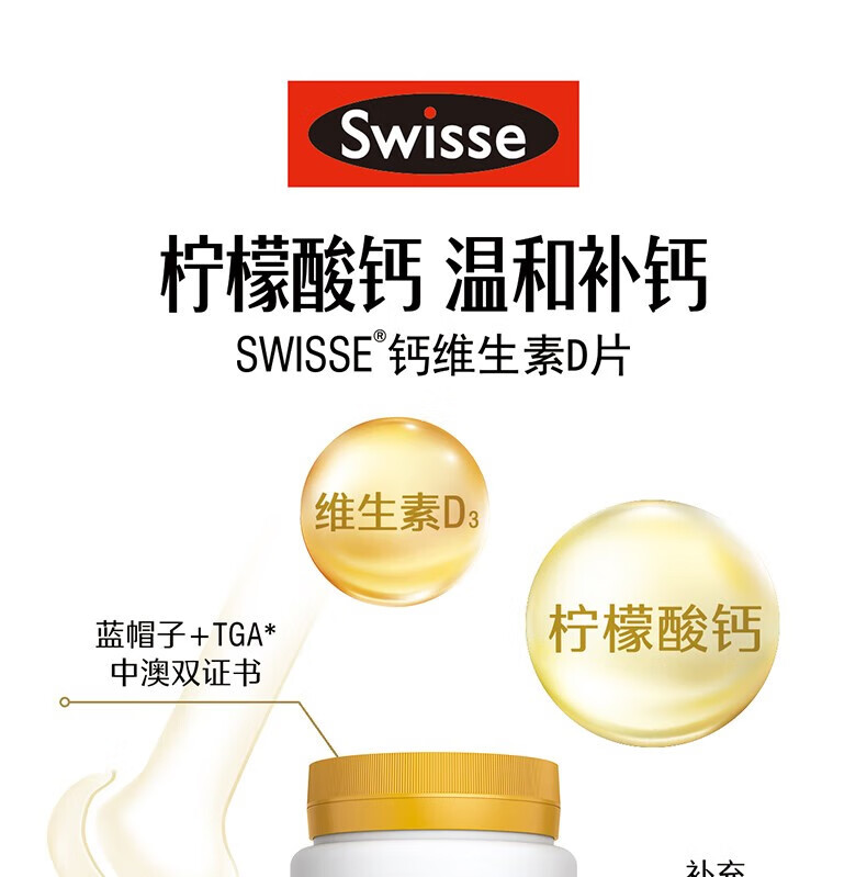【1件包邮】Swisse钙维生素D片1.895g*90片柠檬酸钙温和补钙 新疆/西藏/海南/内蒙/云南/宁夏/甘肃/青海/港澳台不发货
