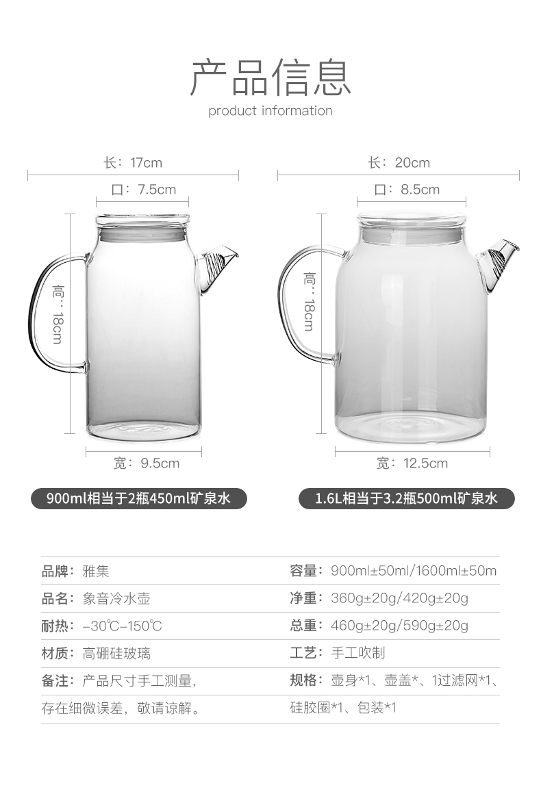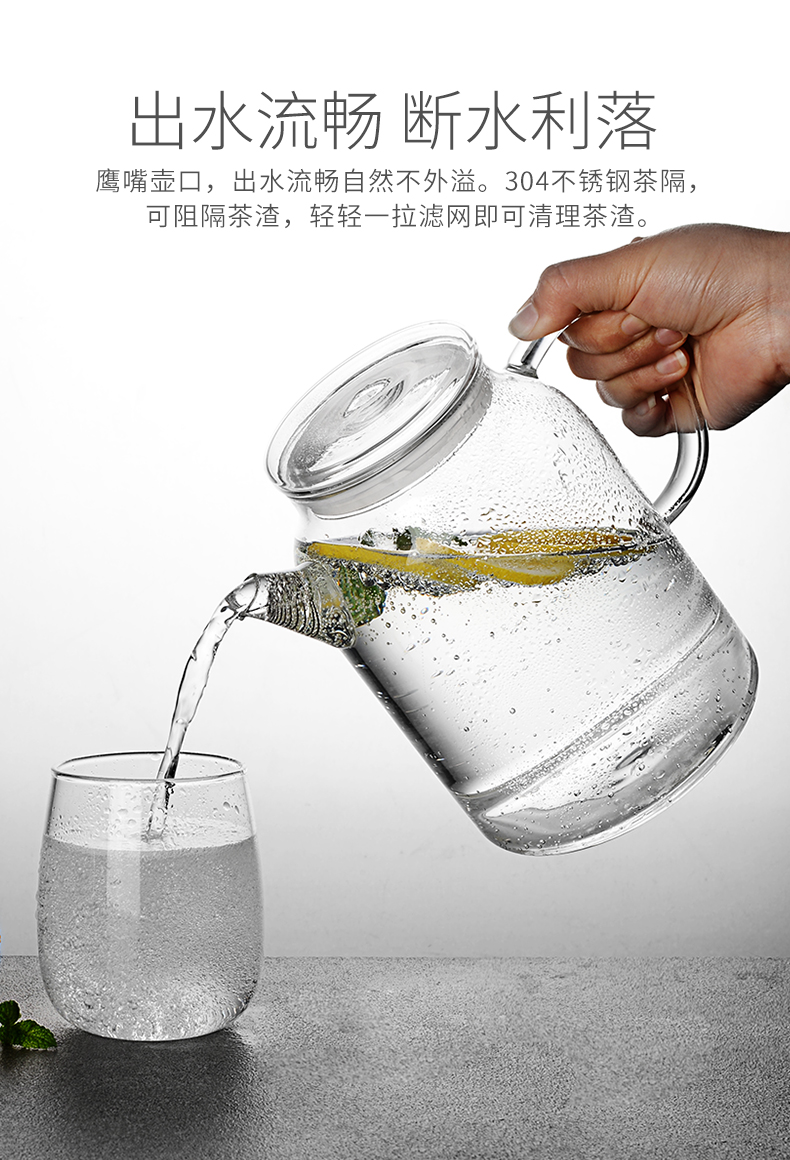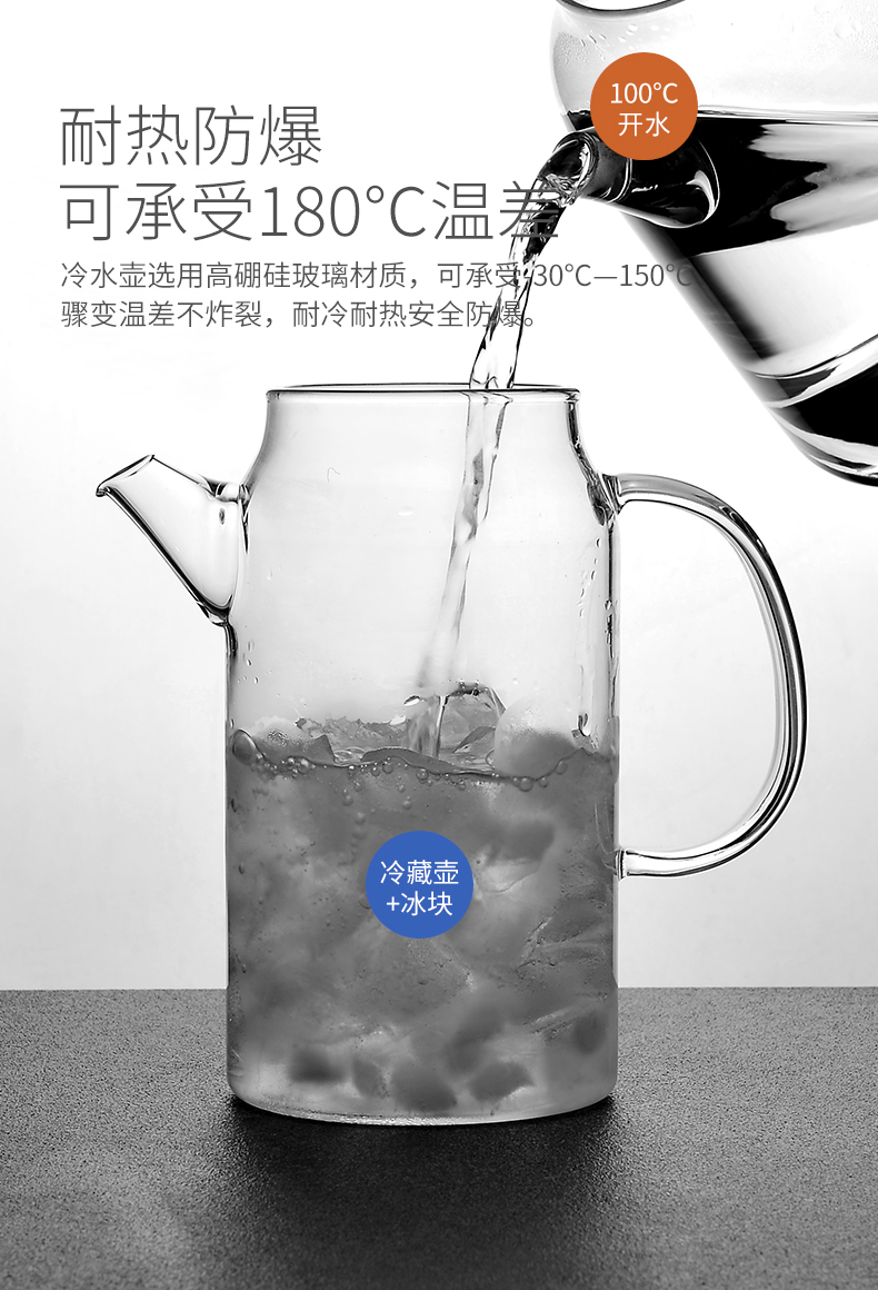 雅集象音冷水壶大容量玻璃水壶耐热耐高温装水壶家用凉白开凉水壶