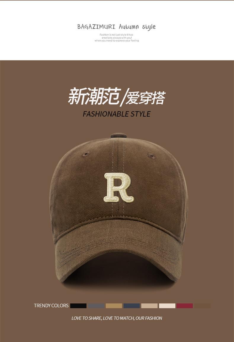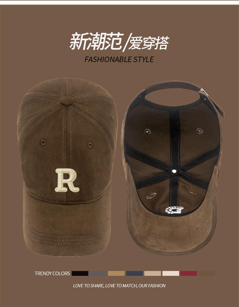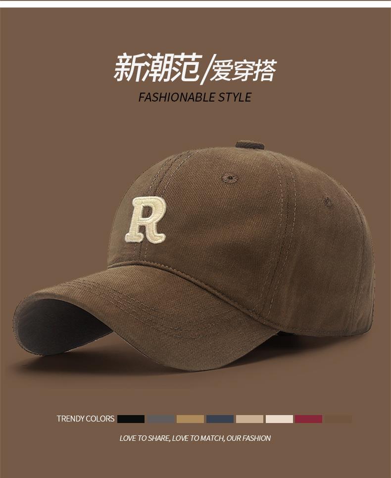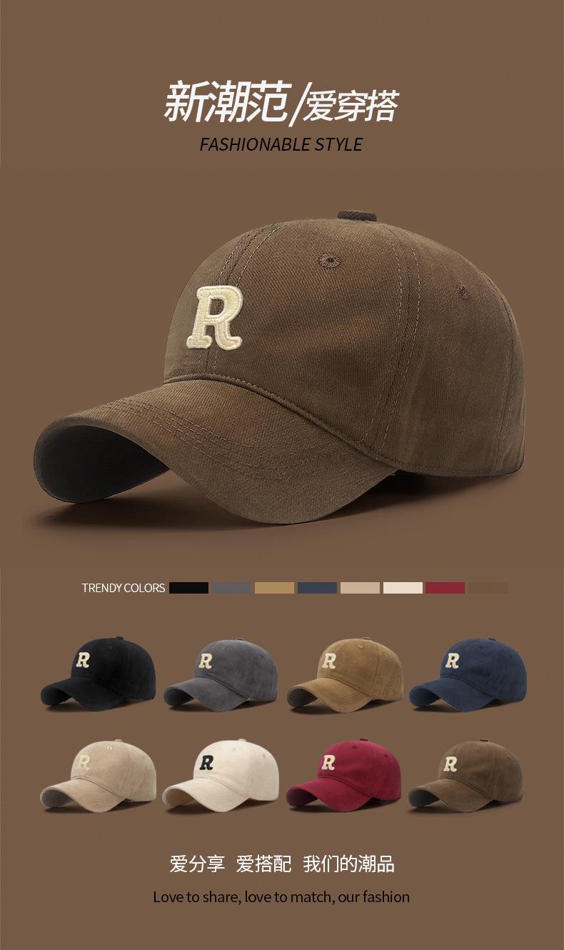韩版大头围立体棉线刺绣R字母棒球帽女抖音代发百搭磨毛鸭舌帽子