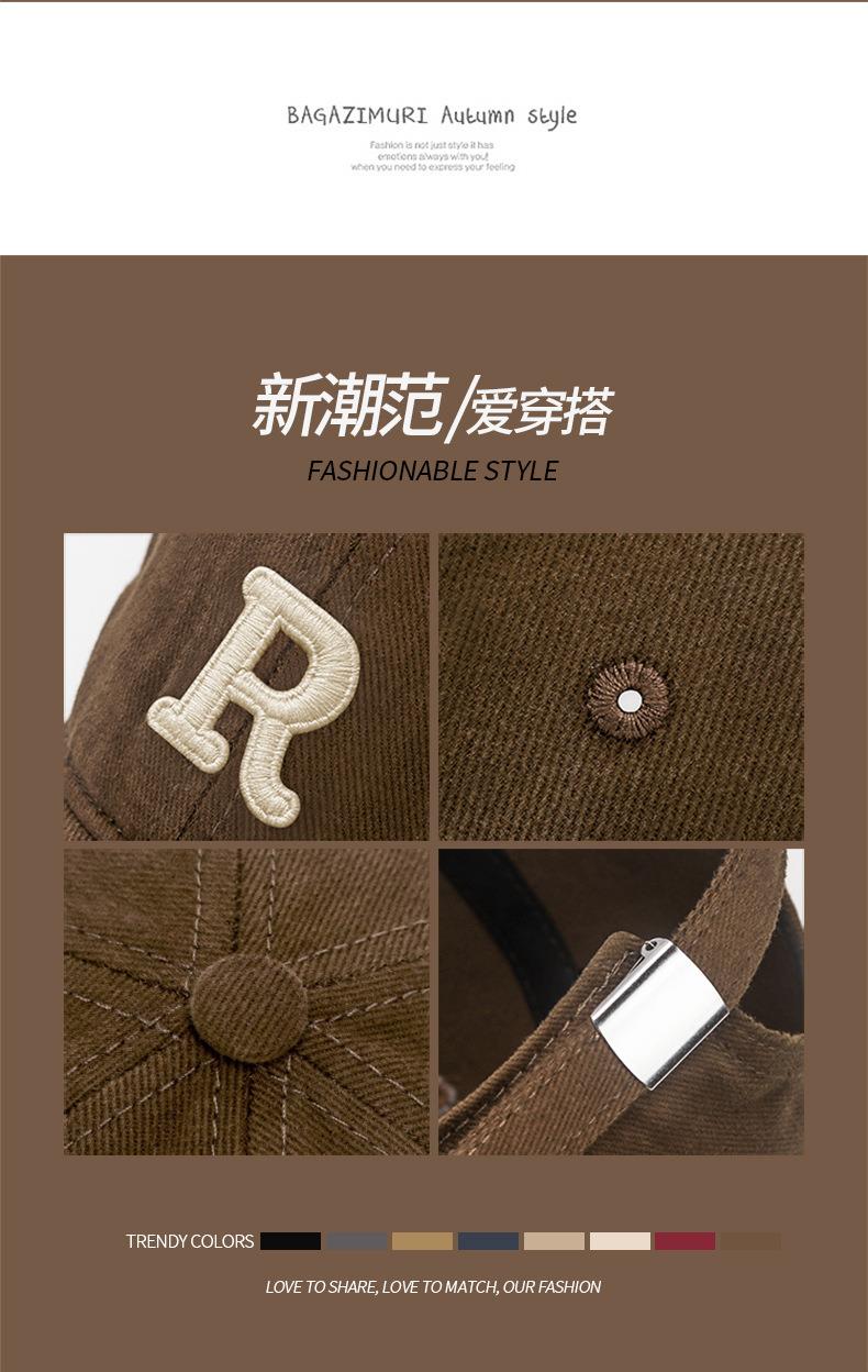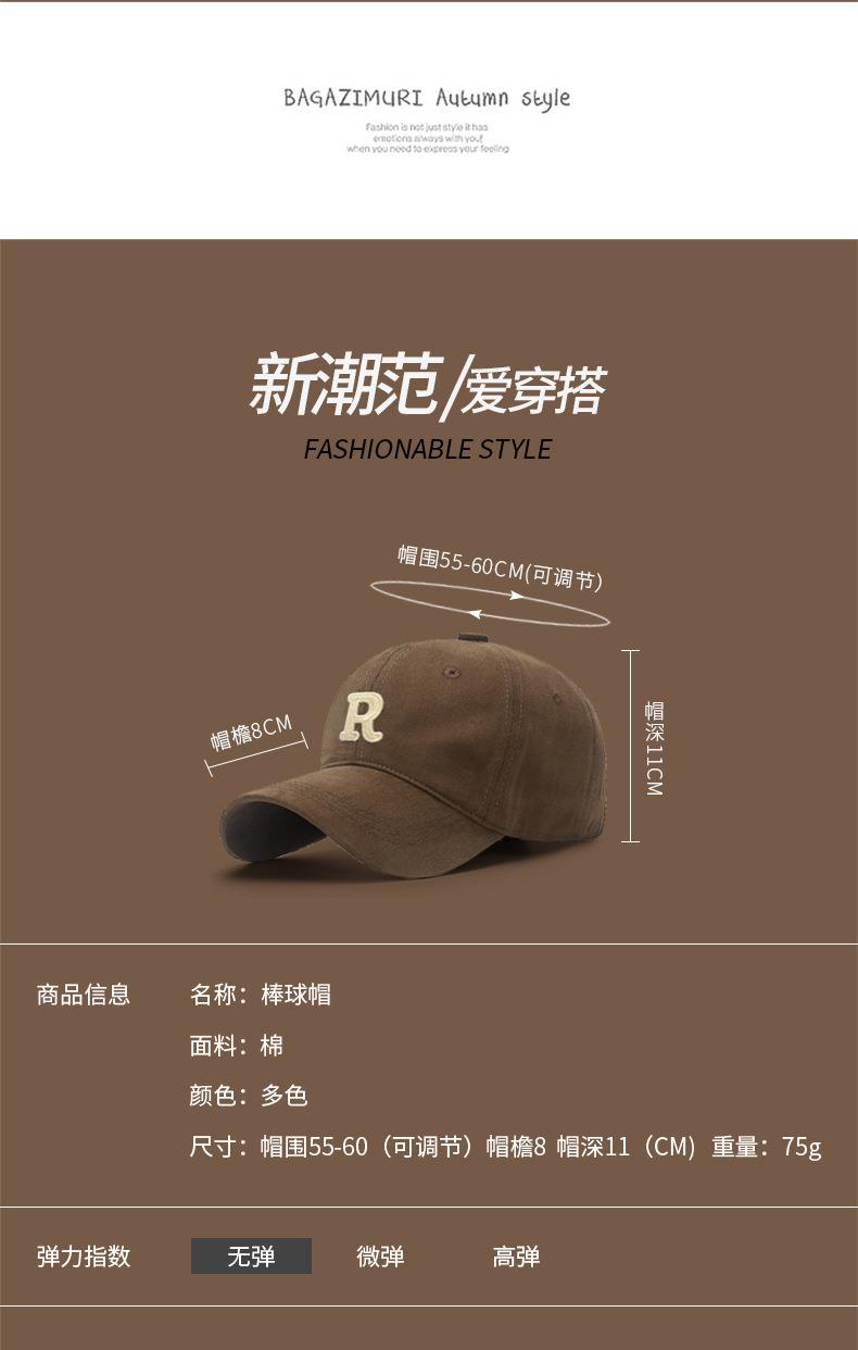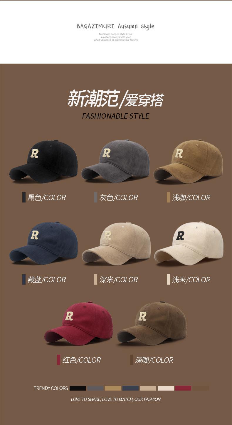 韩版大头围立体棉线刺绣R字母棒球帽女抖音代发百搭磨毛鸭舌帽子