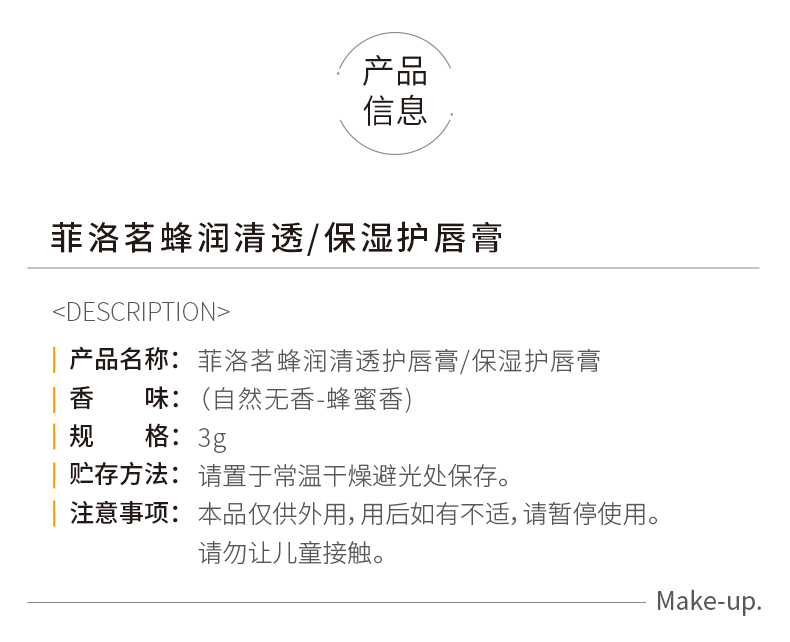 菲洛茗蜂润清透护唇膏(自然无香)保湿护唇膏(蜂蜜香)3g(250562-250563)
