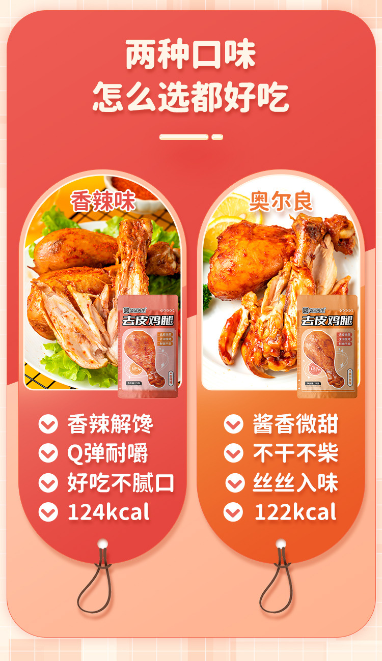 【香到骨头里的去皮鸡腿】袋鼠先生去皮鸡腿即食高蛋白鸡腿肉零食低减卡代餐脂健身餐熟食品。ry
