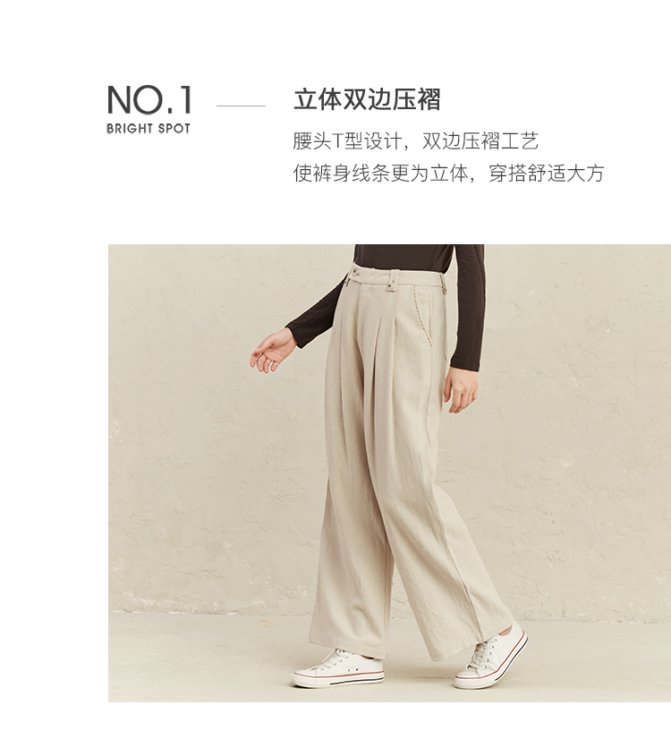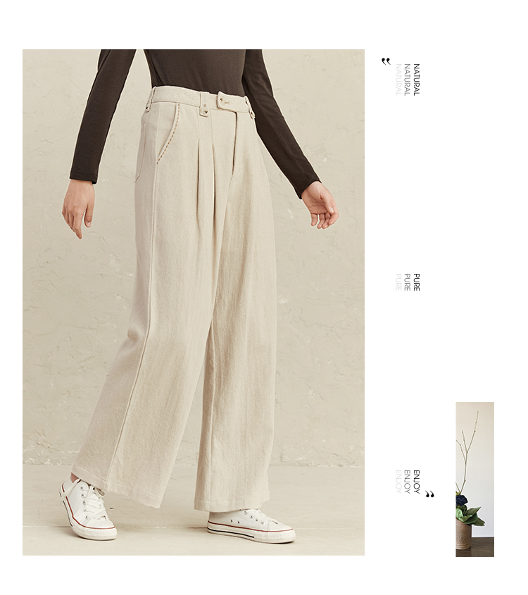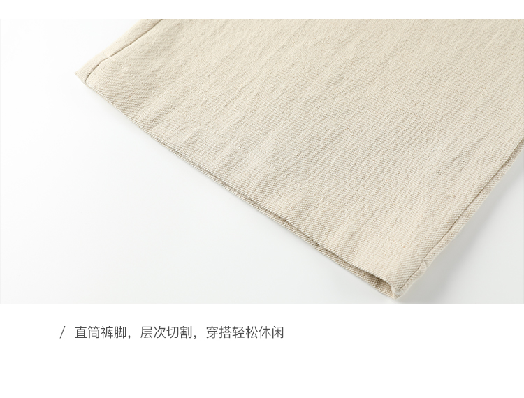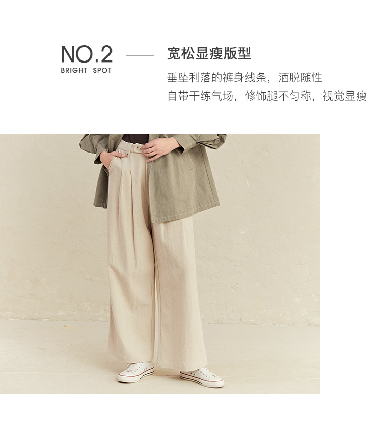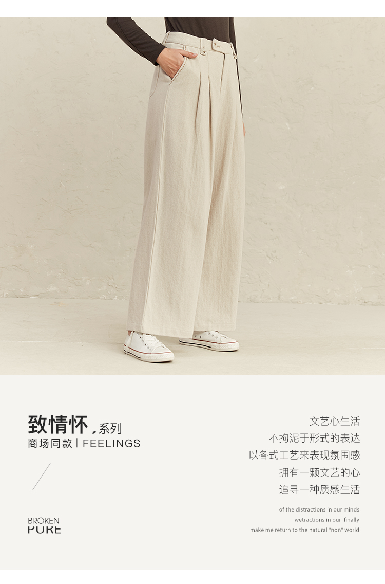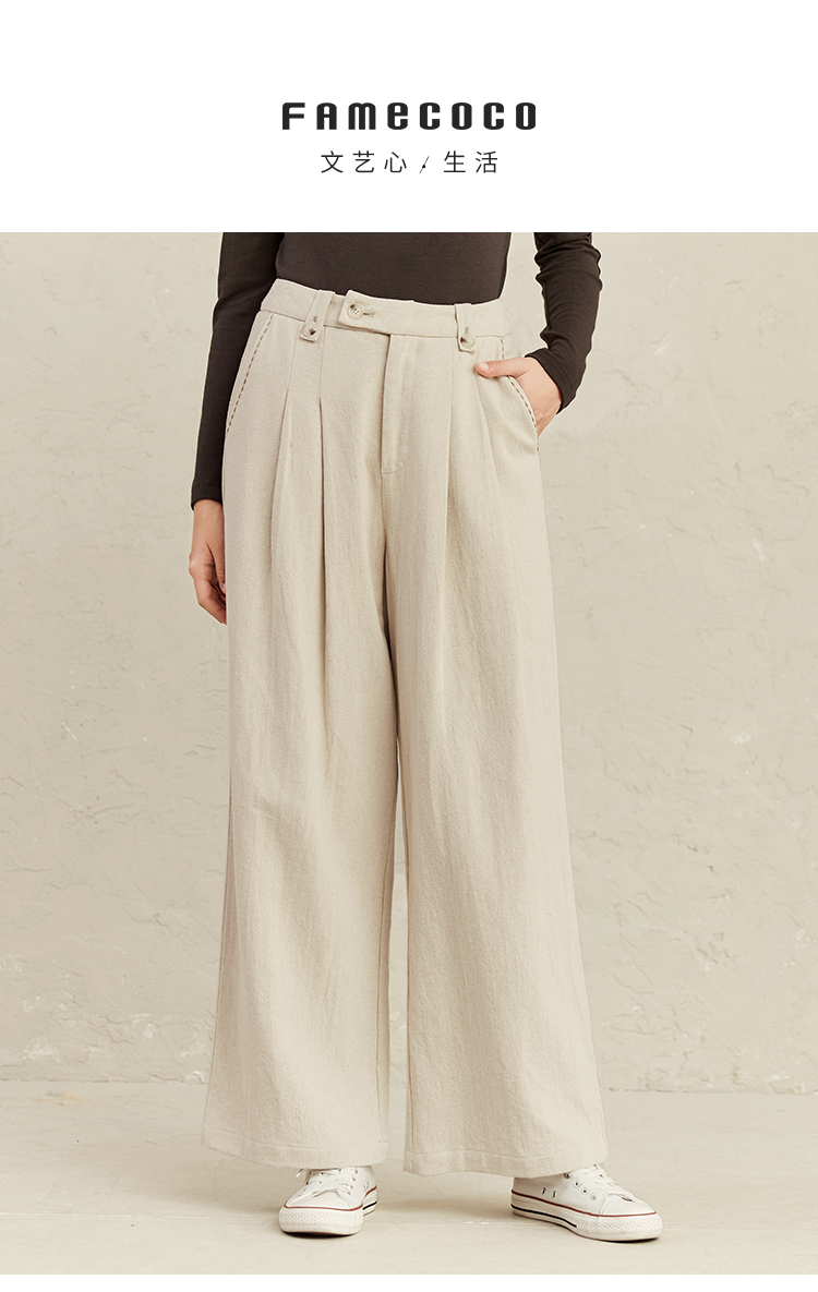 Famecoco范可儿棉麻阔腿裤女春秋款慵懒休闲裤F221GA015