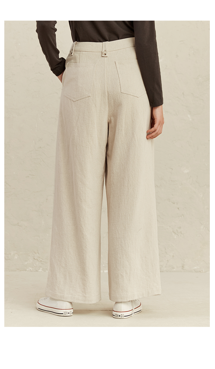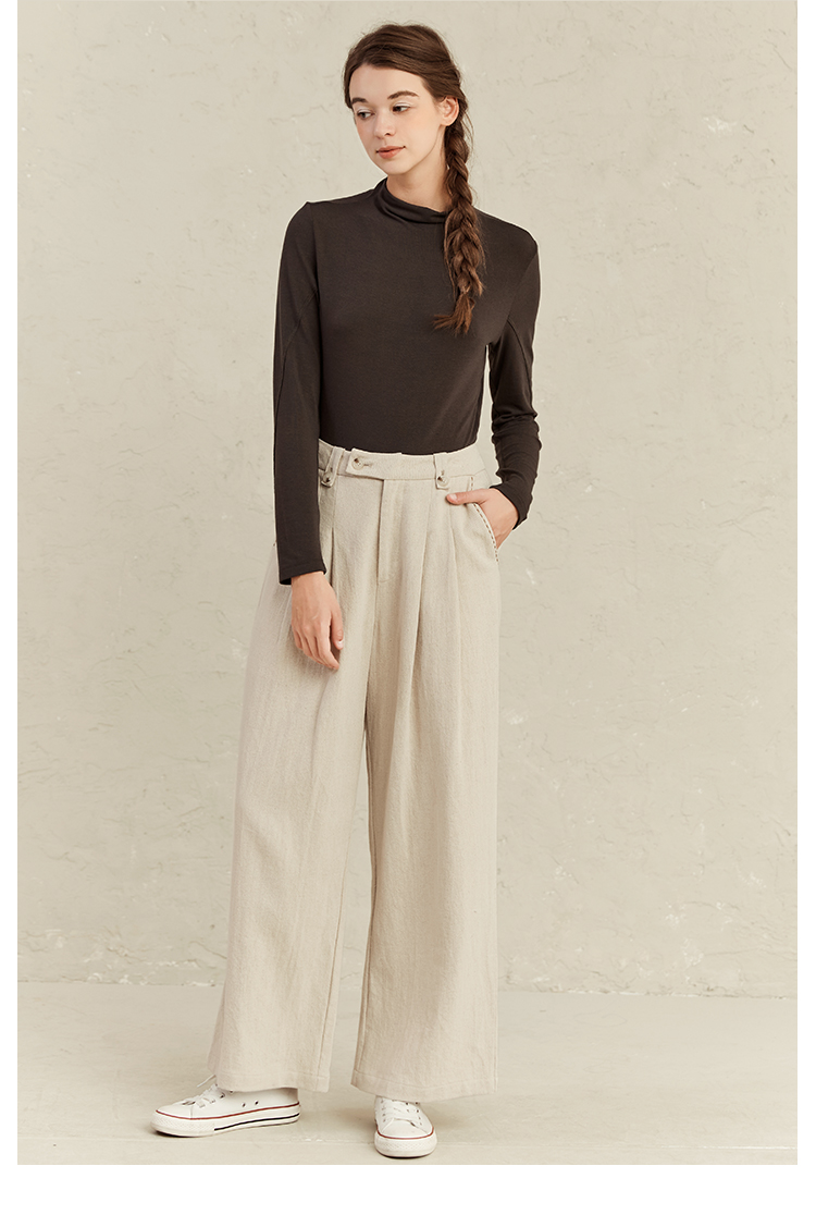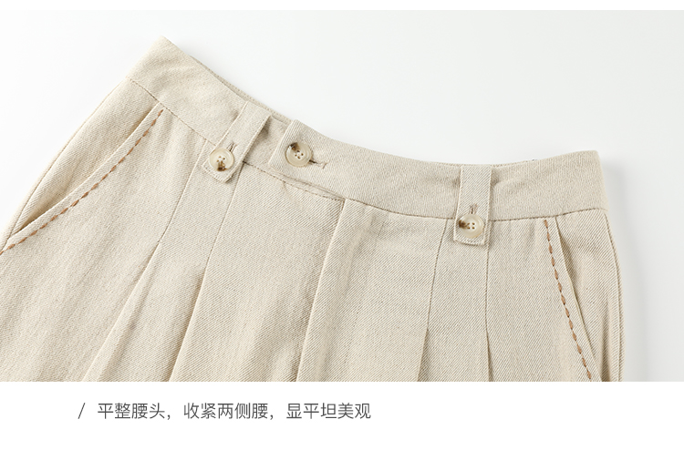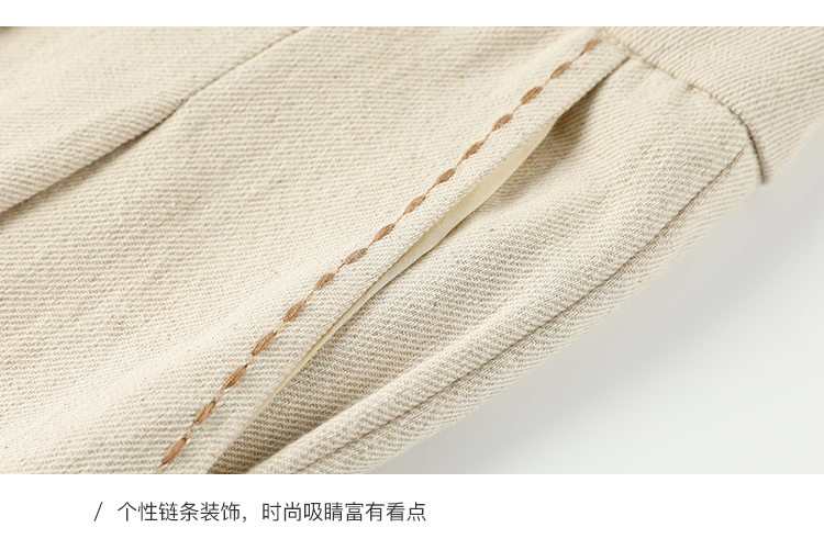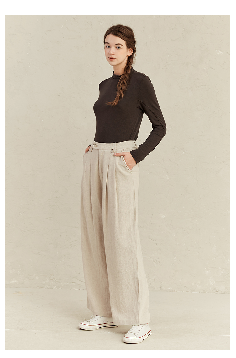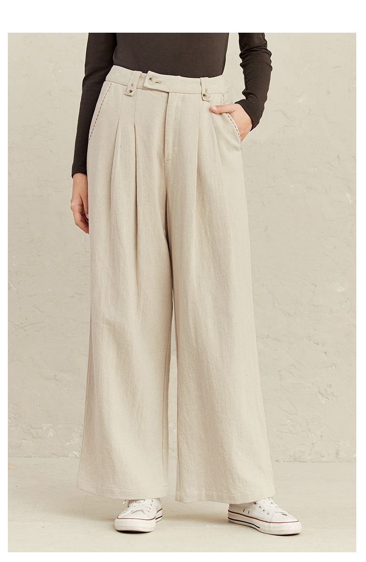 Famecoco范可儿棉麻阔腿裤女春秋款慵懒休闲裤F221GA015