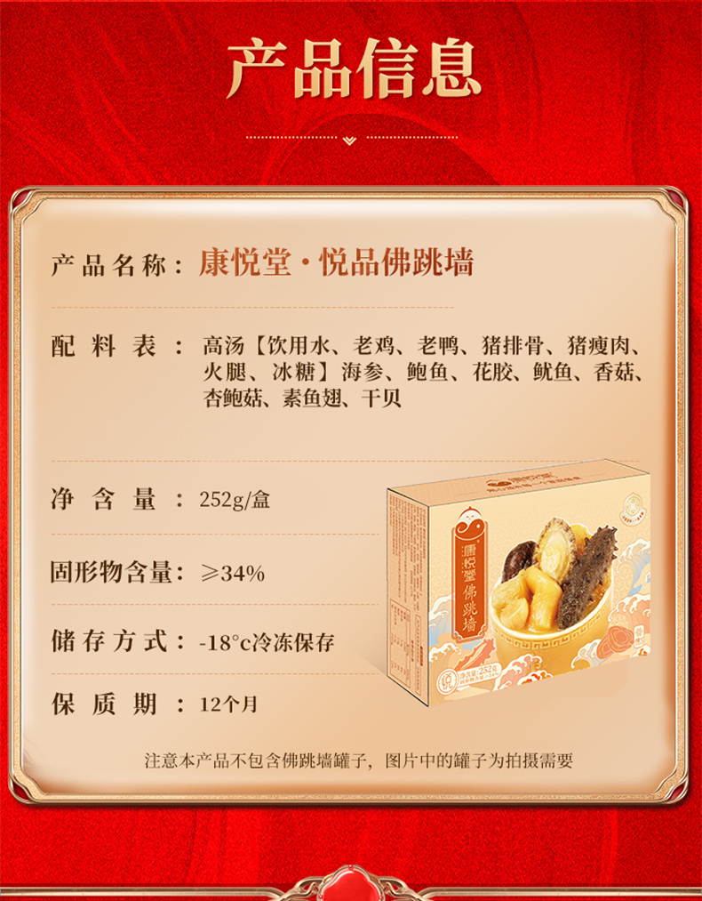 【康悦堂.悦品佛跳墙 】金汤参鲍佛跳墙 独立包装 加热即食 送礼佳品252g/盒