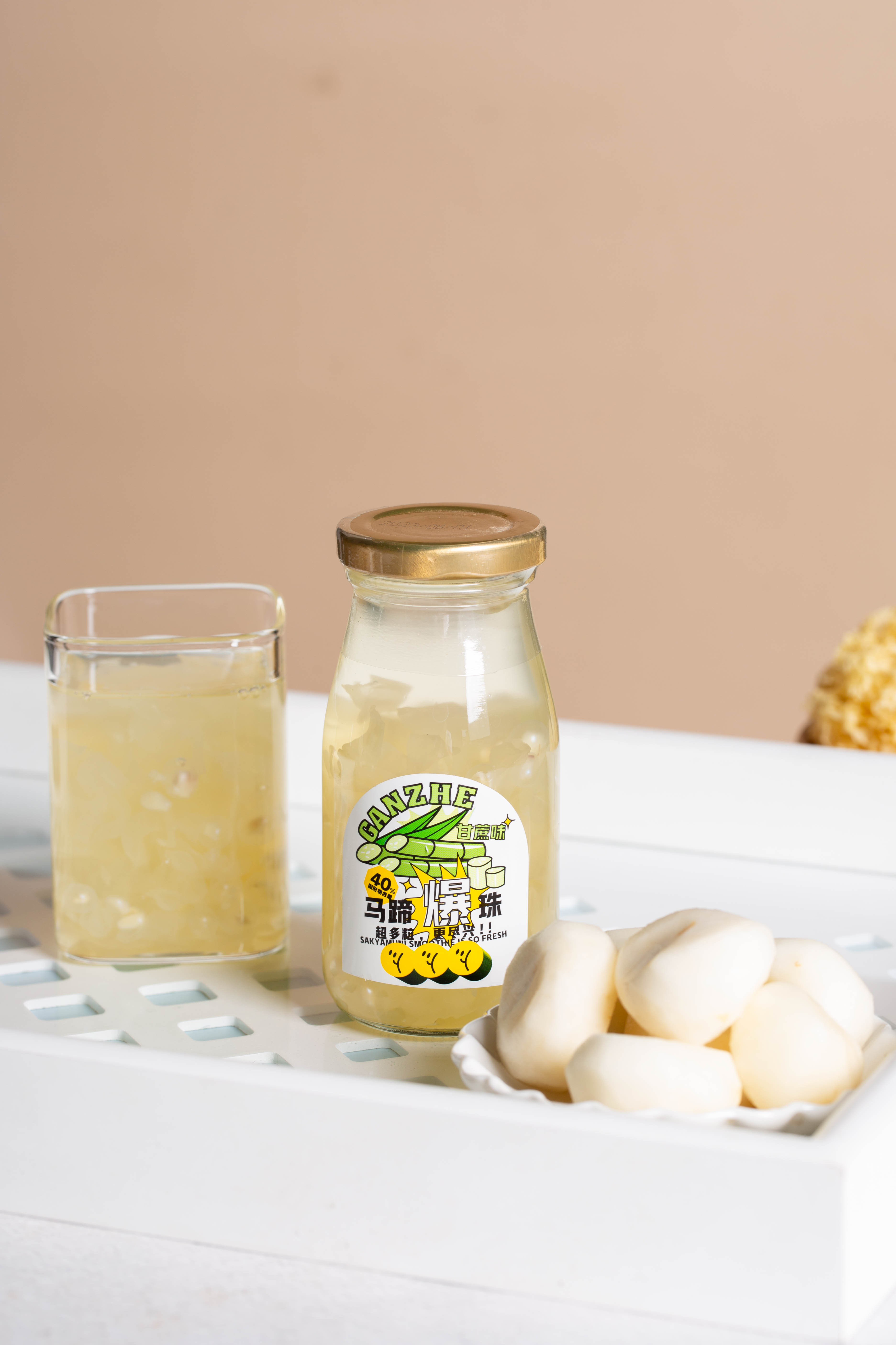 一颗颗马蹄爆珠像珍珠 挤满瓶子