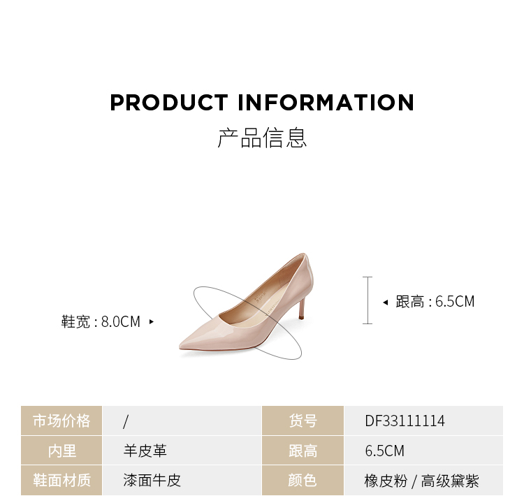 DFuse迪芙斯秋季新款漆皮尖头细跟高跟鞋OL职业单鞋DF33111114