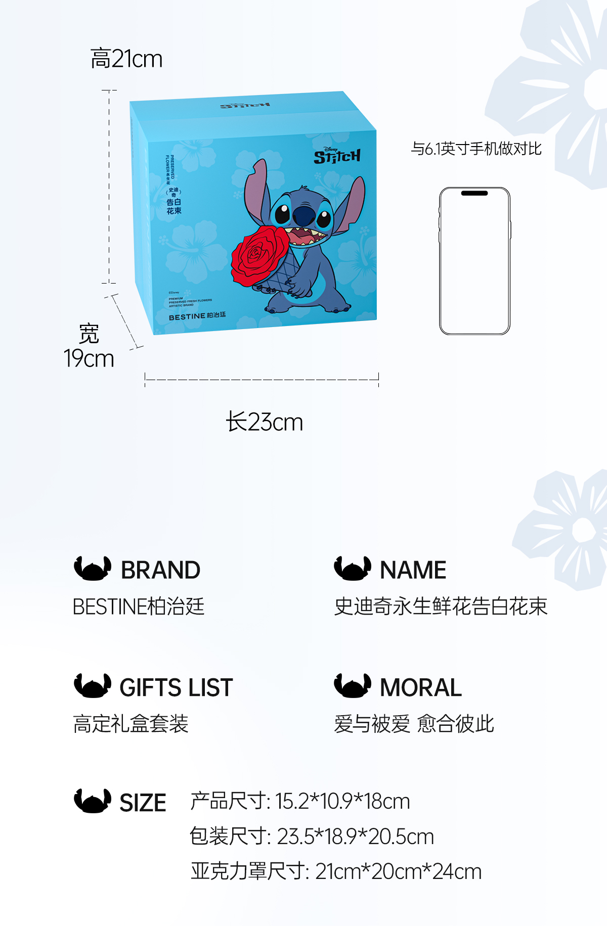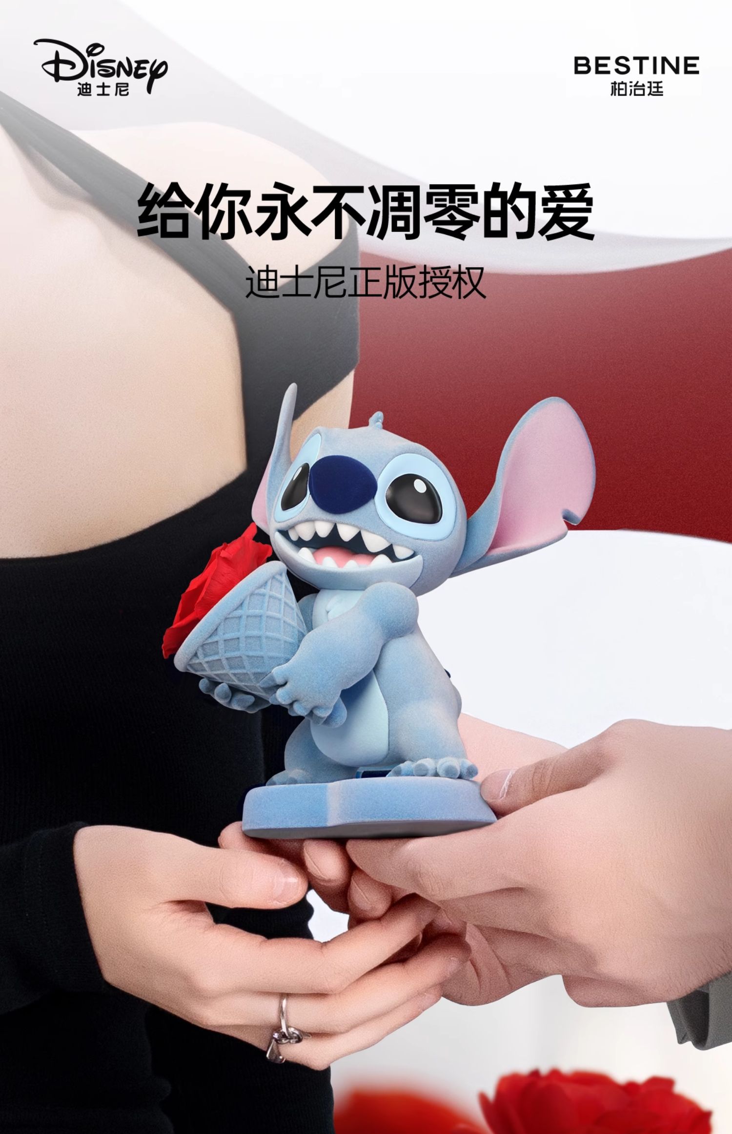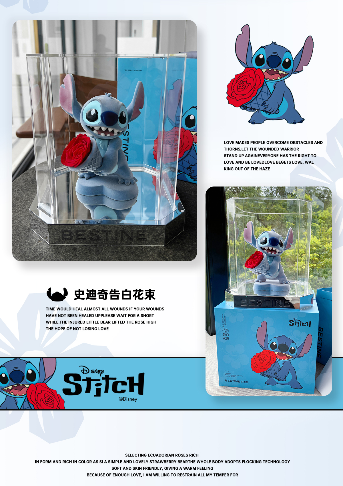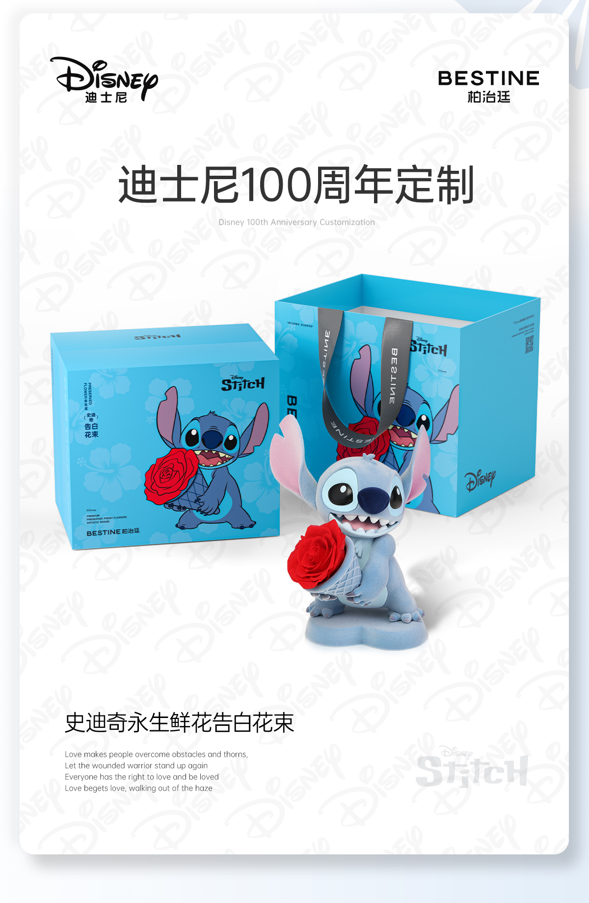 VBEINGS花语 迪士尼史迪仔永生花玫瑰花 礼盒玫瑰花摆件花束送生日礼物