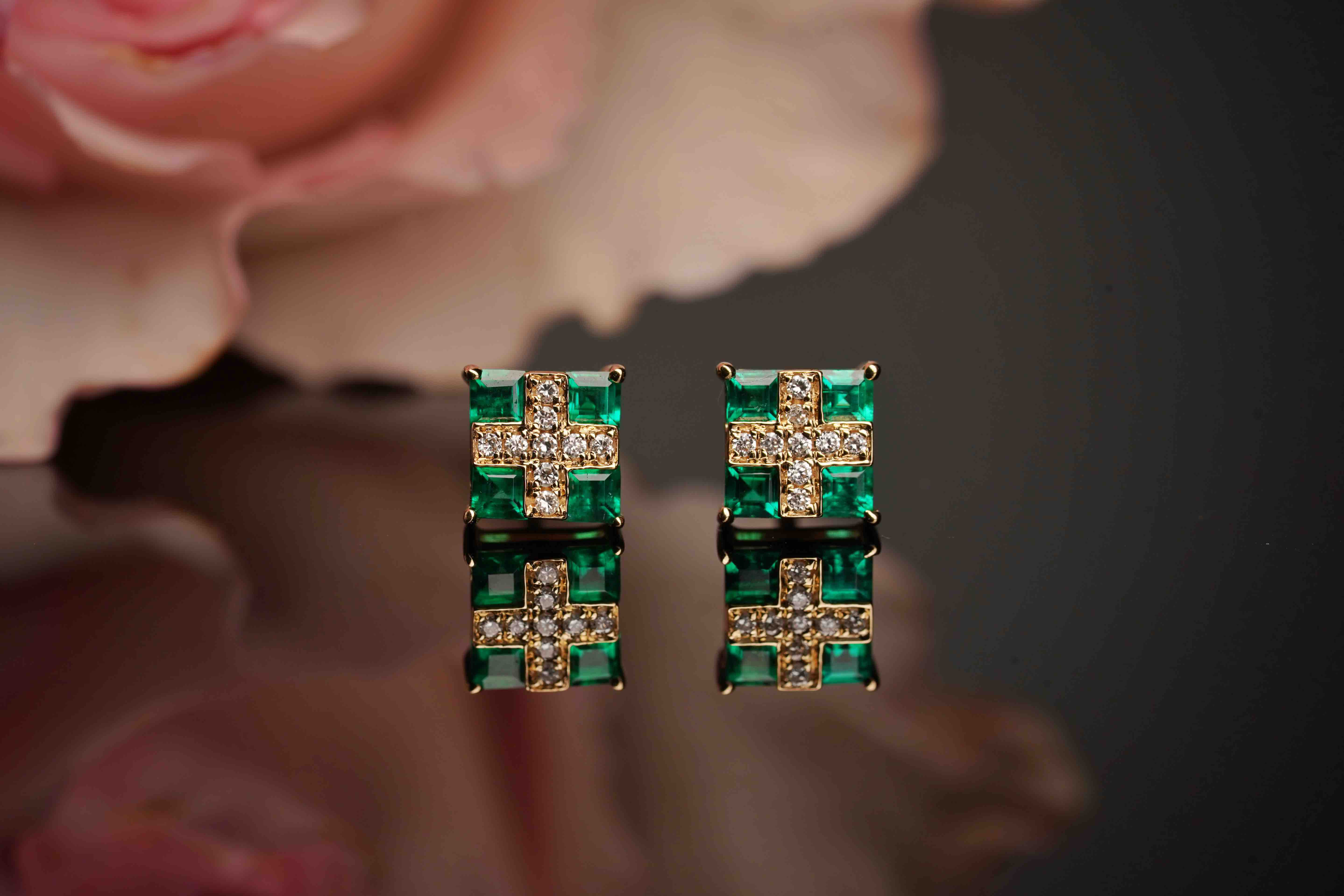 祖母绿40分 祖母绿方块耳钉含镶嵌5.7*5.7*3mm