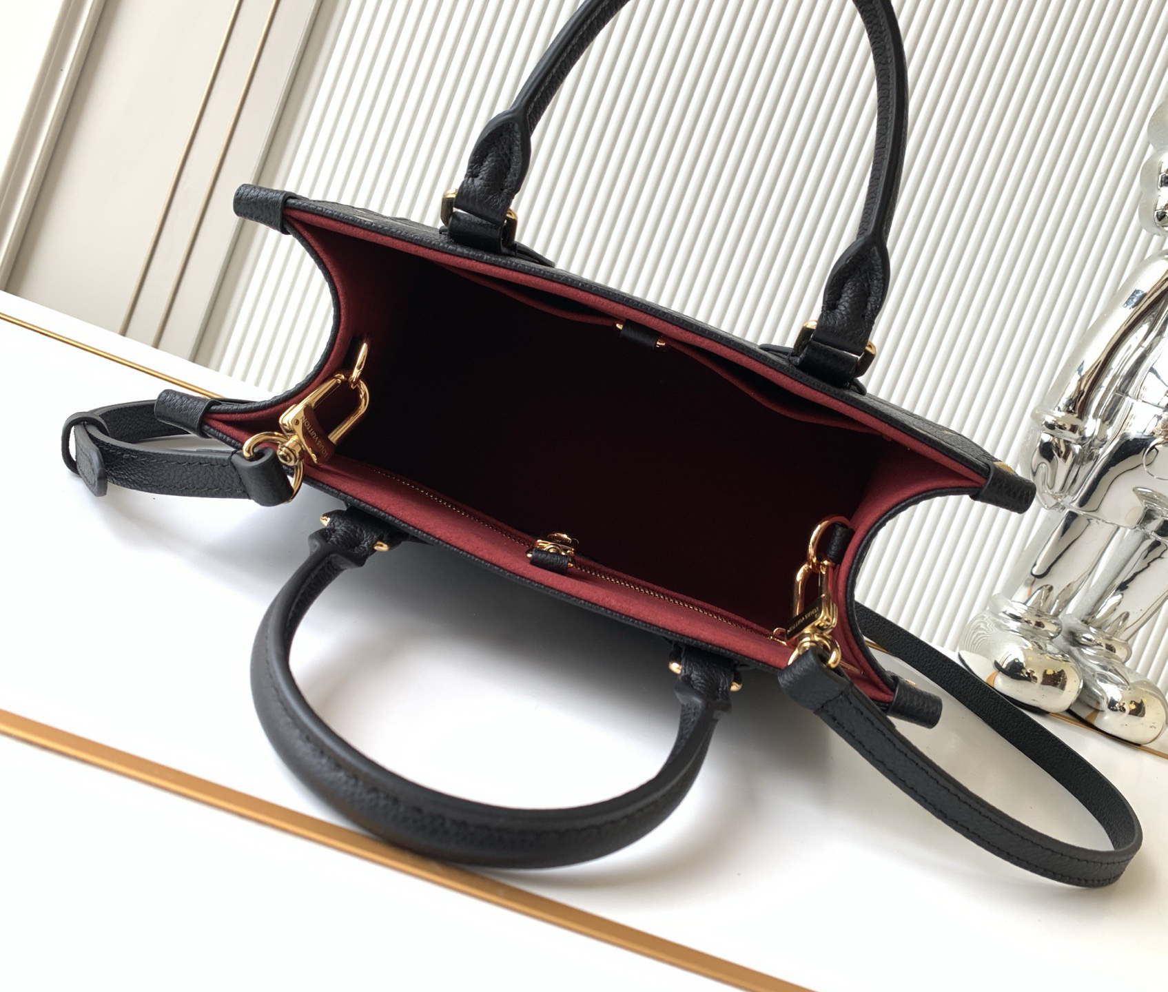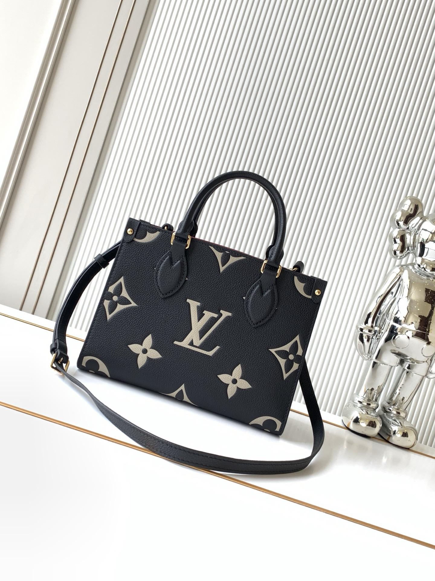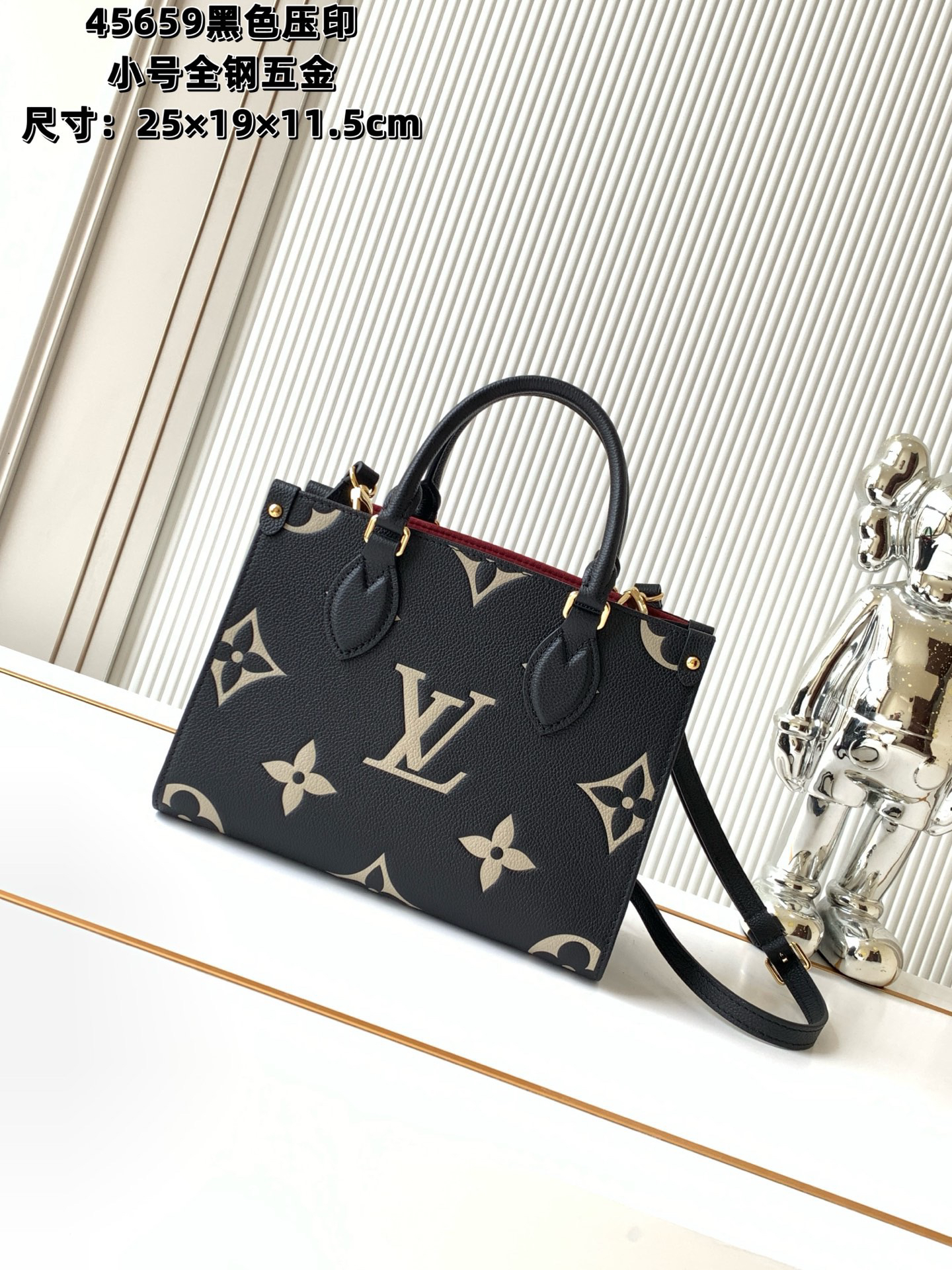 秋冬特惠💰1330 渠道级LV【全钢五金 变码芯片】te级LV 全套包装 M45659黑色压印 本款 OnTheGo小号手袋为品牌经典压纹皮革描绘撞色Monogram图案,搭配耀目金属件,成就日常出行的雅致之选。顶部手柄和可调节肩带实现灵活背携。