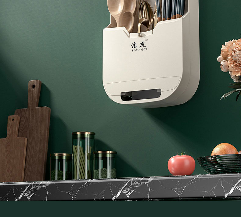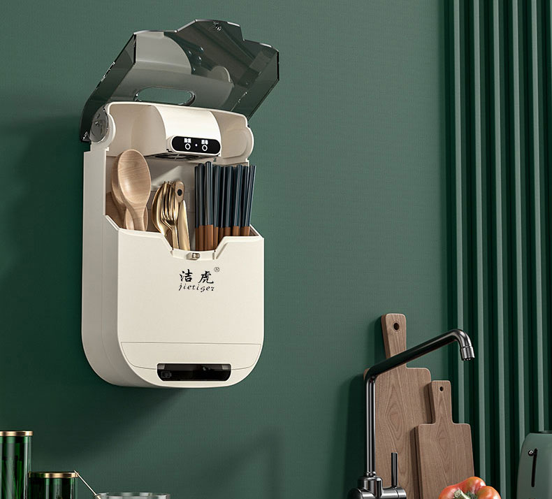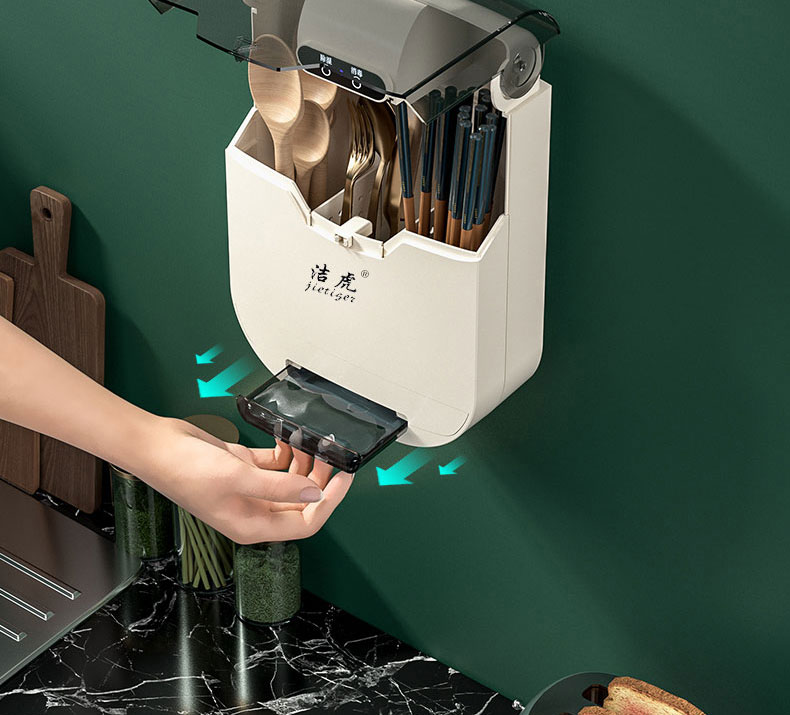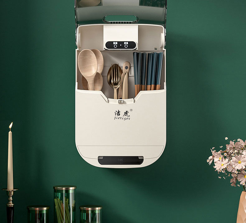 【壁挂式筷子消毒器】洁虎筷笼 免打孔筷子筒紫外线消毒 风干去湿带盖防尘塑料筷子笼餐具盒 全自动智能防尘消毒烘干筷子笼