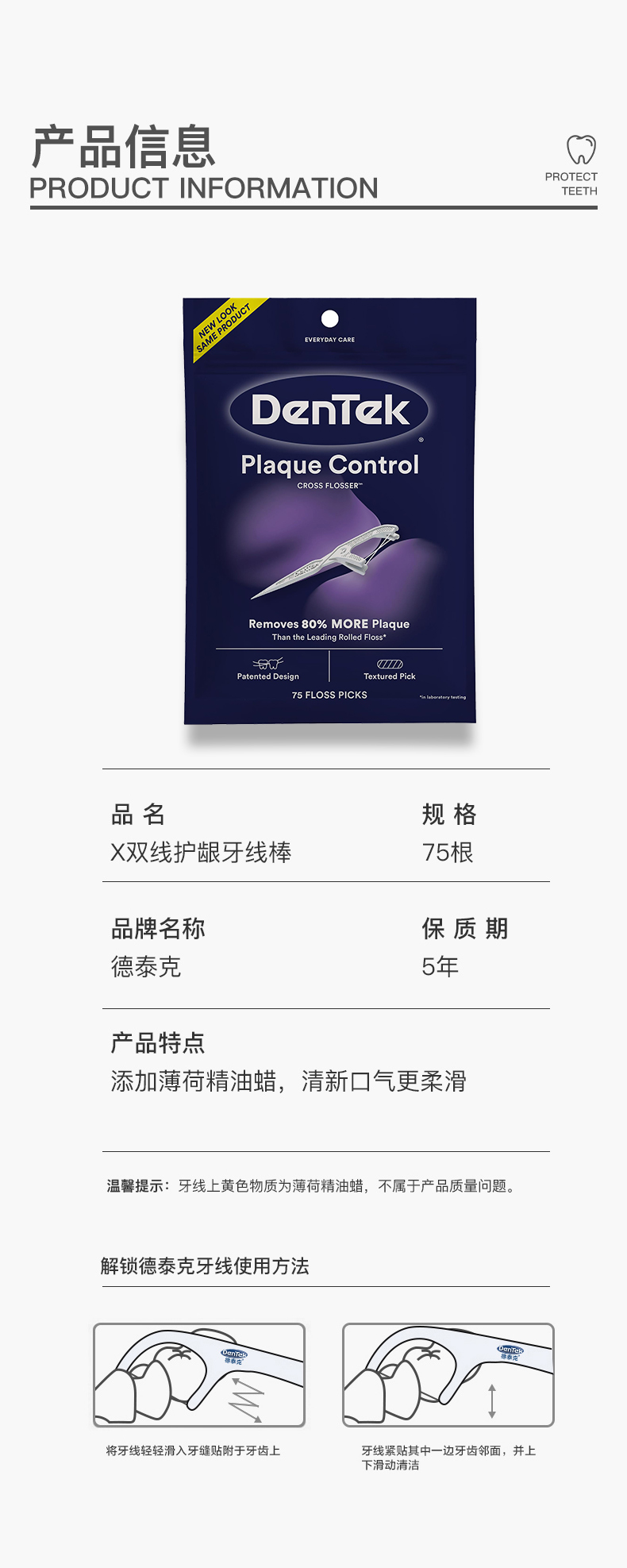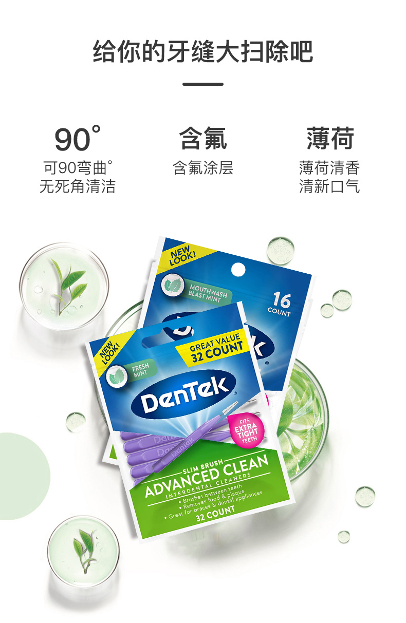 DENTEK(德泰克)含氟牙缝清洁刷薄荷味紧密牙间隙清洁牙齿正畸牙签刷