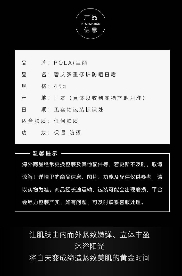 POLA宝丽黑B.A防晒隔离霜乳 45g SPF50 PA++++贵妇礼物 黑BA防晒乳(CDF)