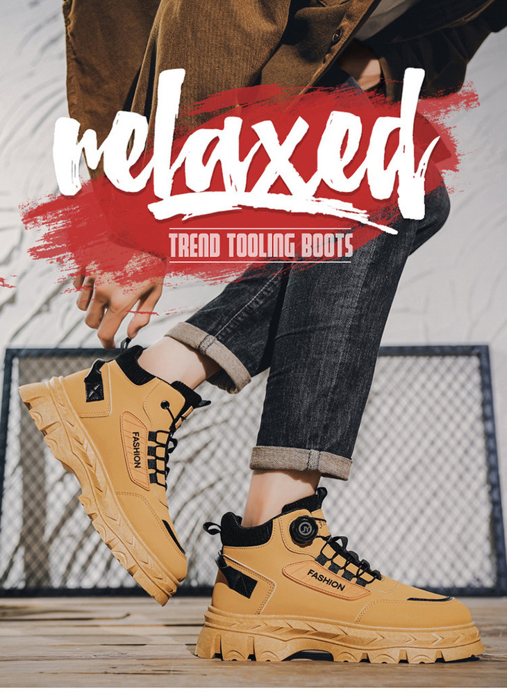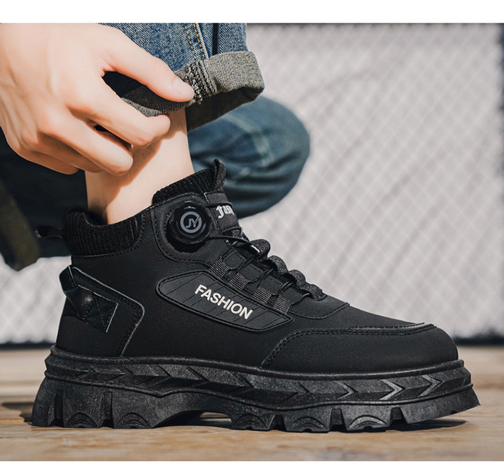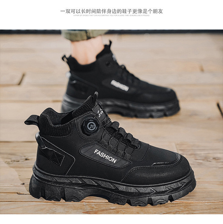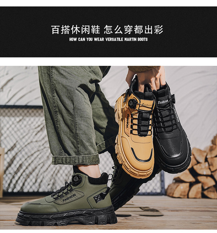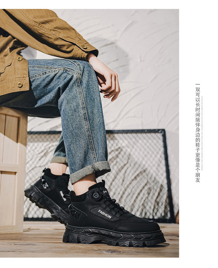 男鞋秋季新款高帮工装鞋子男士英伦风复古短靴厚底马丁靴男潮