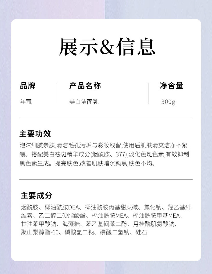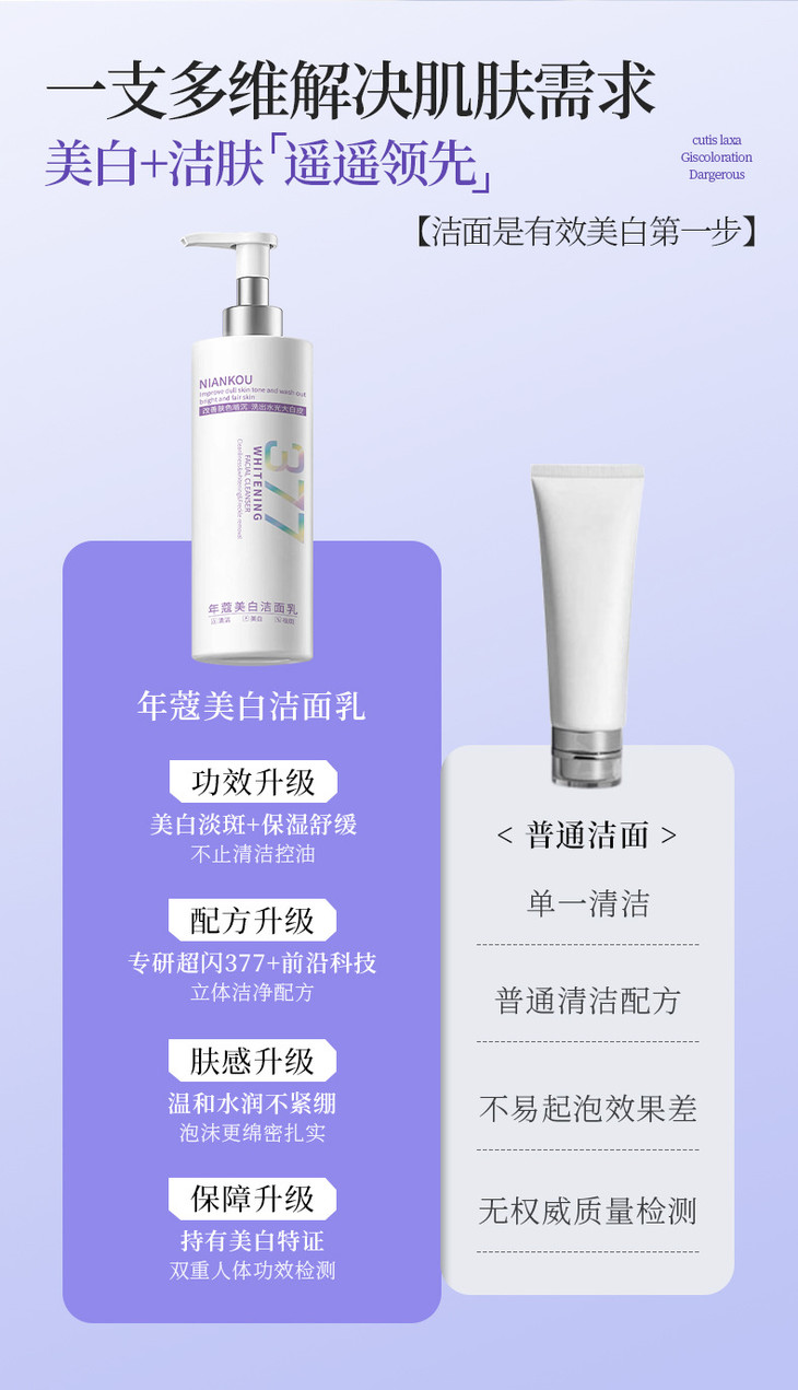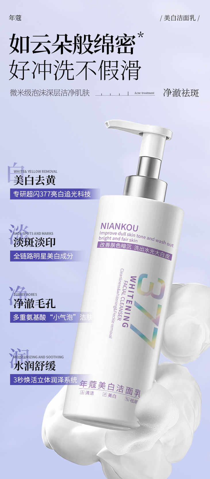 377美白祛斑洗面奶补水保湿淡斑提亮嫩肤洁面乳300ml