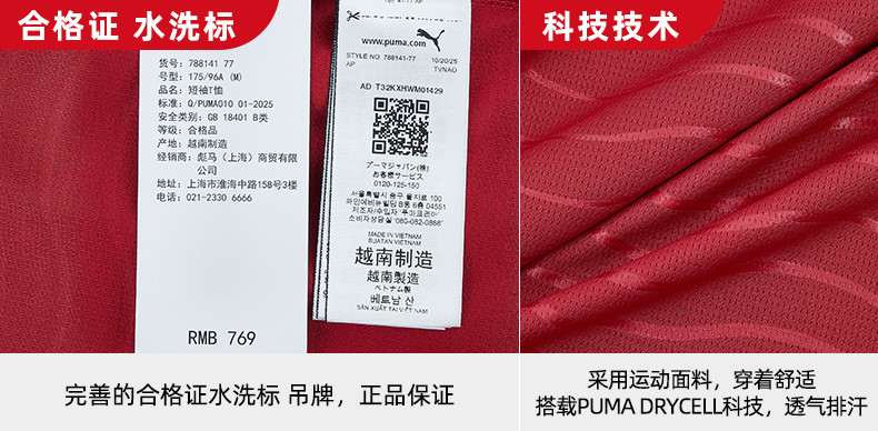 SFS彪马2026世界杯葡萄牙主场球迷版C罗印号球衣短袖男788141-77