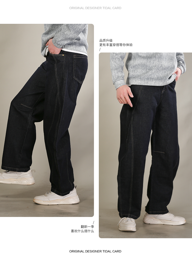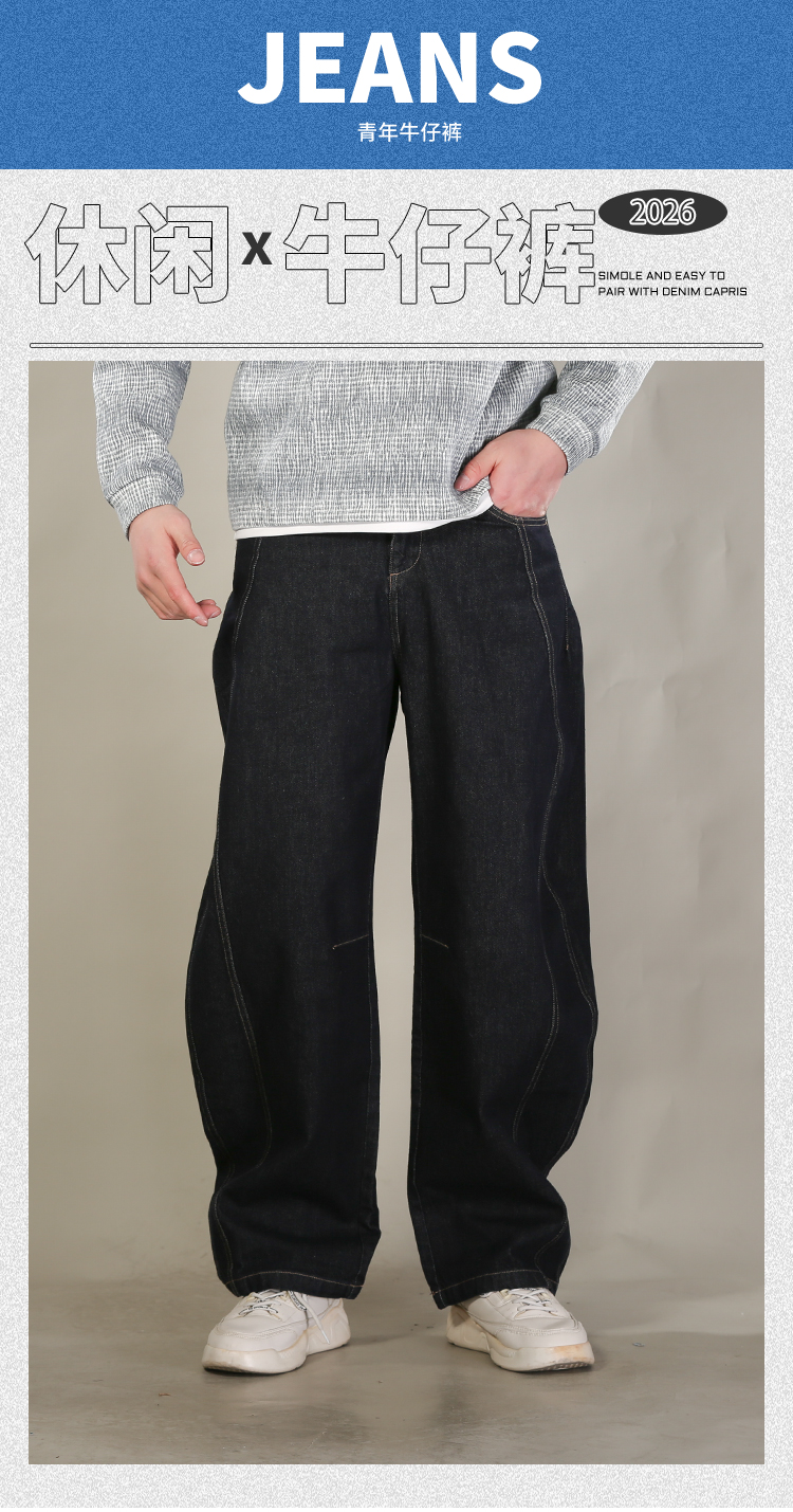 DRONKOO 2026 内抽绳半松紧前交叉破骨普洗弯刀型中厚牛仔长裤
