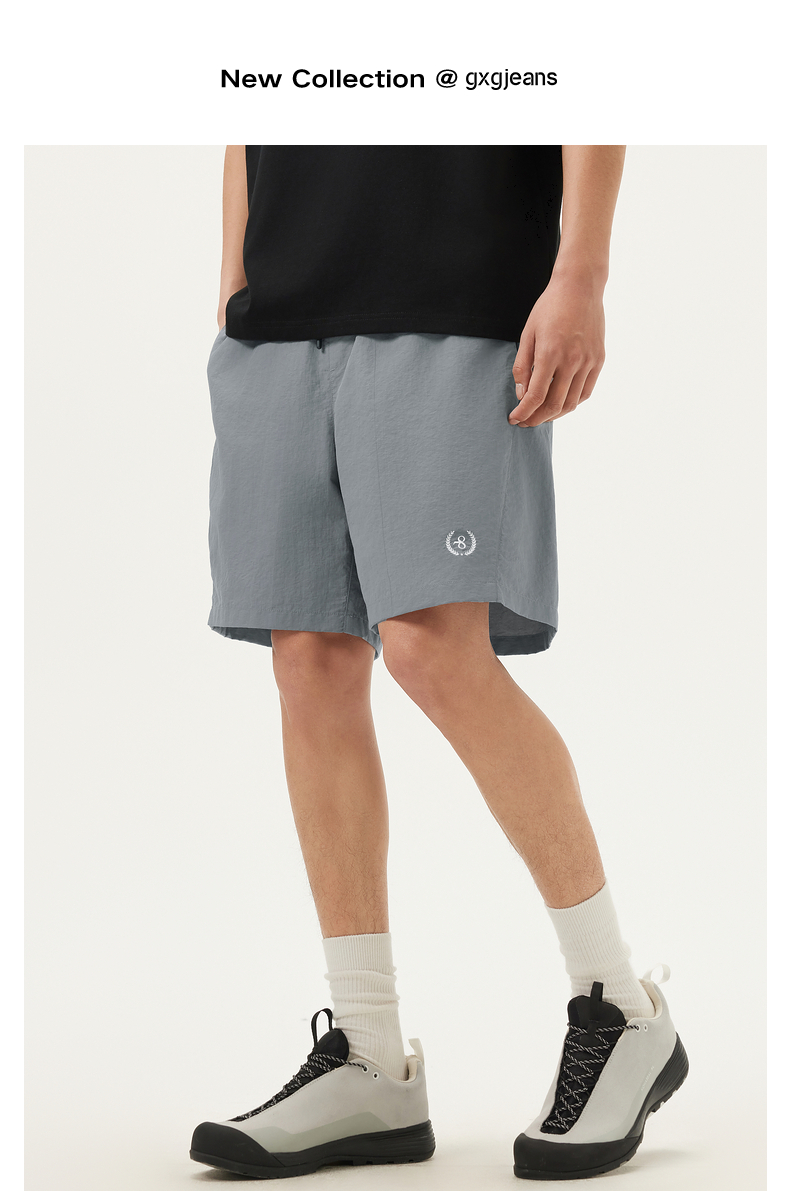 gxg.jeans男装 灰色个性绣花户外风直筒宽松休闲短裤薄款25夏热卖