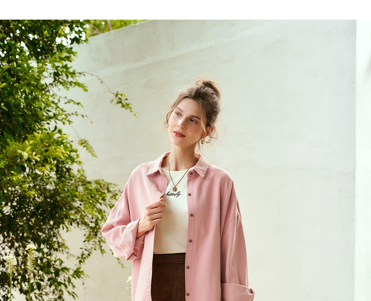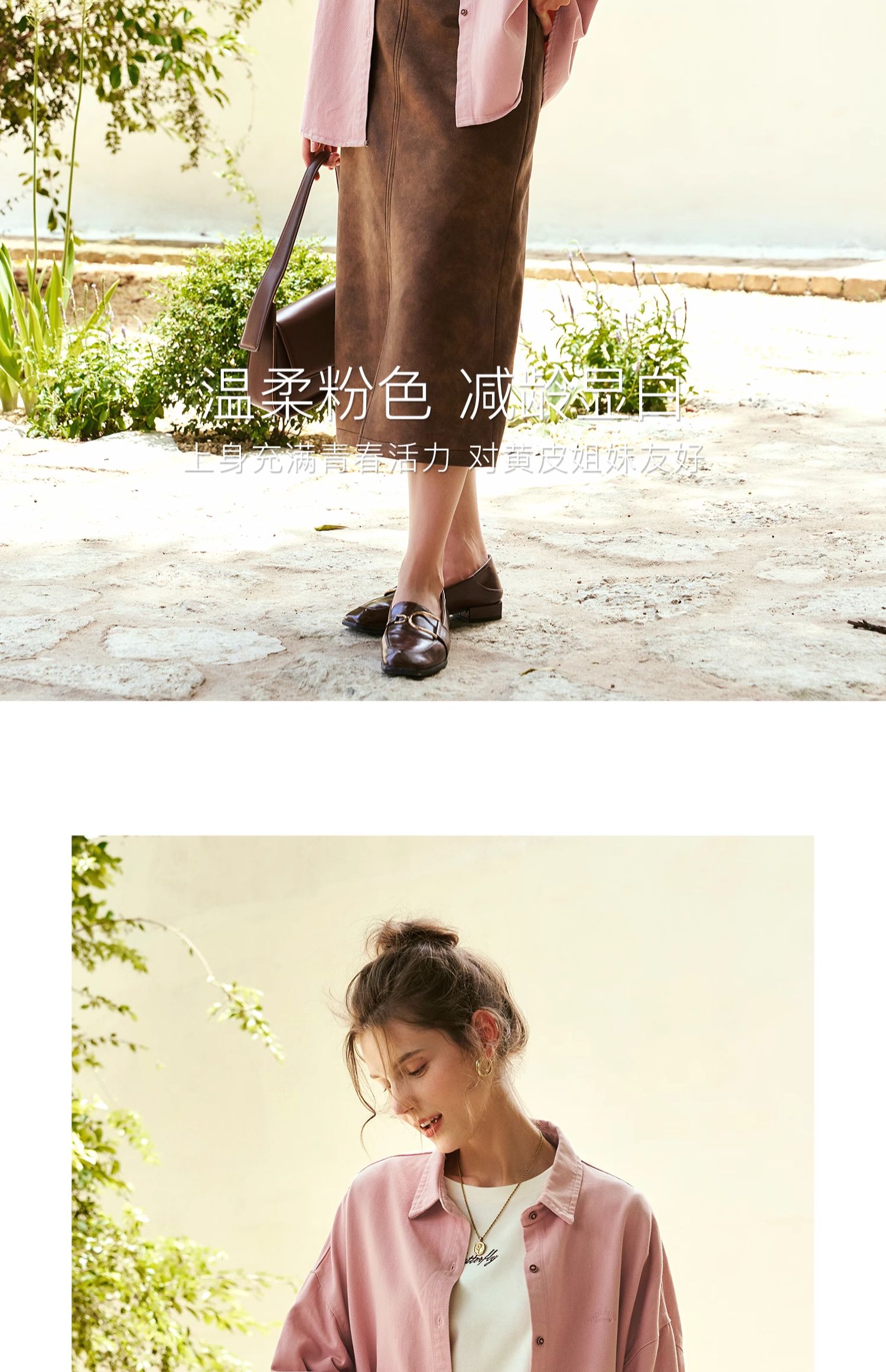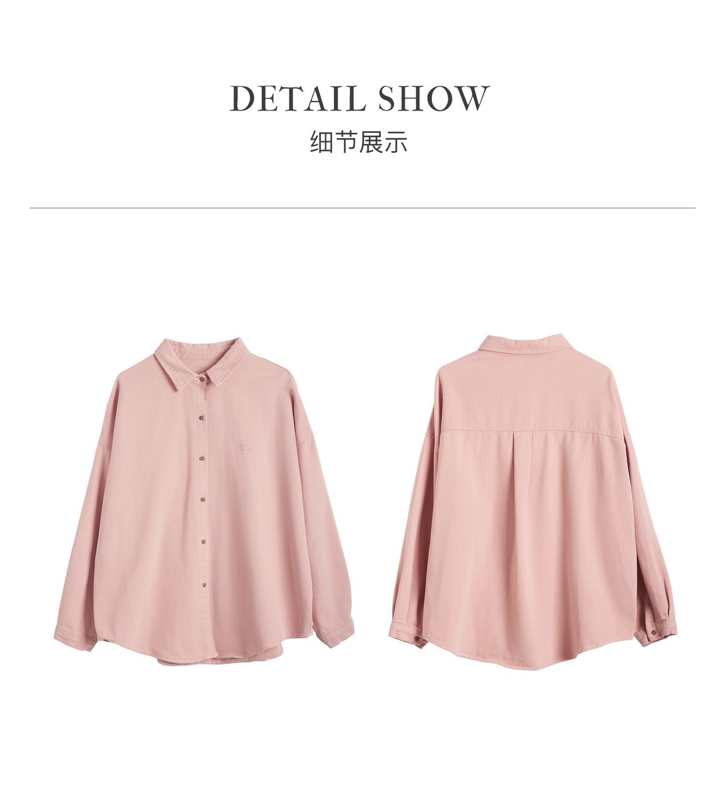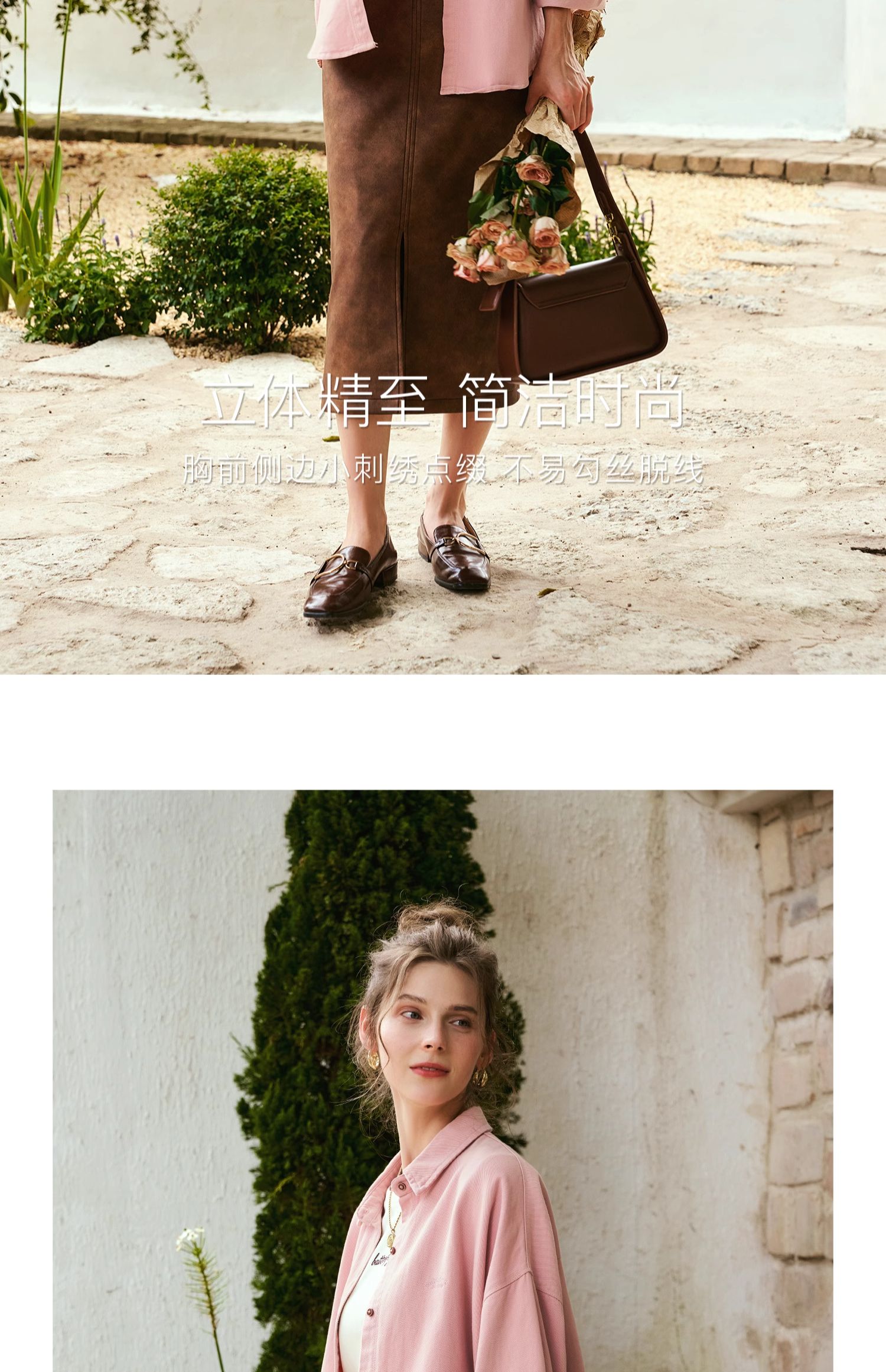 OLrain欧芮儿粉色长袖衬衫女秋季2024年新款简约慵懒风牛仔外套