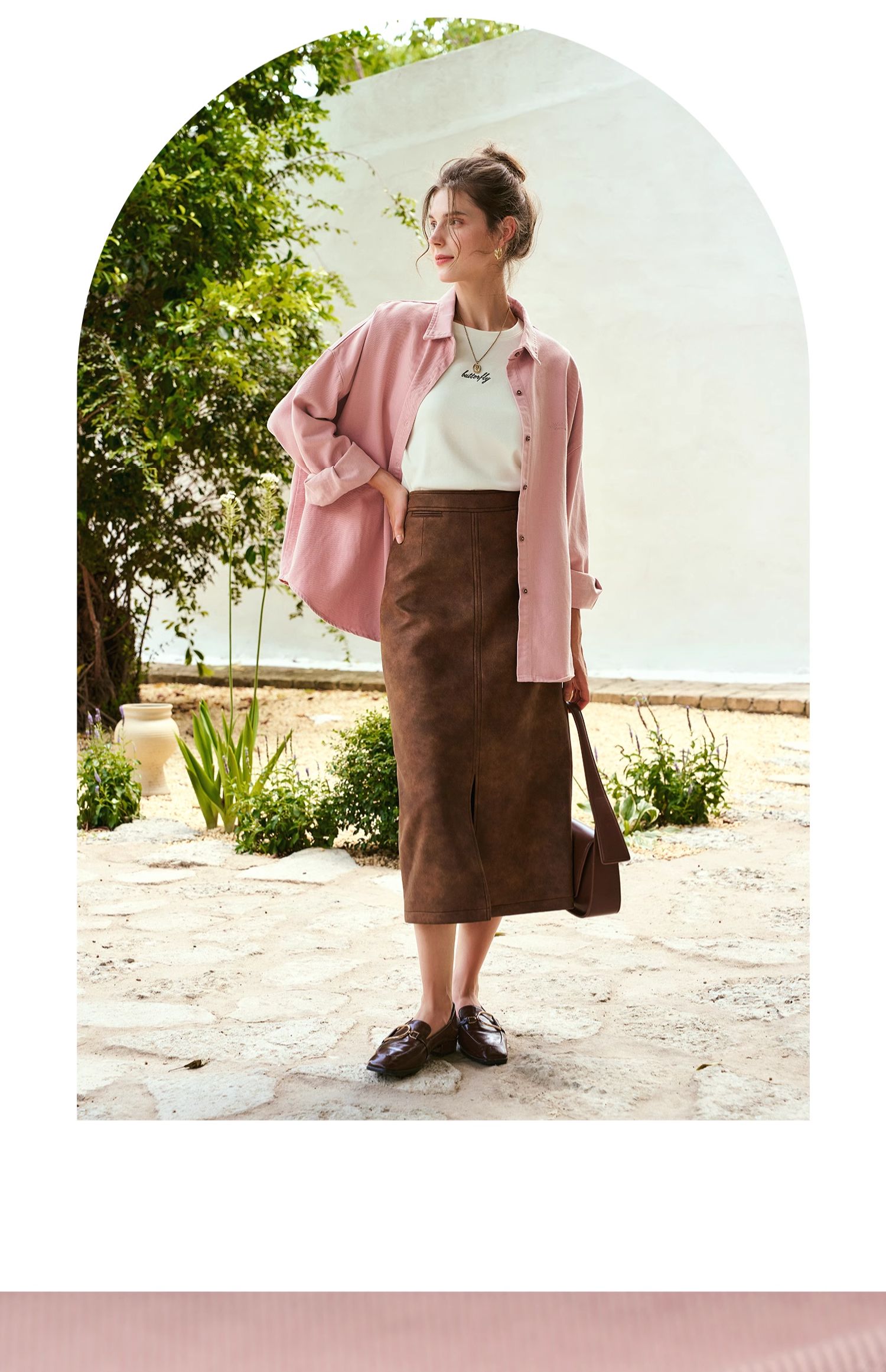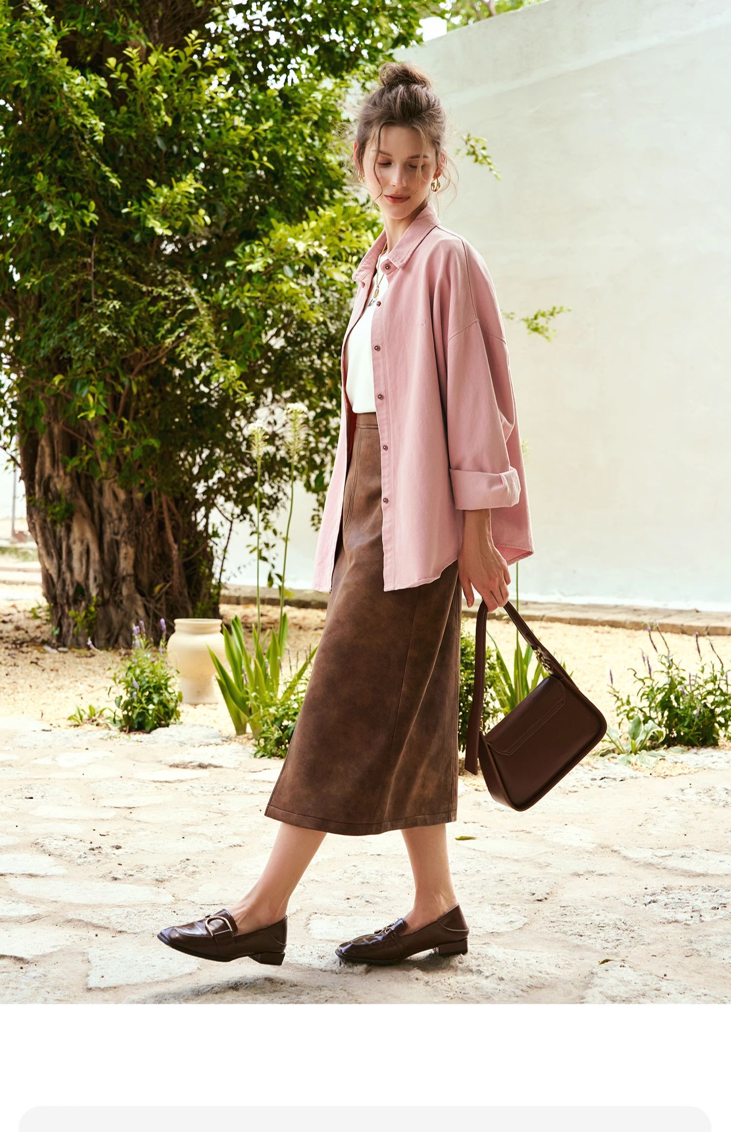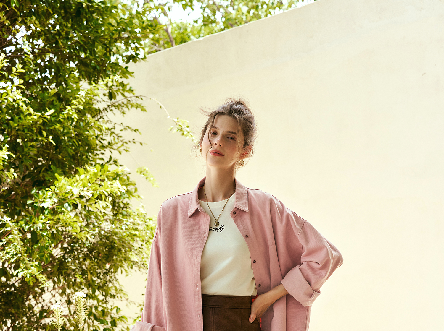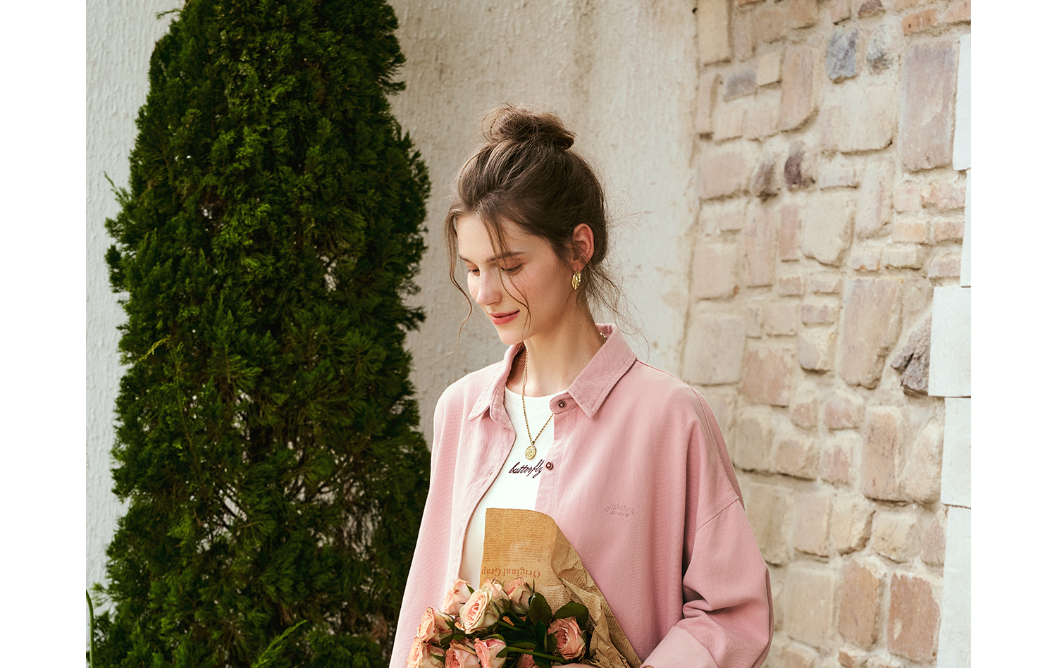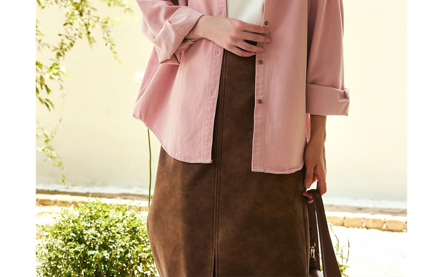 OLrain欧芮儿粉色长袖衬衫女秋季2024年新款简约慵懒风牛仔外套