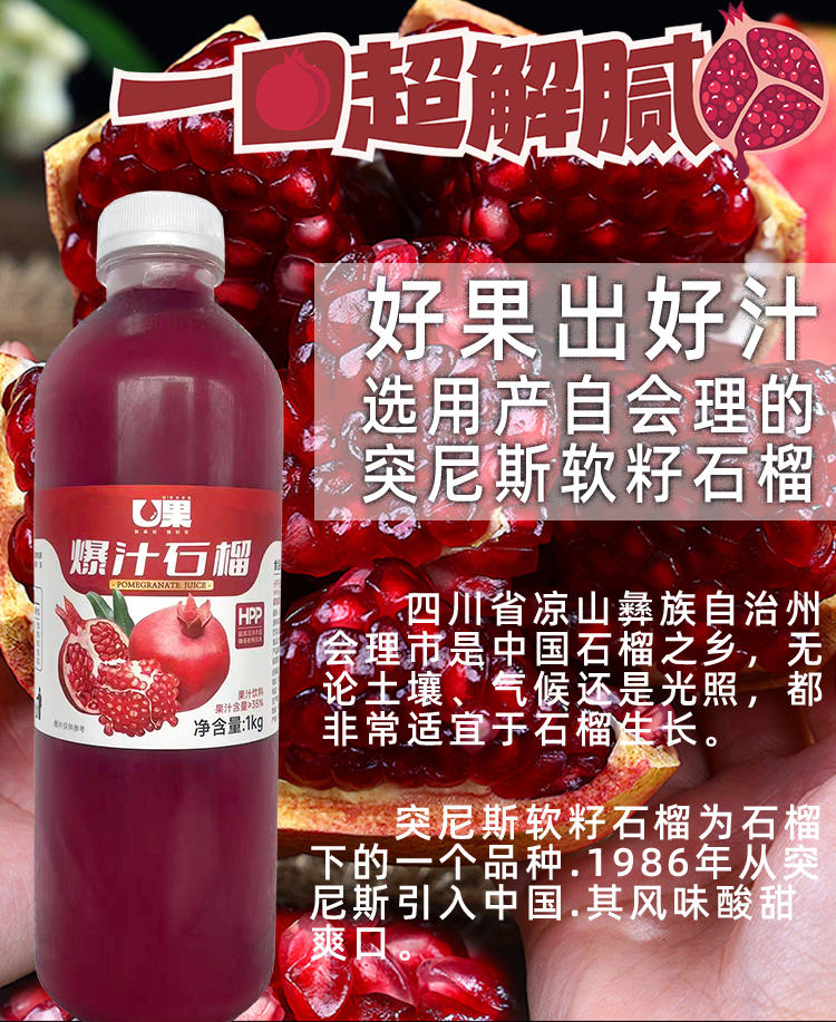 U果 爆汁石榴果汁饮料 HPP鲜果冷压果汁冷冻红石榴汁商用咖啡奶茶餐厅