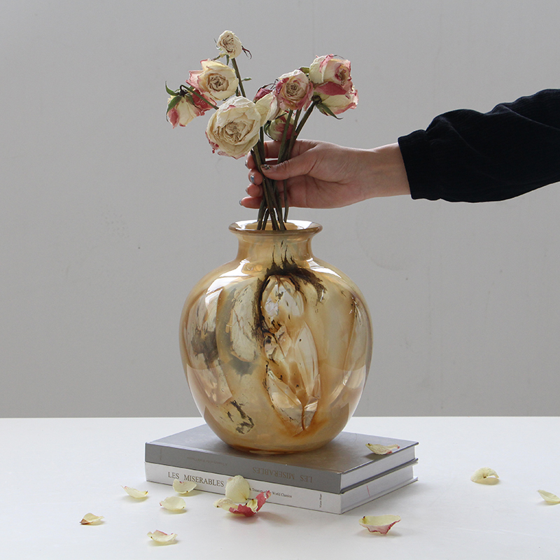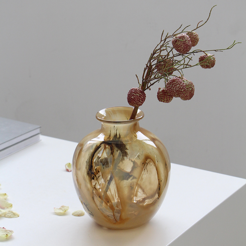厂家直销中古风玻璃简约奶玉色插花家居花瓶摆件礼品餐桌花瓶装饰