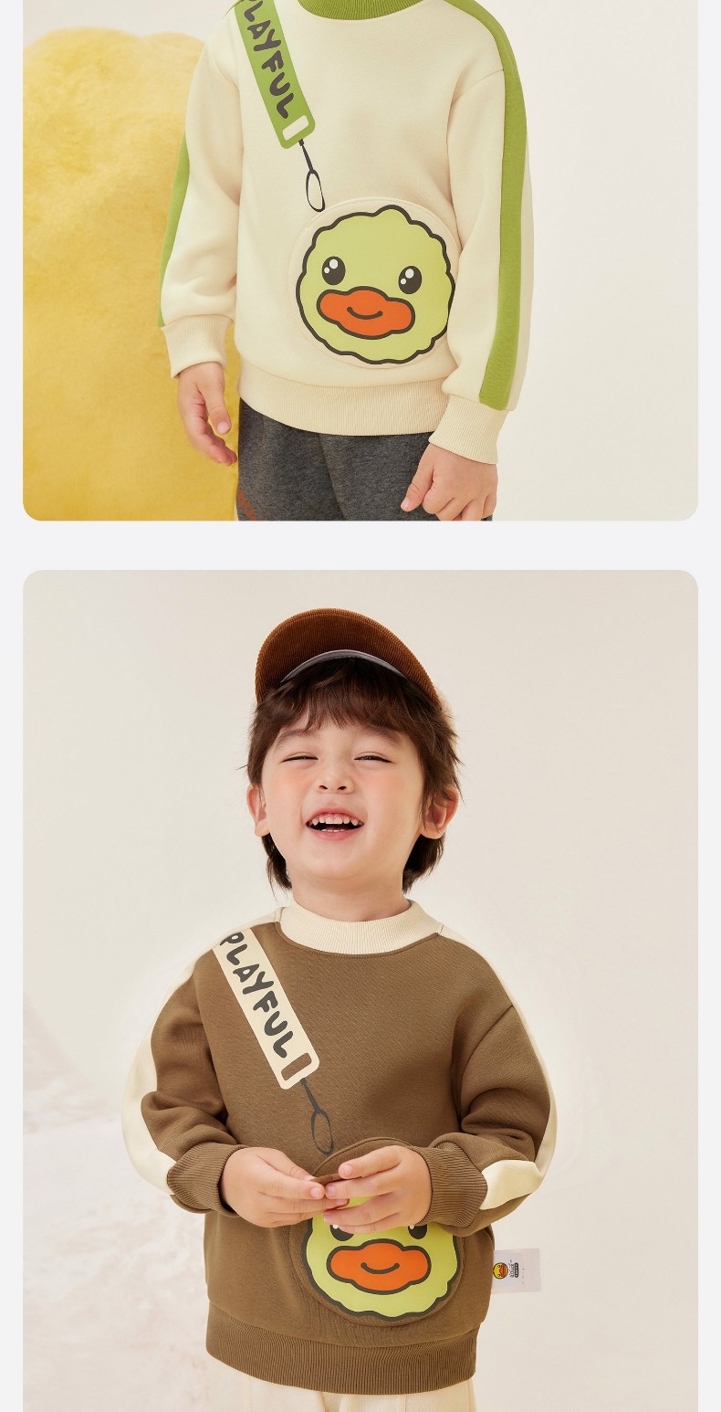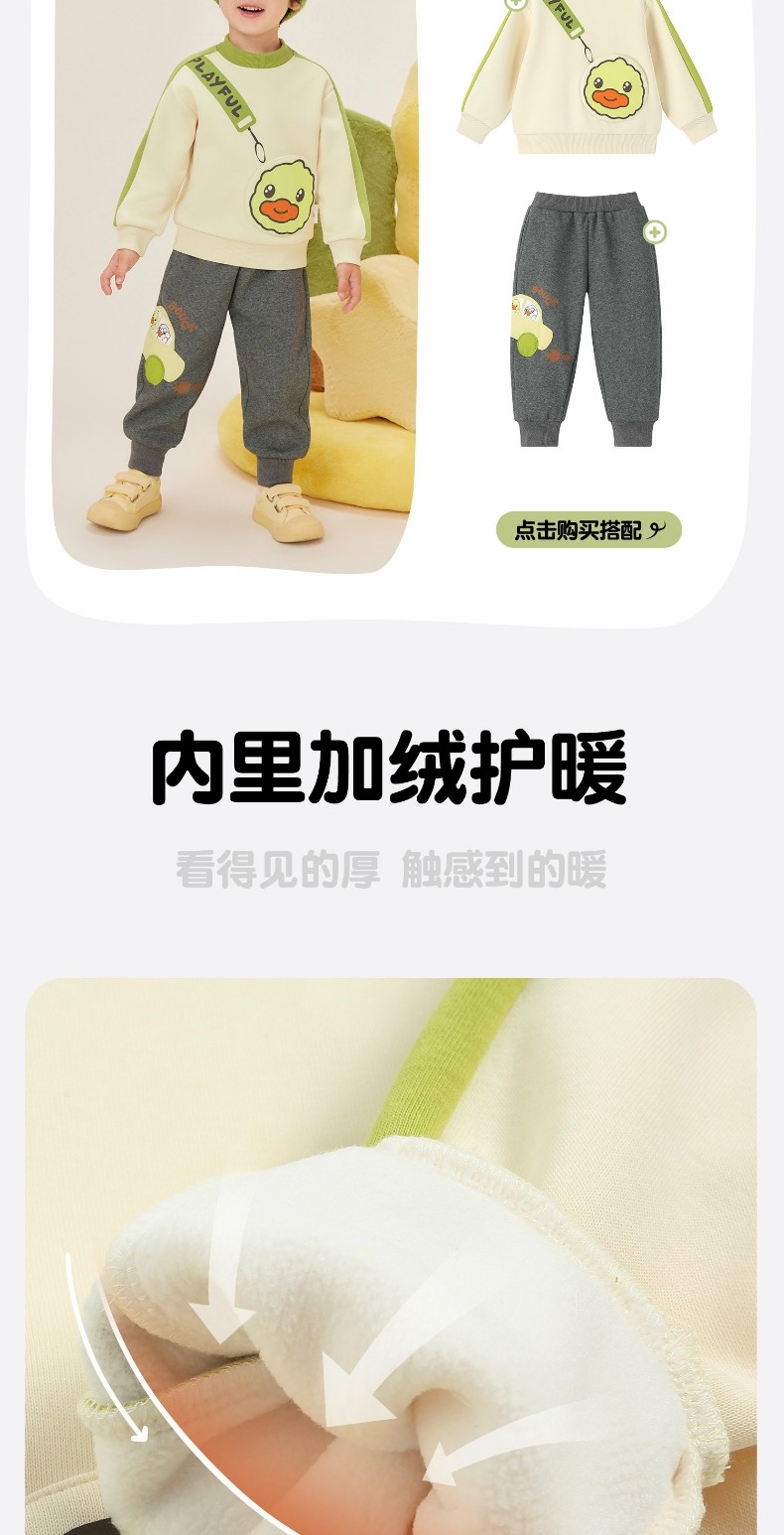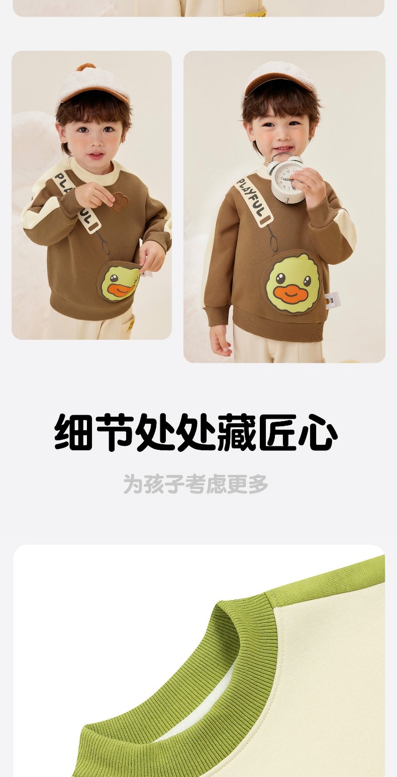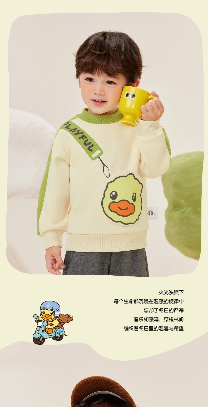 bduck小黄鸭童装男童加绒卫衣儿童宝宝上衣保暖套头衫冬装厚90-130 BF5531017