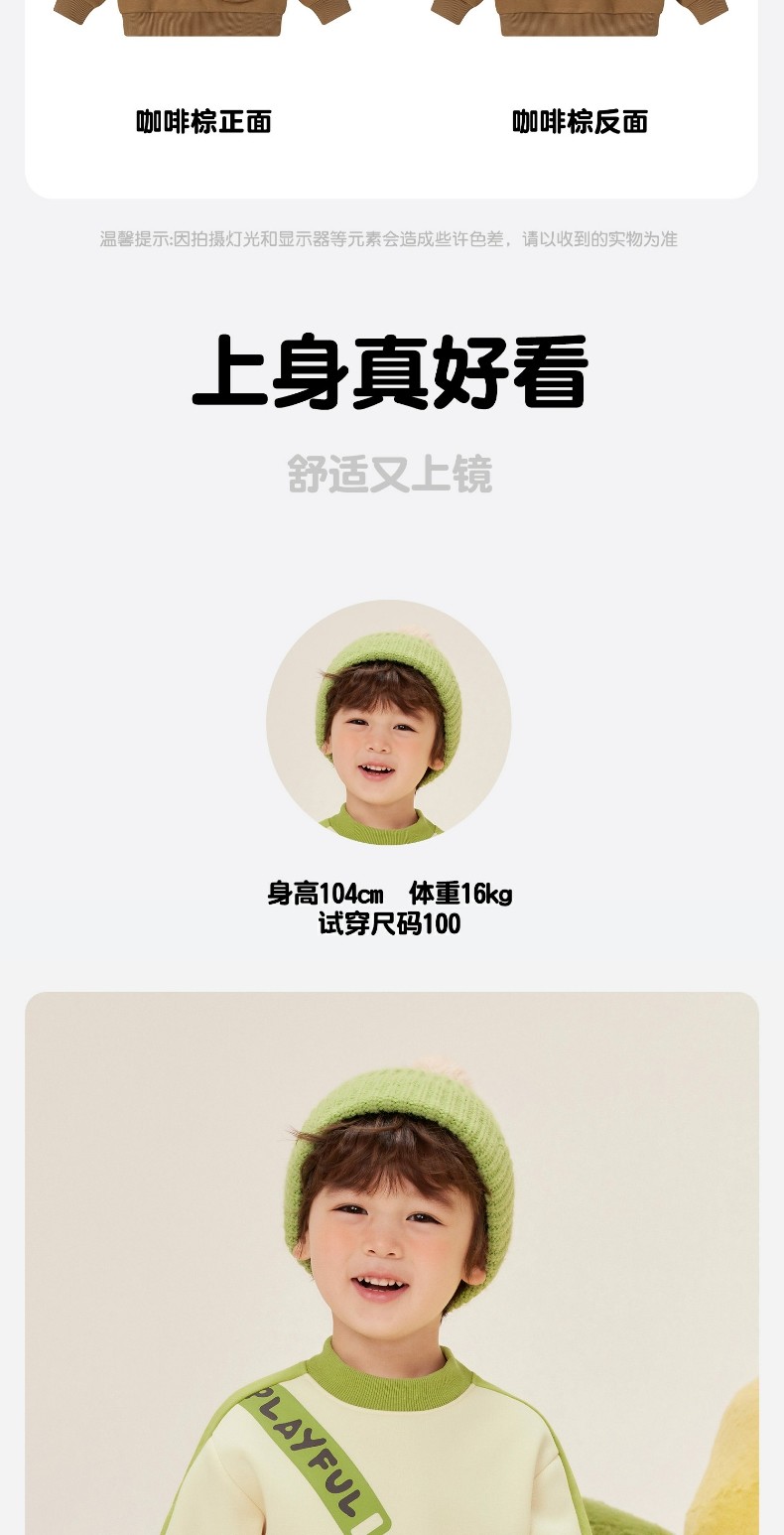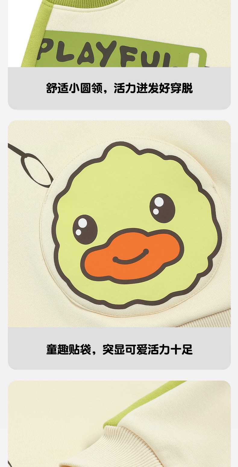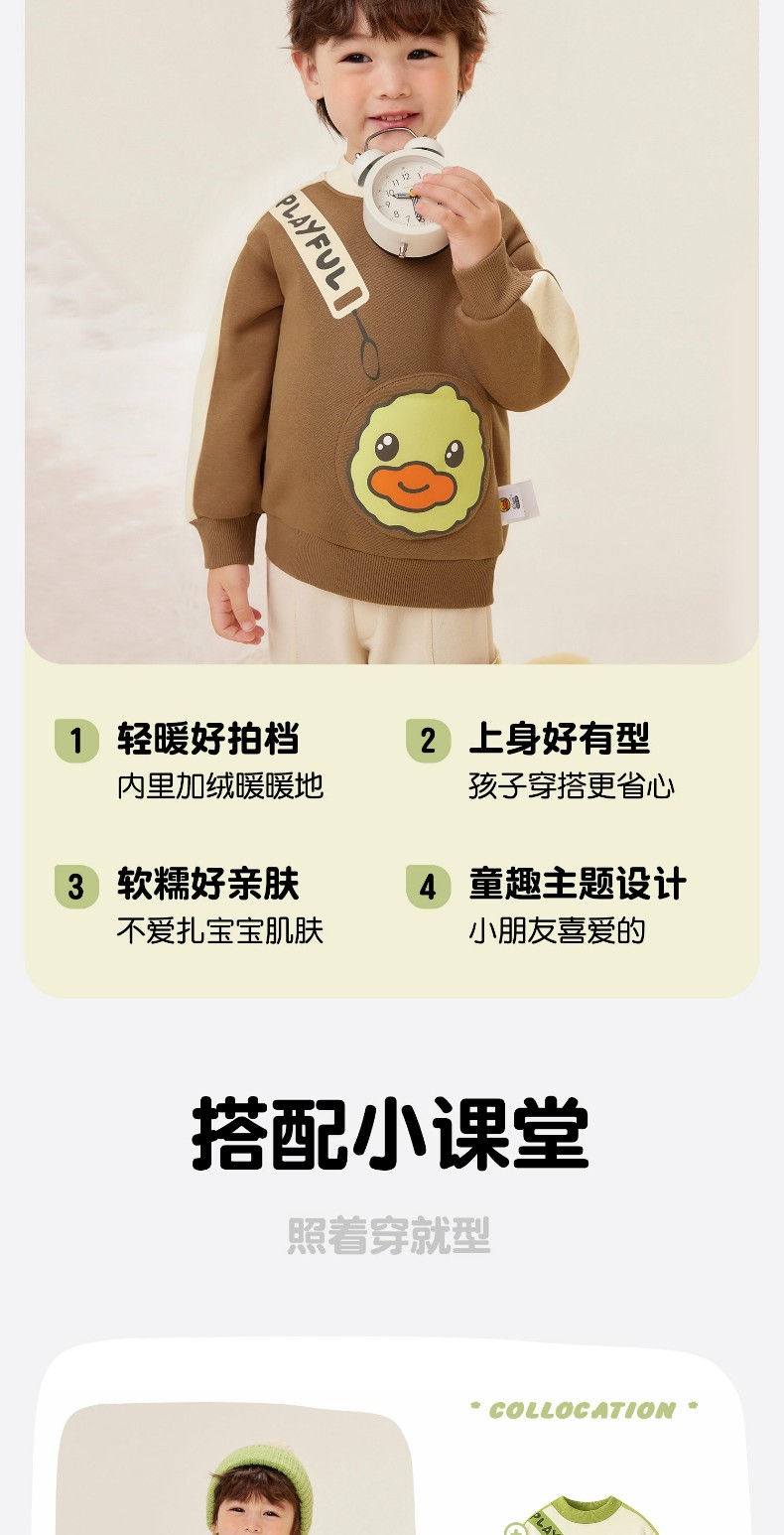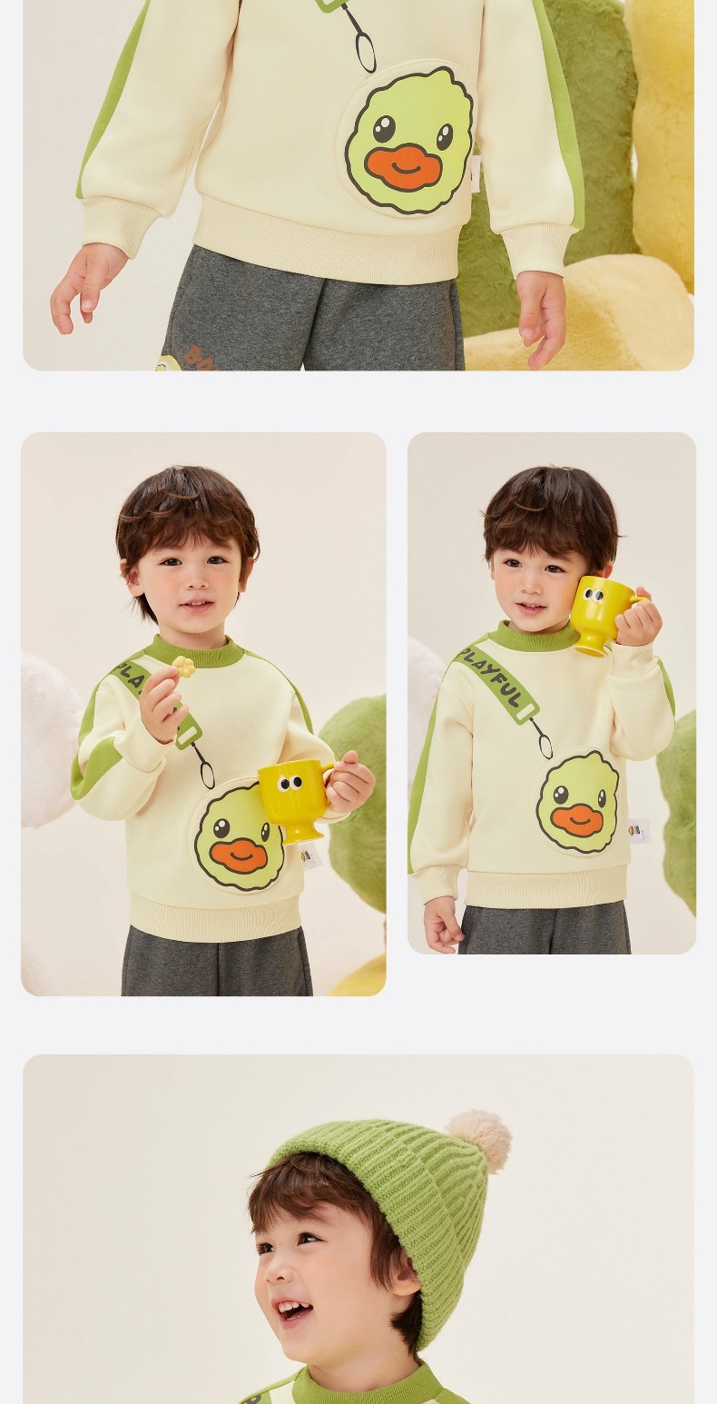 bduck小黄鸭童装男童加绒卫衣儿童宝宝上衣保暖套头衫冬装厚90-130 BF5531017