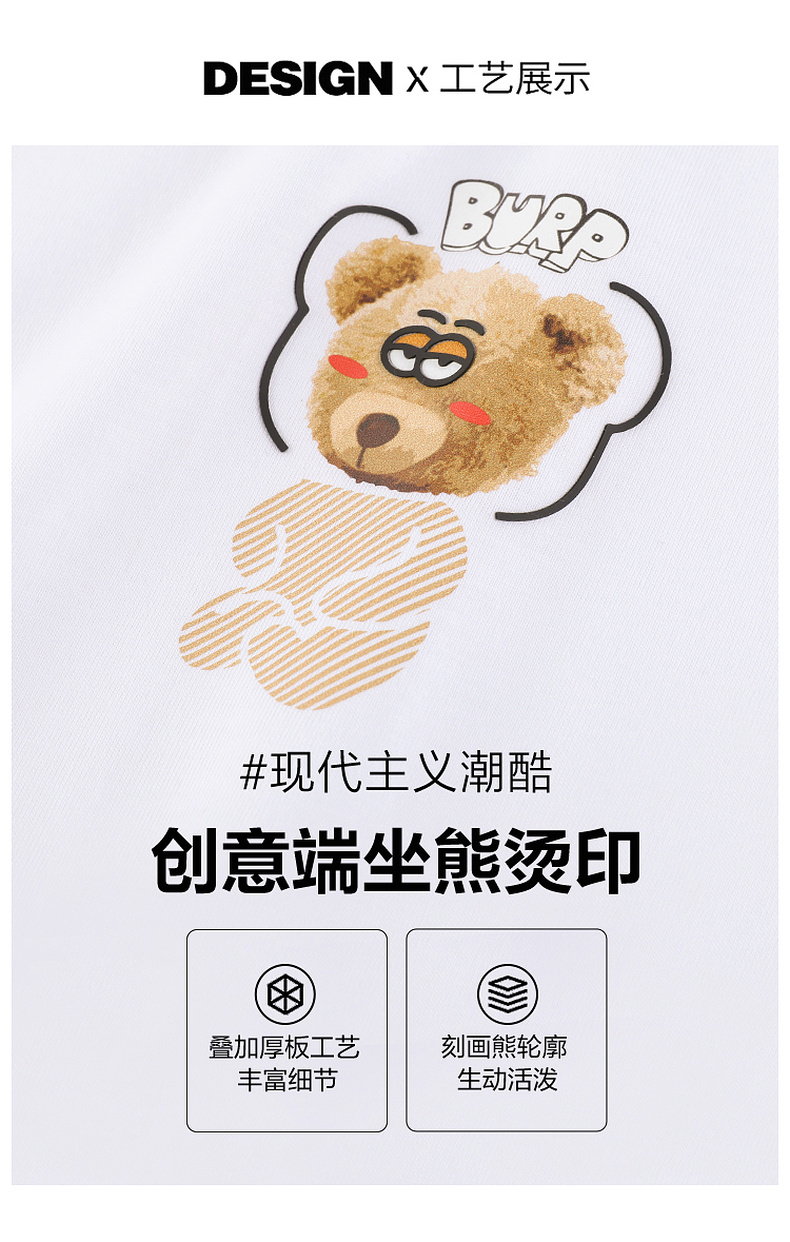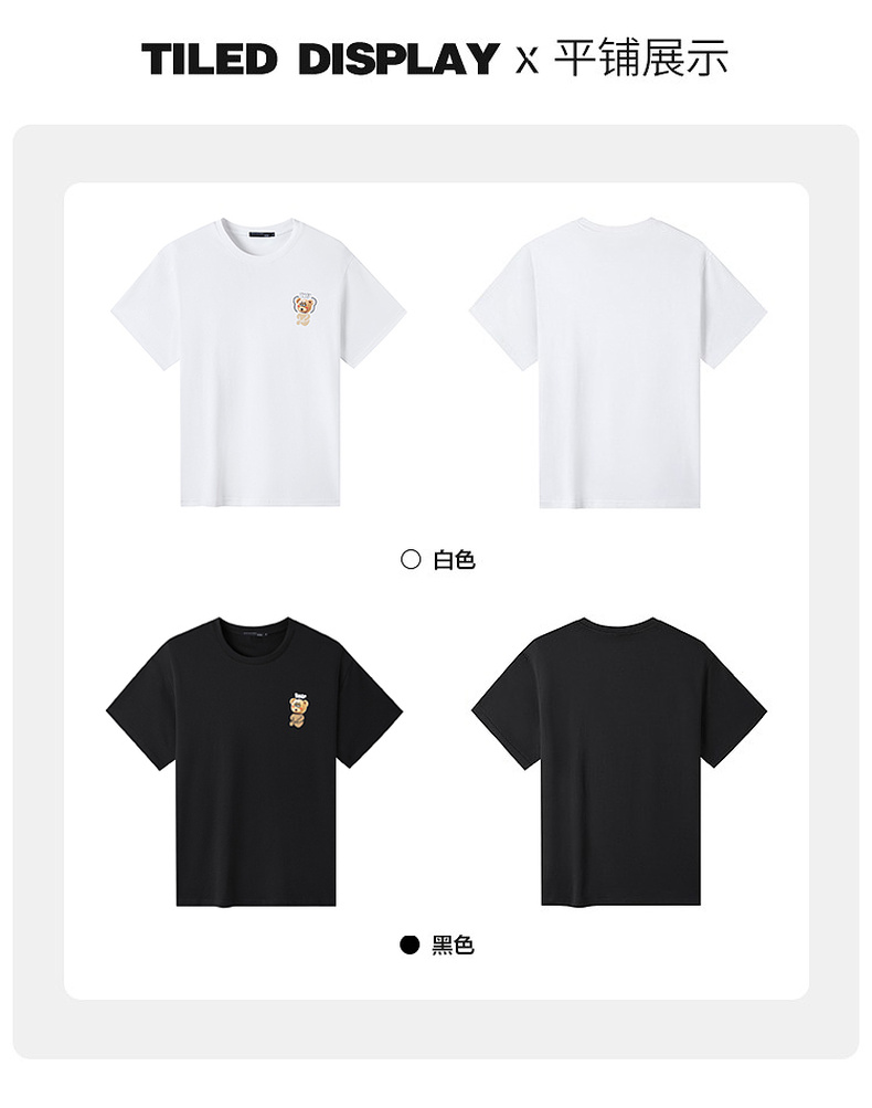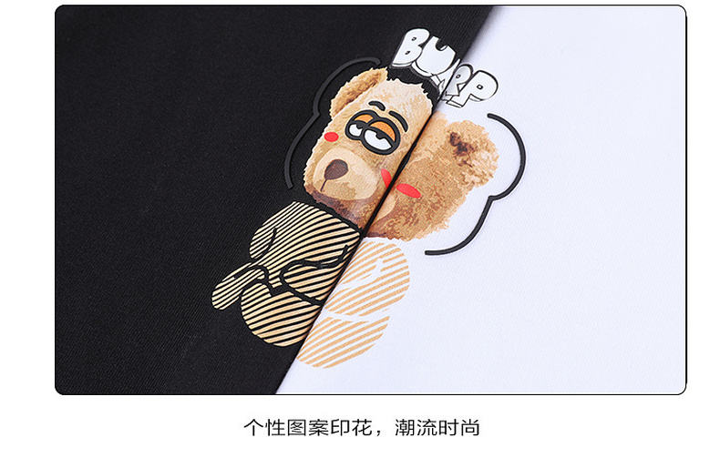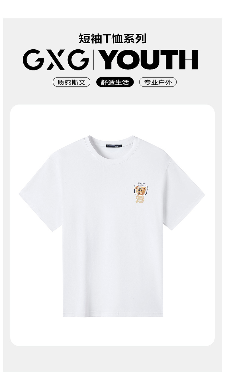 GXG男装【100%棉】夏季时尚卡通涂鸦熊情侣款圆领百搭短袖t恤K&C