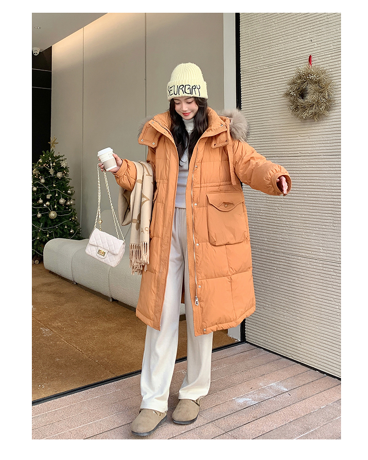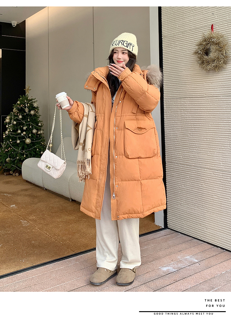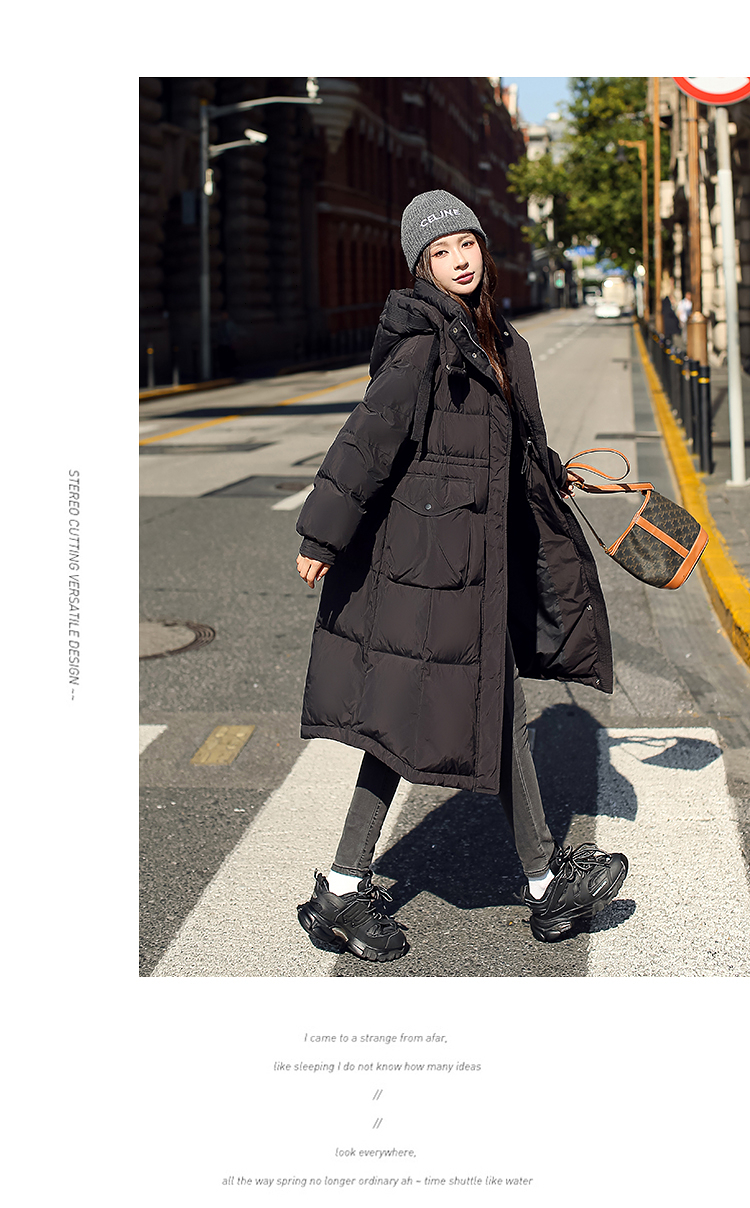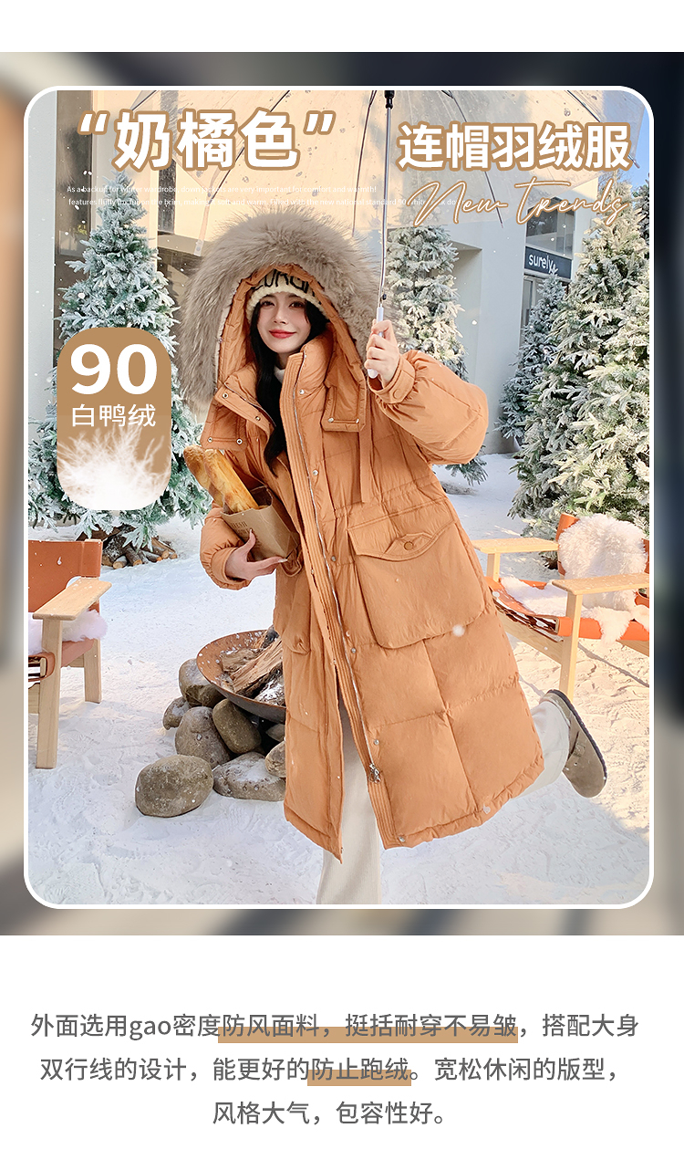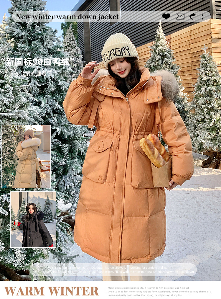 奢姿大码女装2025冬季胖妹妹时尚连帽长款羽绒服气质保暖显瘦外套735430D128