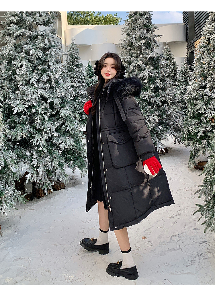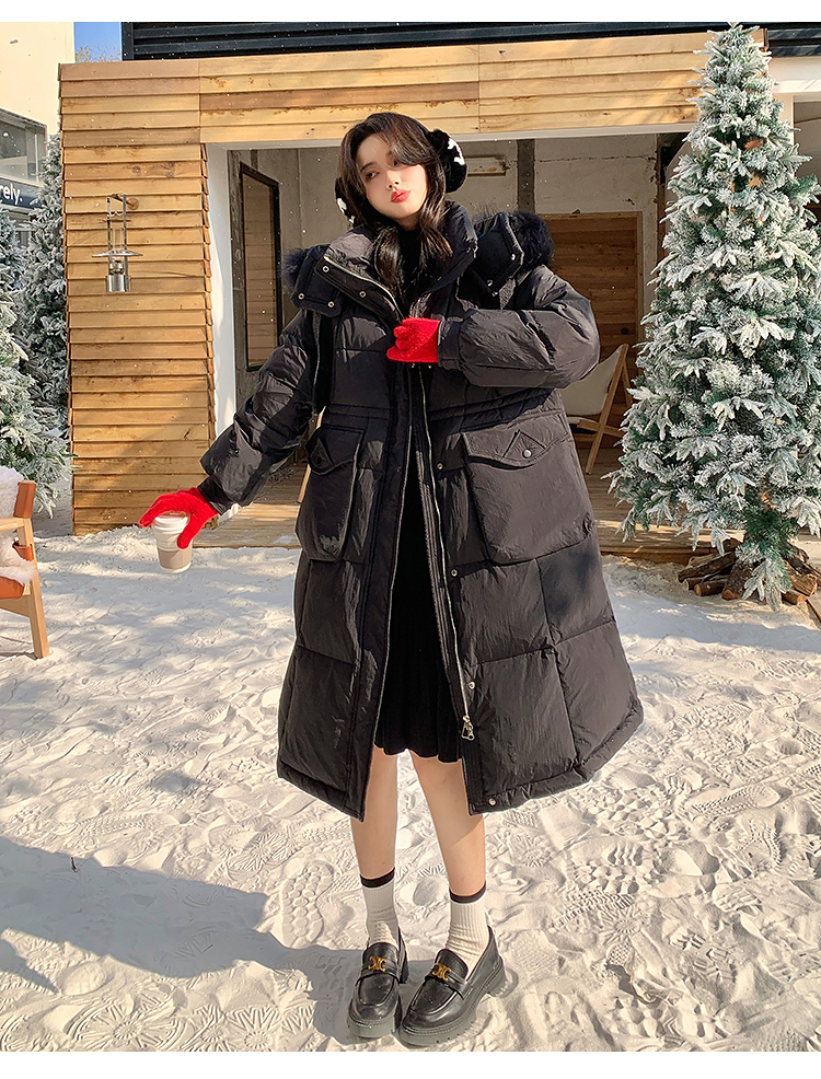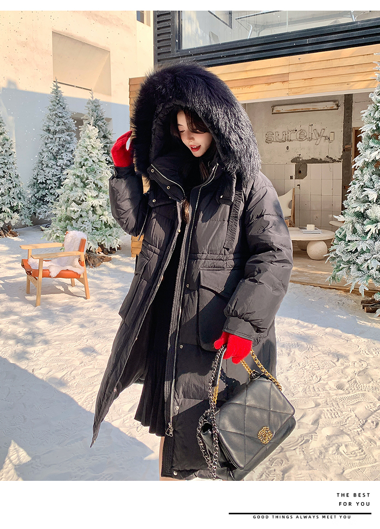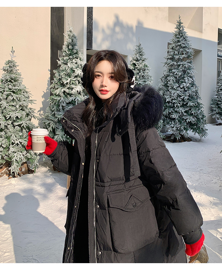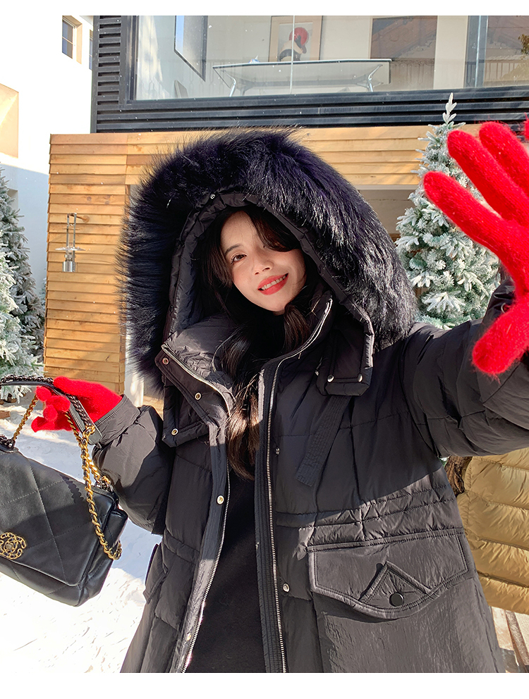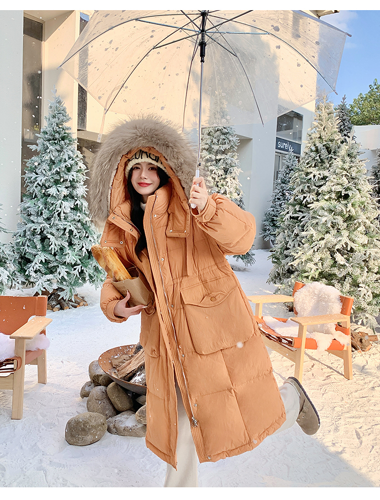 奢姿大码女装2025冬季胖妹妹时尚连帽长款羽绒服气质保暖显瘦外套735430D128