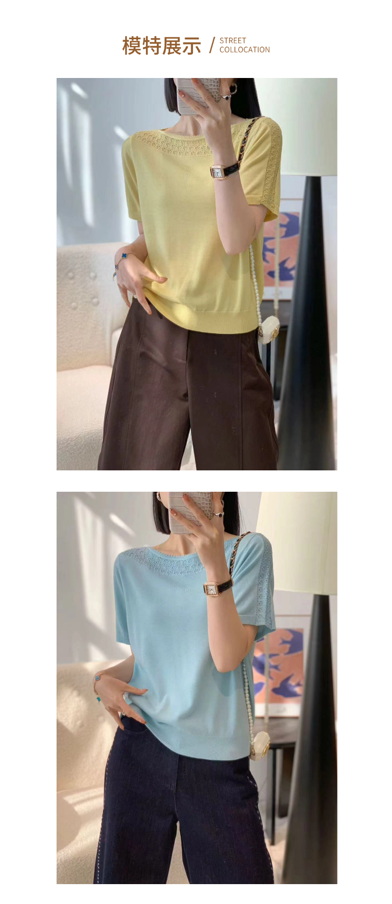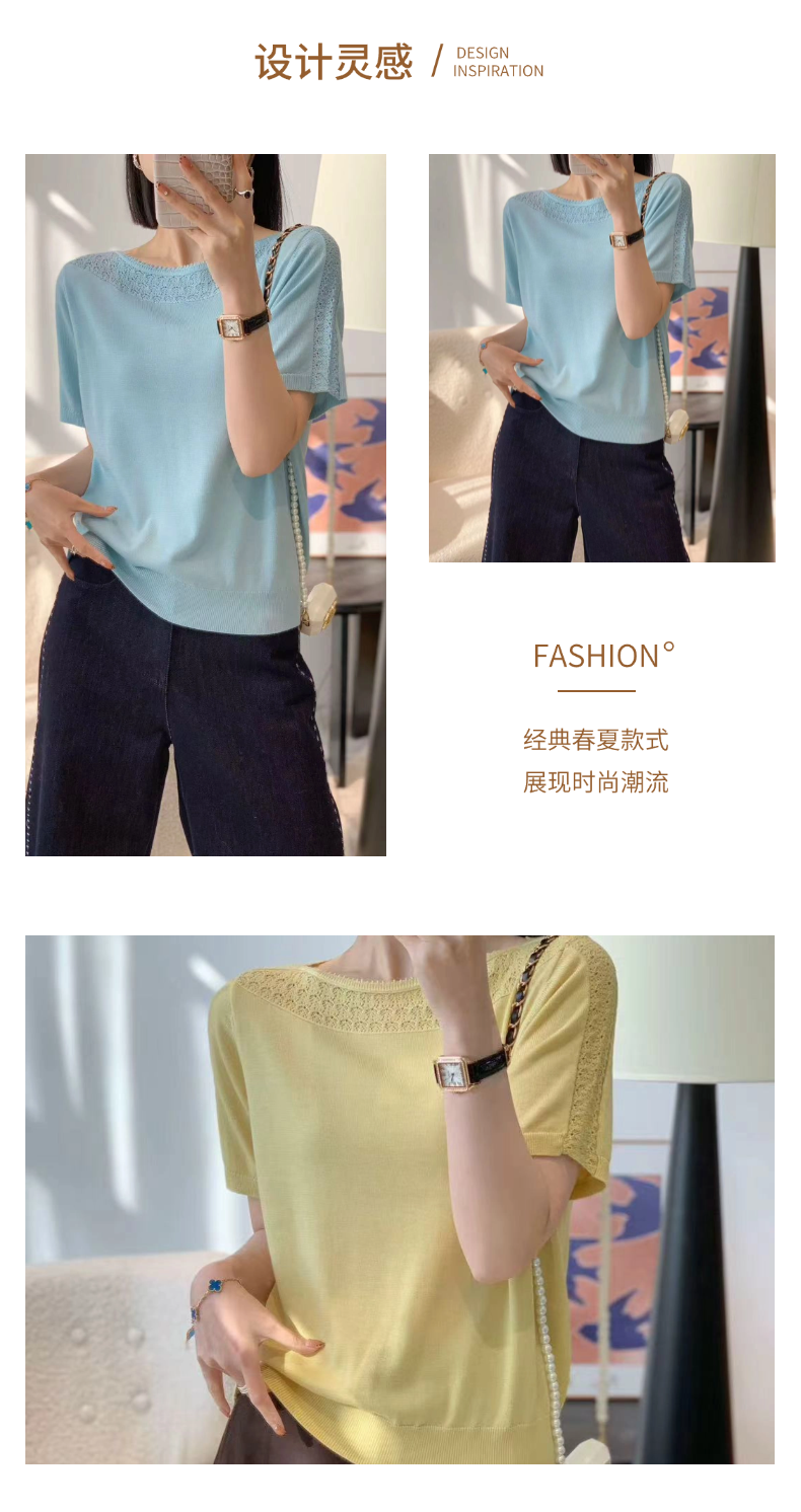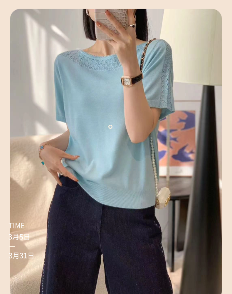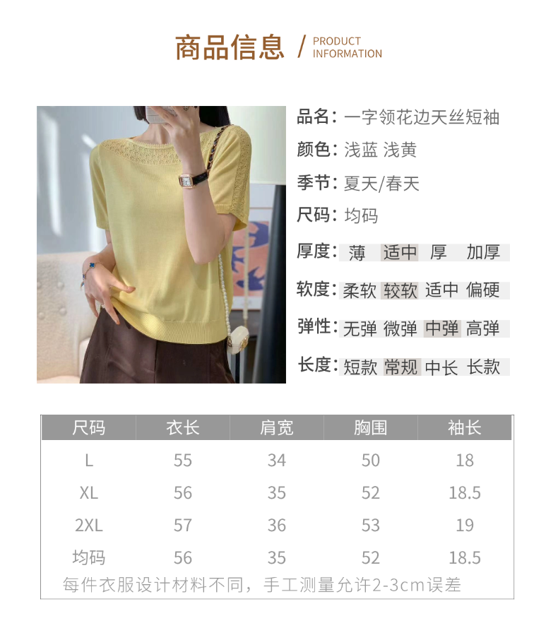 女装26春夏新品一字领花边天丝短袖2291-2601