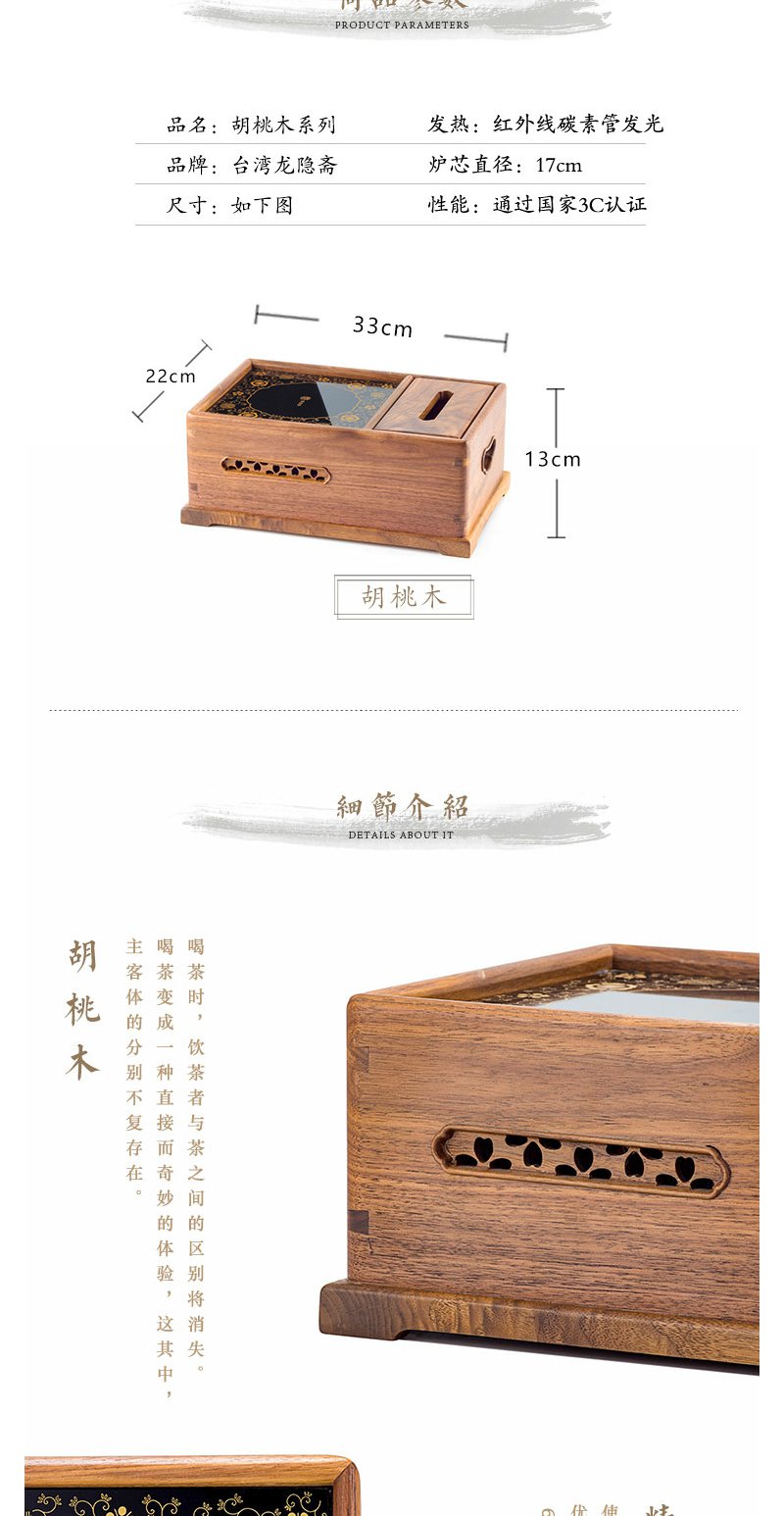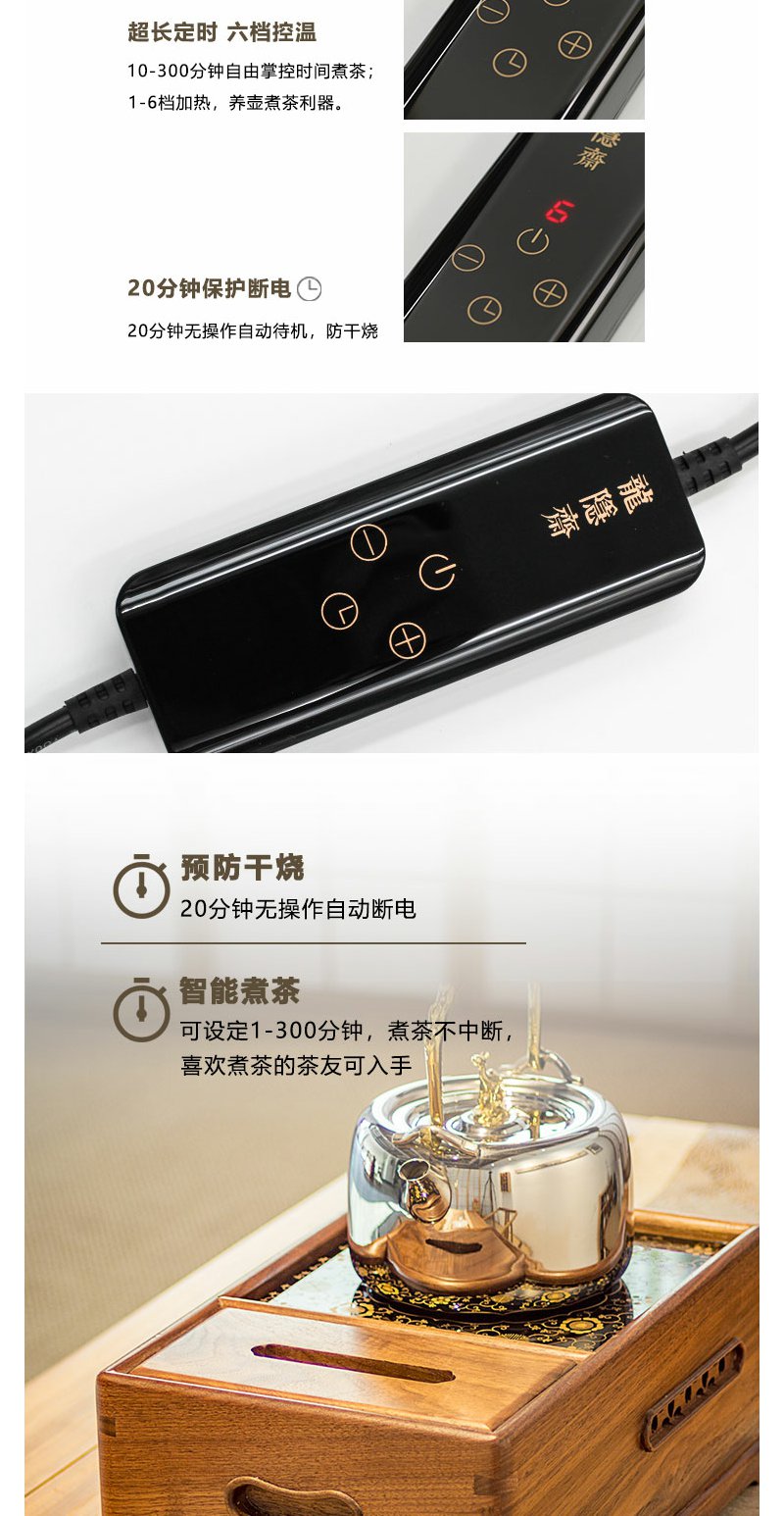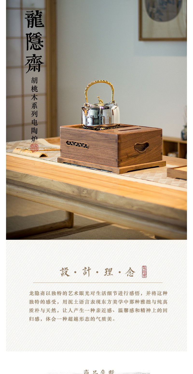 龙隐斋 尚方/北美胡桃木电陶炉 煮茶器茶炉铁壶银壶迷你小型家用静音