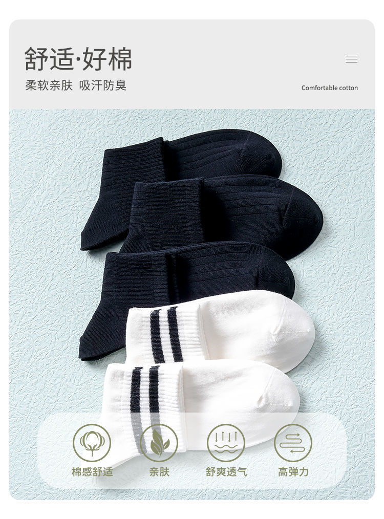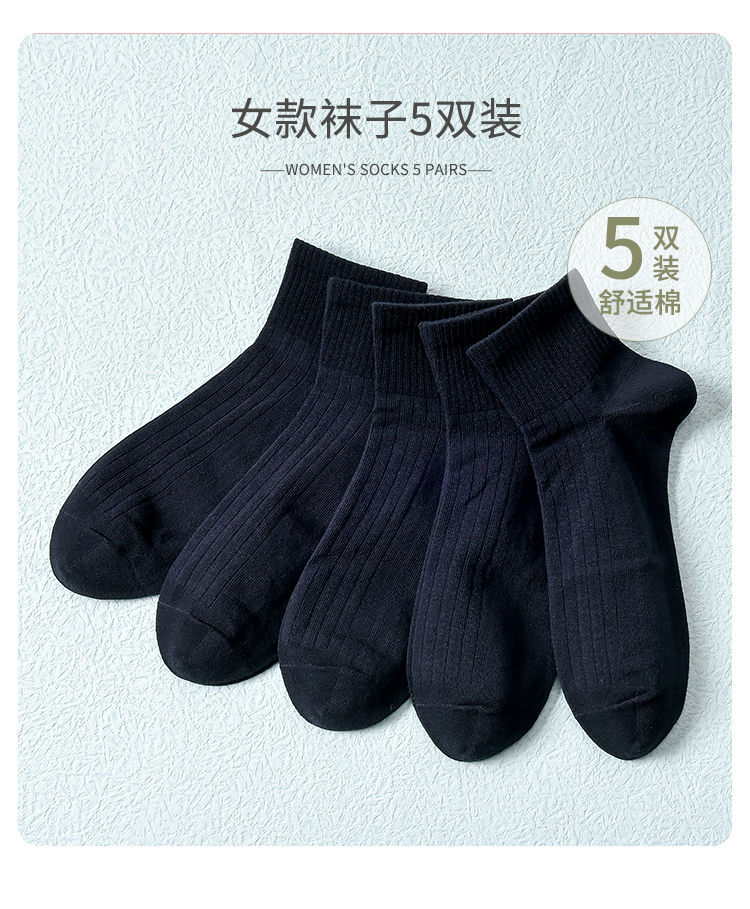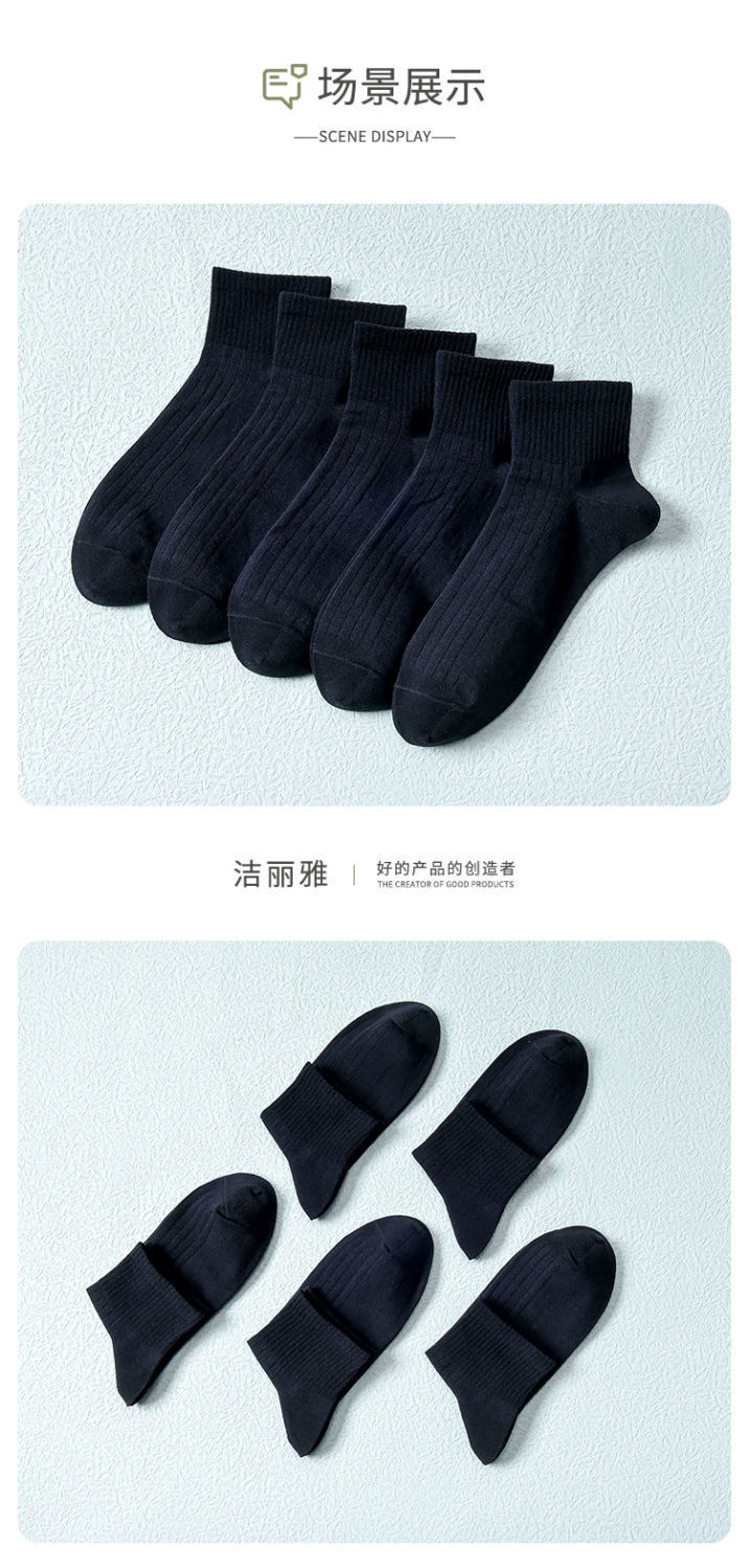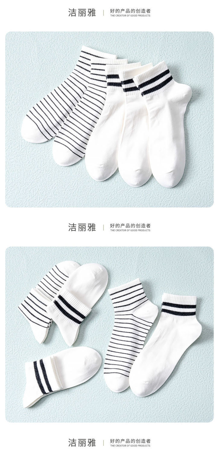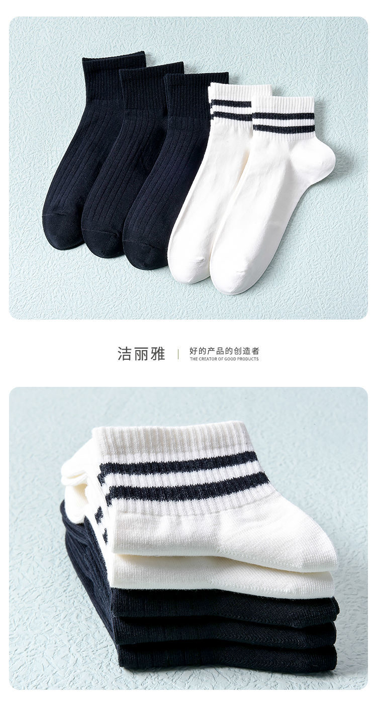 洁丽雅袜子女短袜纯棉春夏季夏天新款吸汗透气黑色女生船袜短筒袜
