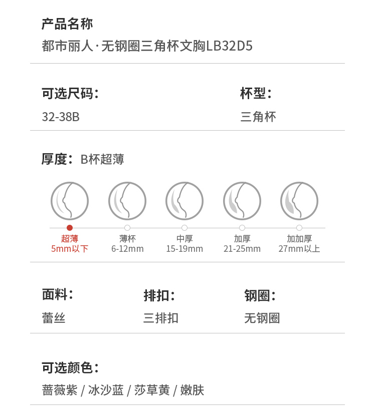 都市丽人WISECOOL常规内衣B杯超薄三角杯蕾丝文胸三排无钢圈LB32D5