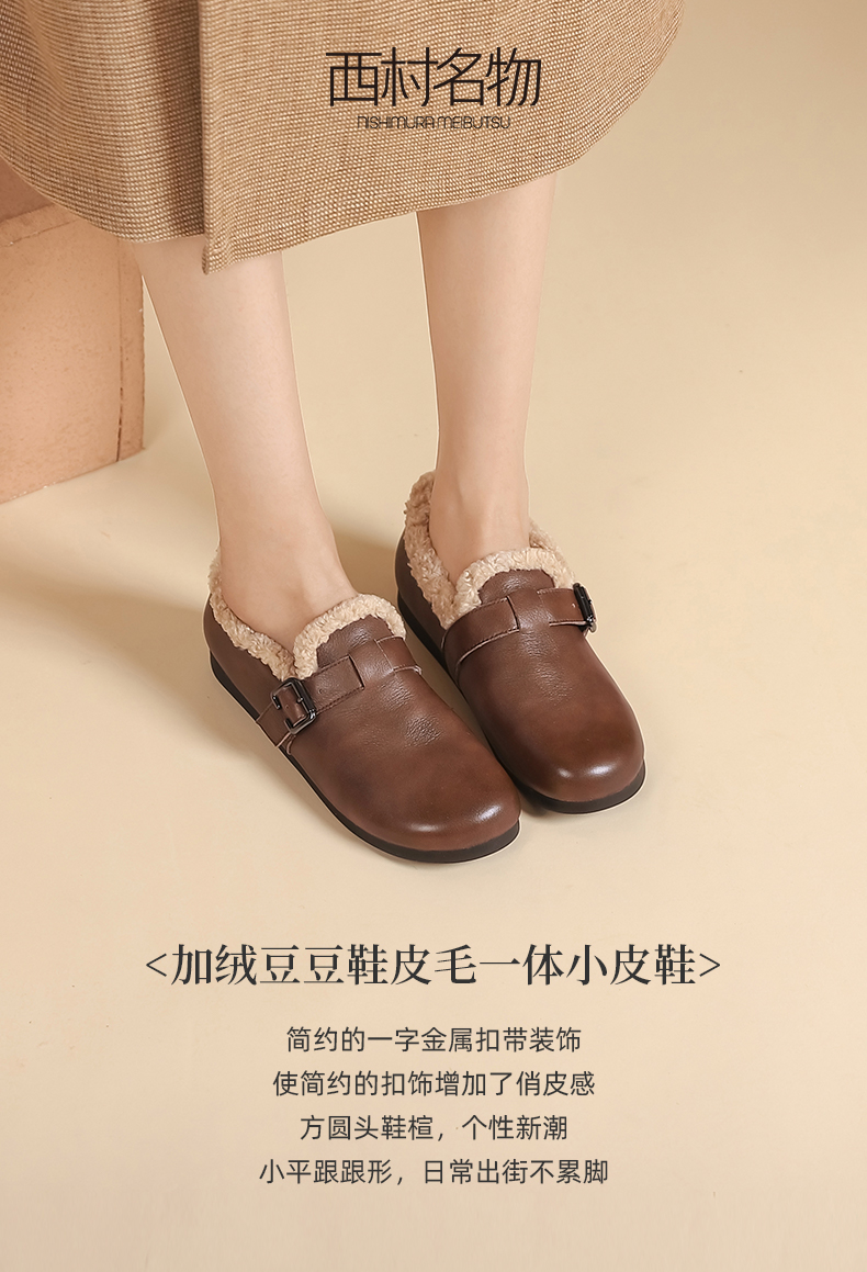 西村名物加绒保暖妈妈鞋棉鞋女一脚蹬2022年冬季豆豆鞋软底37781