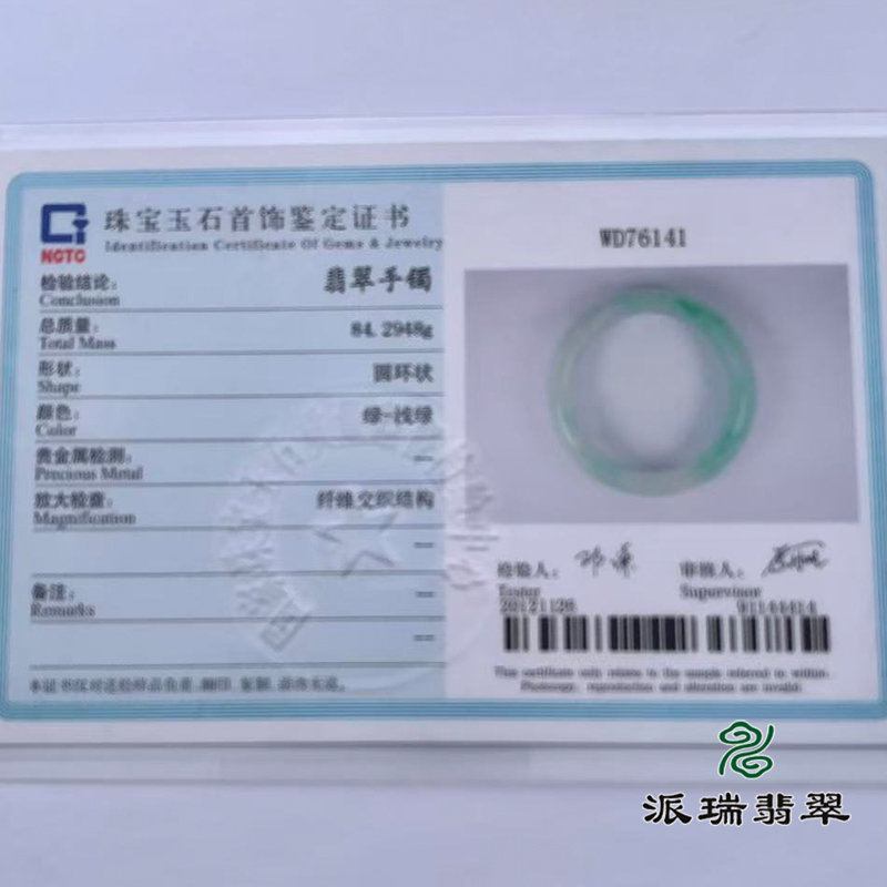 派瑞翡翠 翡翠手镯 糯种 浅绿