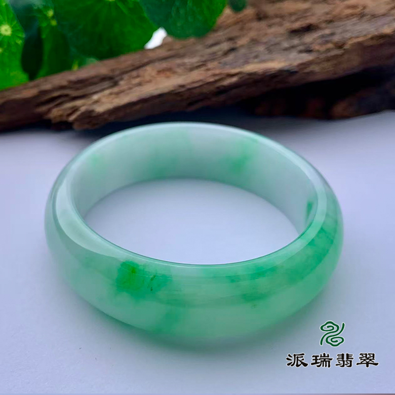 派瑞翡翠 翡翠手镯 糯种 绿色 飘花
