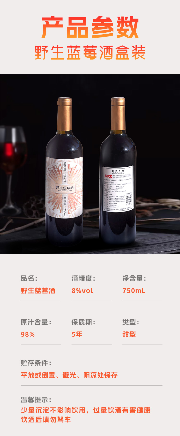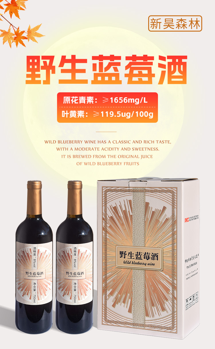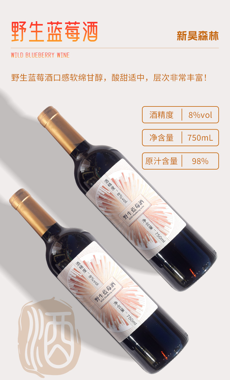 【中国非遗技艺野生蓝莓酒】市级非物质文化遗产,原始酿酒技法!原汁含量高达98%!果香酒香,优雅细腻!回味持久弥香,酒质醇厚!配料干净,喝的更放心!8度750ml *2支!【DZ-J仓】
