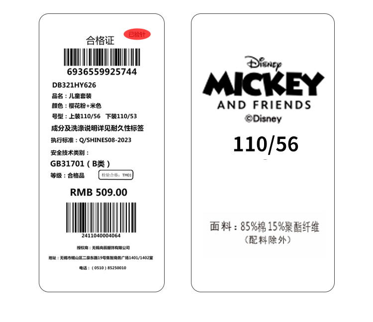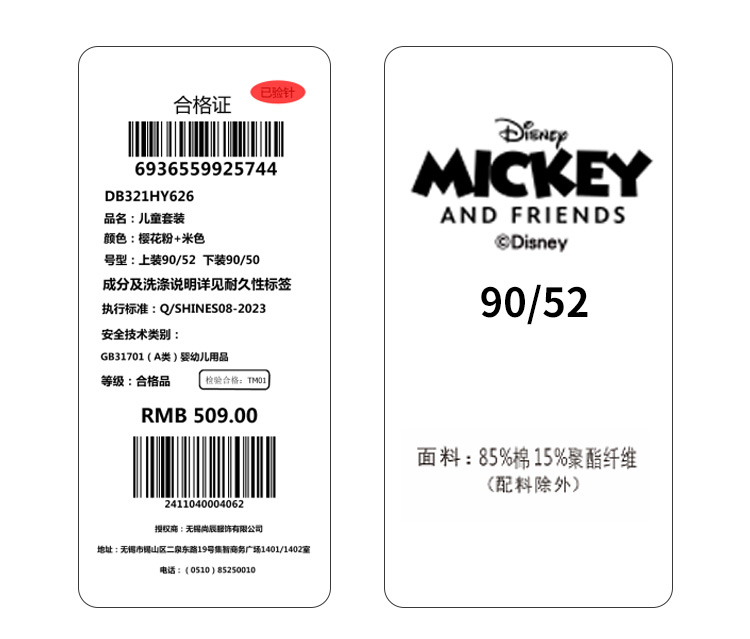【两件套】【90-140】【迪士尼】女童春秋款时尚卫衣卫裤套装